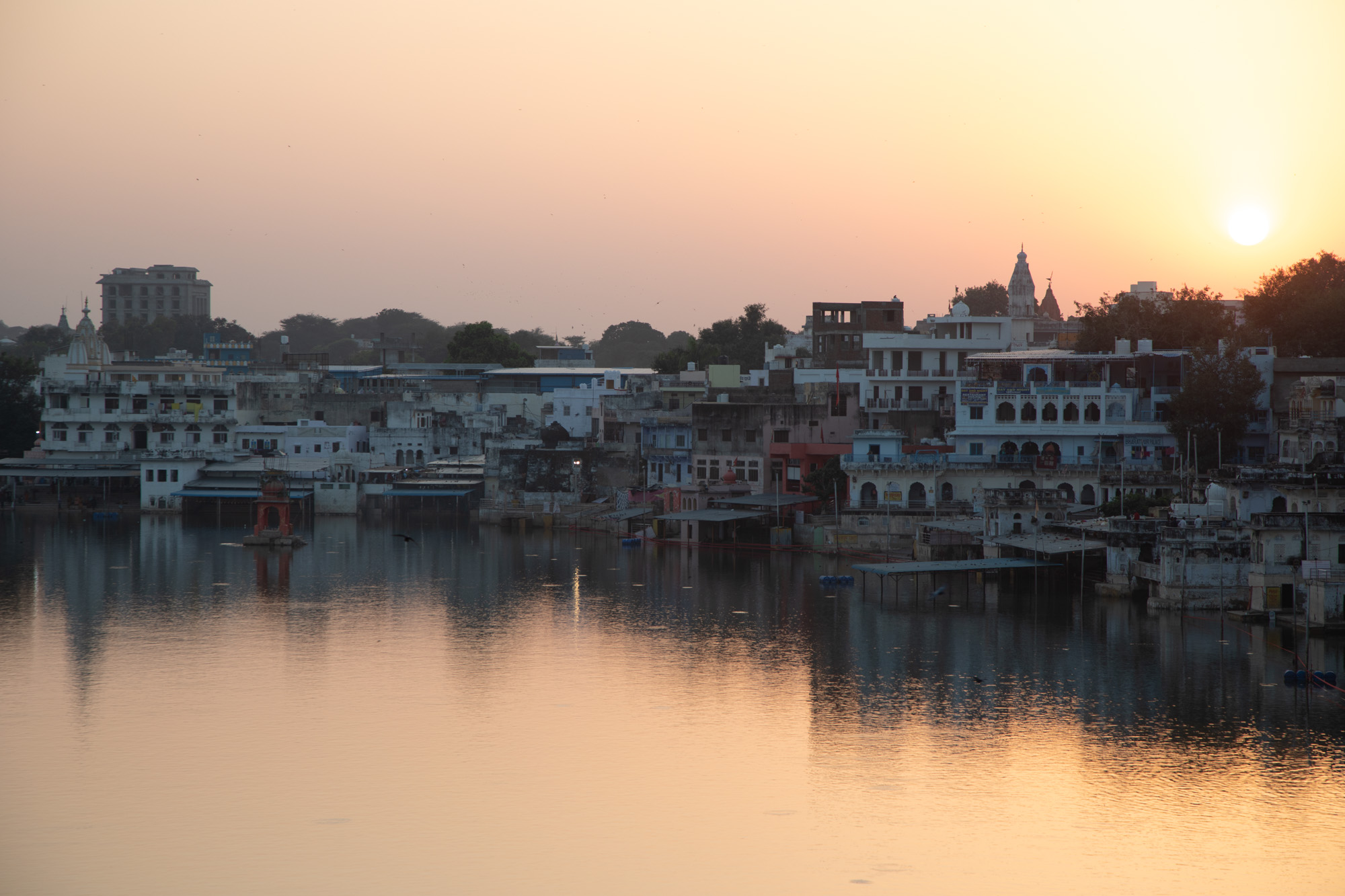 Pushkar est une étape sur la route de plus en plus désertique de l’Ouest du Rajasthan entre la merveilleuse ville rose de Jaipur et la cité bleue du désert Jodhpor, dans l’itinéraire classique de la découverte du Nord de l’Inde. En quittant la capitale de l’Etat, la terre laisse petit à petit la place au sable, la végétation se fait rare, le soleil tape dur. Et comme un mirage, on arrive au milieu de ce milieu aride à cette petite ville construite autour d’un lac sacré pour la religion hindoue, Pushkar. Pushkar est déroutante, il y règne une atmosphère que l’on n’a pas retrouvé ailleurs, c’est un lieu sacré avec des pèlerinages et des prêtres qui pratiquent des rituels religieux, il y a aussi de nombreux hippies. L’ambiance ne nous a pas semblé aussi agréable qu’ailleurs. On ne peut pas dire que l’on va vraiment apprécié Pushkar, que l’on quitte avec un sentiment mitigé, comme si on avait raté quelque chose.