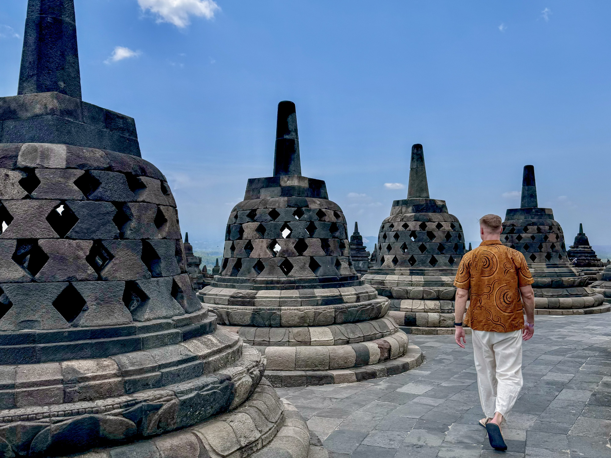 On conclut ce voyage en Indonésie par un séjour dans la capitale culturelle de Java, Yogjakarta. Yogyakarta est une capitale à l’air très provinciale, dominée par le volcan très actif Merapi, que l’on peut voir cracher de la lave chaque nuit, on trouve deux parmi les plus beaux monuments de toute l’Indonésie, le temple de Borobudur et le temple de Parambanan.