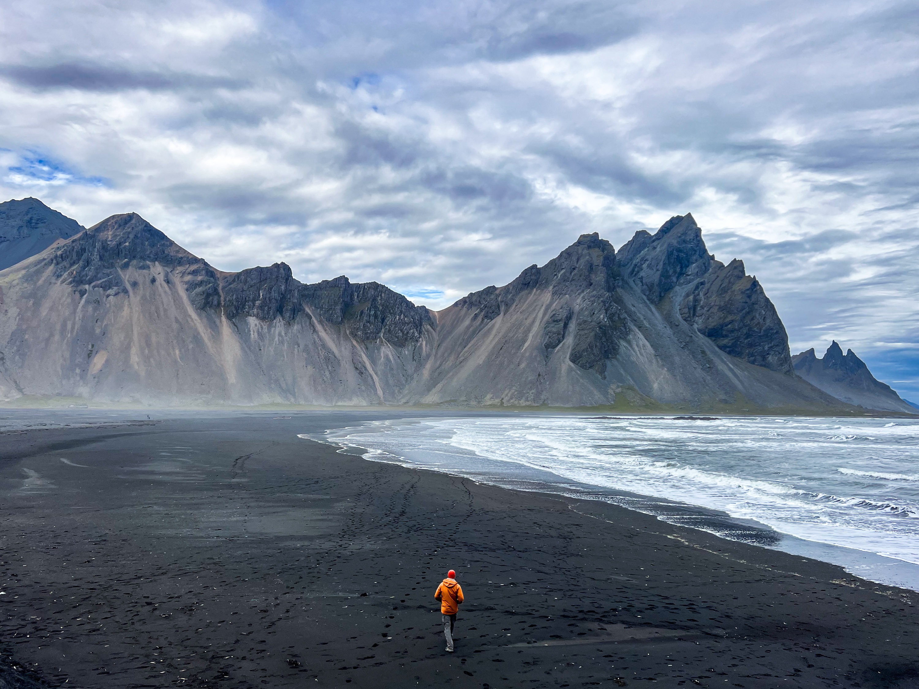 Nous traversons les fjords de l’Est de l’Islande pour rejoindre les grandioses glaciers du Sud du pays. Nous partons d’Egilsstaðir vers le petit village de Seydisfjordur puis la route nous amène à traverser des paysages dramatiques depuis les sommets brumeux jusqu’au bord de la mer. On fera une étape à la plage de sable noir de Stokksnes, vraiment immanquable tant elle offre un panorama unique. Nous arrivons en fin de journée face au lagon de Jökulsárlón stupéfiant avec tous les icebergs qui flottent à sa surface.