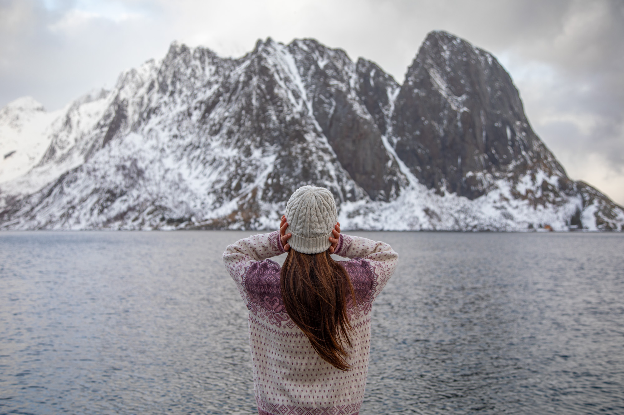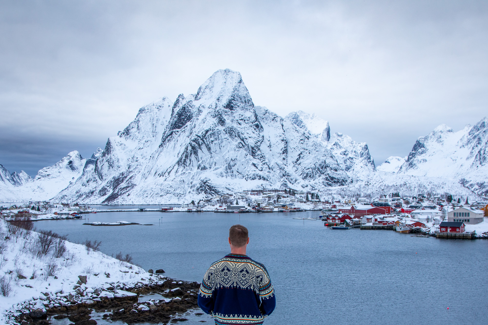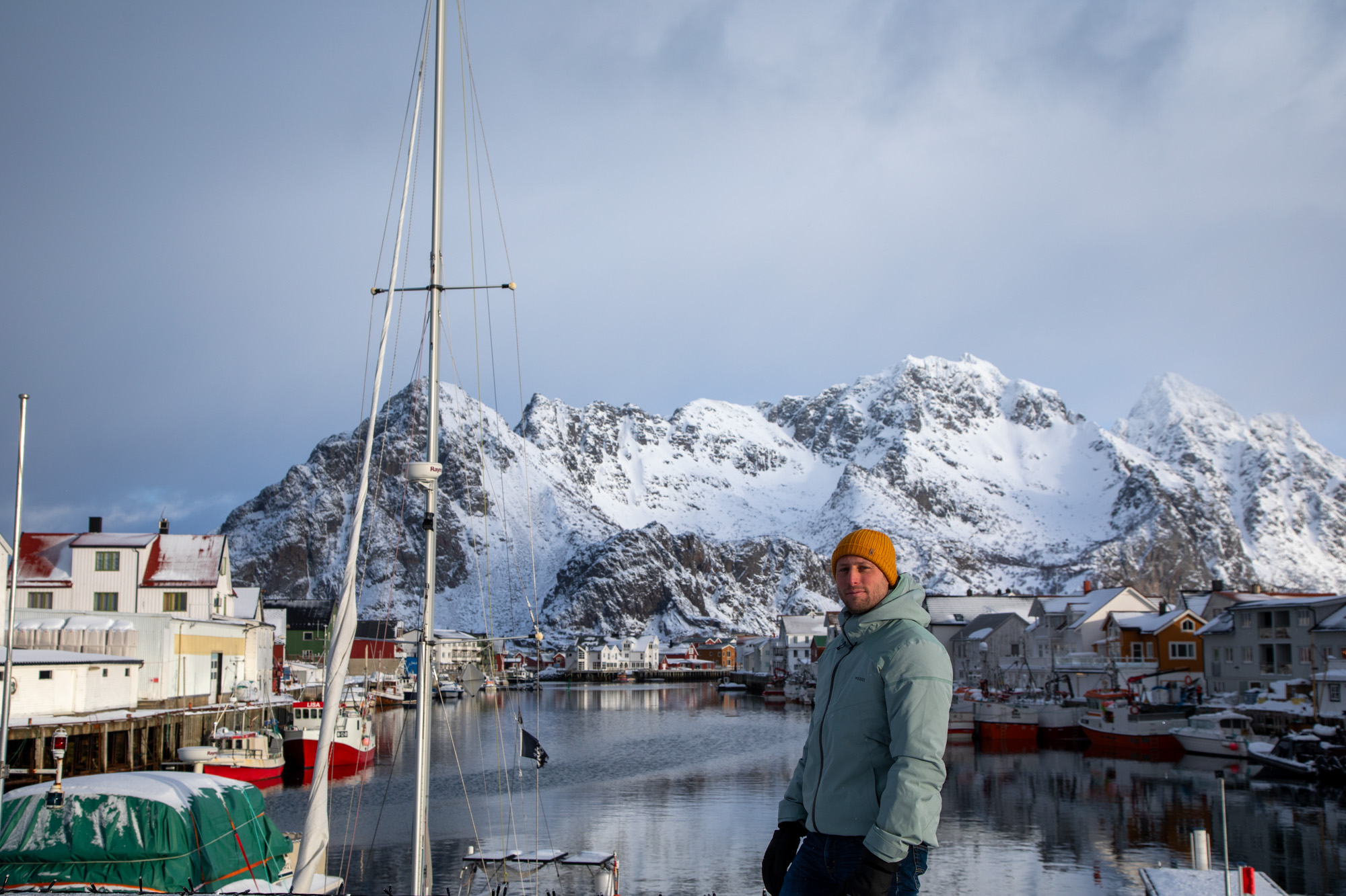 Nous démarrons notre séjour dans l’archipel des îles Lofoten par la ville de Svolvær tout à l’Est de la région où nous avons passé la nuit. Le matin, on découvre un paysage surprenant, couvert de neige les montagnes semblent comme plonger dans la mer créant un décor irréel. Le village de pêcheurs de Henningsvær situé à une demi heure de route est un des bijoux à découvrir.