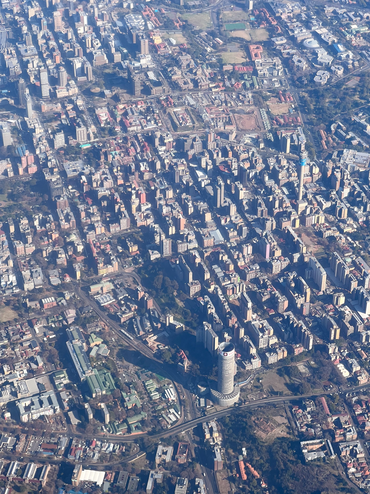On arrive au petit matin sur Johannesburg et on a le droit à un atterrissage au dessus de la ville, une des plus grandes villes d’Afrique, la capitale économique de l’Afrique du Sud, on peut voir les buildings depuis le hublot.