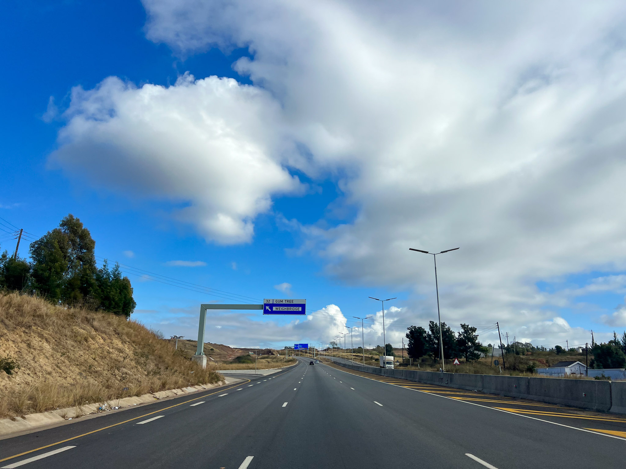 La nationale 2 qui relie Johannesburg à Cape Town en passant par Ste Lucia a un trafic dense de camions, la conduite y est encore plus fatigante. Les routes sont larges et les camions se décalent en général sur la gauche pour laisser doubler mais quand même, c’est pas super sécurisant.