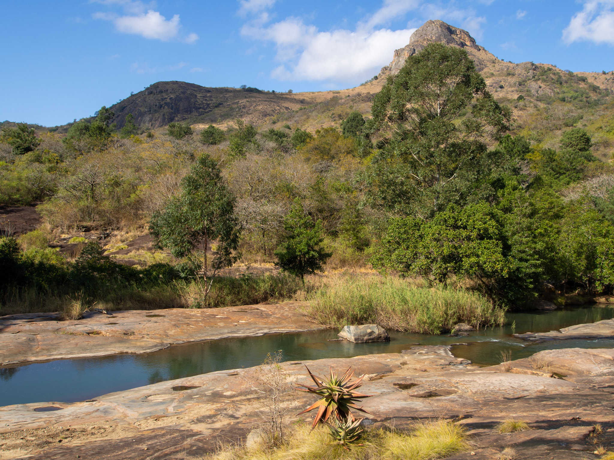 Le passage de la frontière est très rapide, cela ne prend que quelques minutes pour faire la procédure inverse de l’aller, on passe d’agent à agent pour faire tamponner le passeport puis la même chose côté sud africain puis nous voilà de retour dans ce pays, dans la province du Kuazulu Natal. La route nous fait traverser la Phongolo Nature Reserve, il faut rouler au pas pour éviter d’écraser un animal sauvage. On essaye de voir si il n’y a pas des girafes mais on ne verra que des phacochères et des impalas.