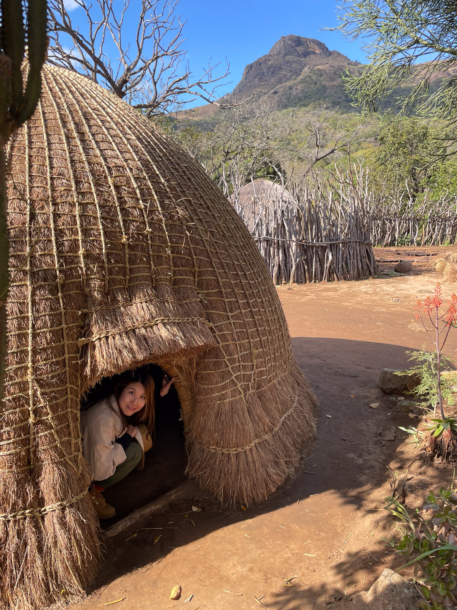Le guide nous explique en détail les traditions Swazis et l’aménagement du village avec les différentes maisons, leurs fonction, la place pour le bétail, la cuisine, etc. C’est très intéressant.