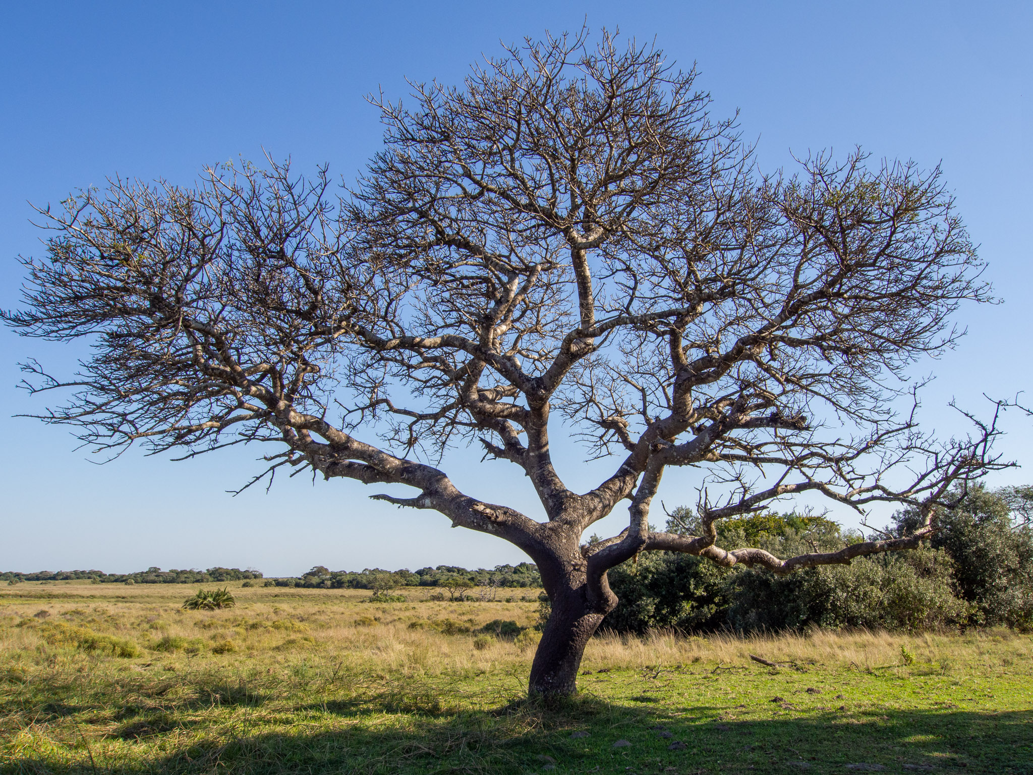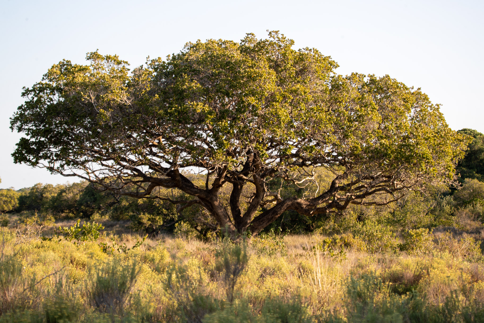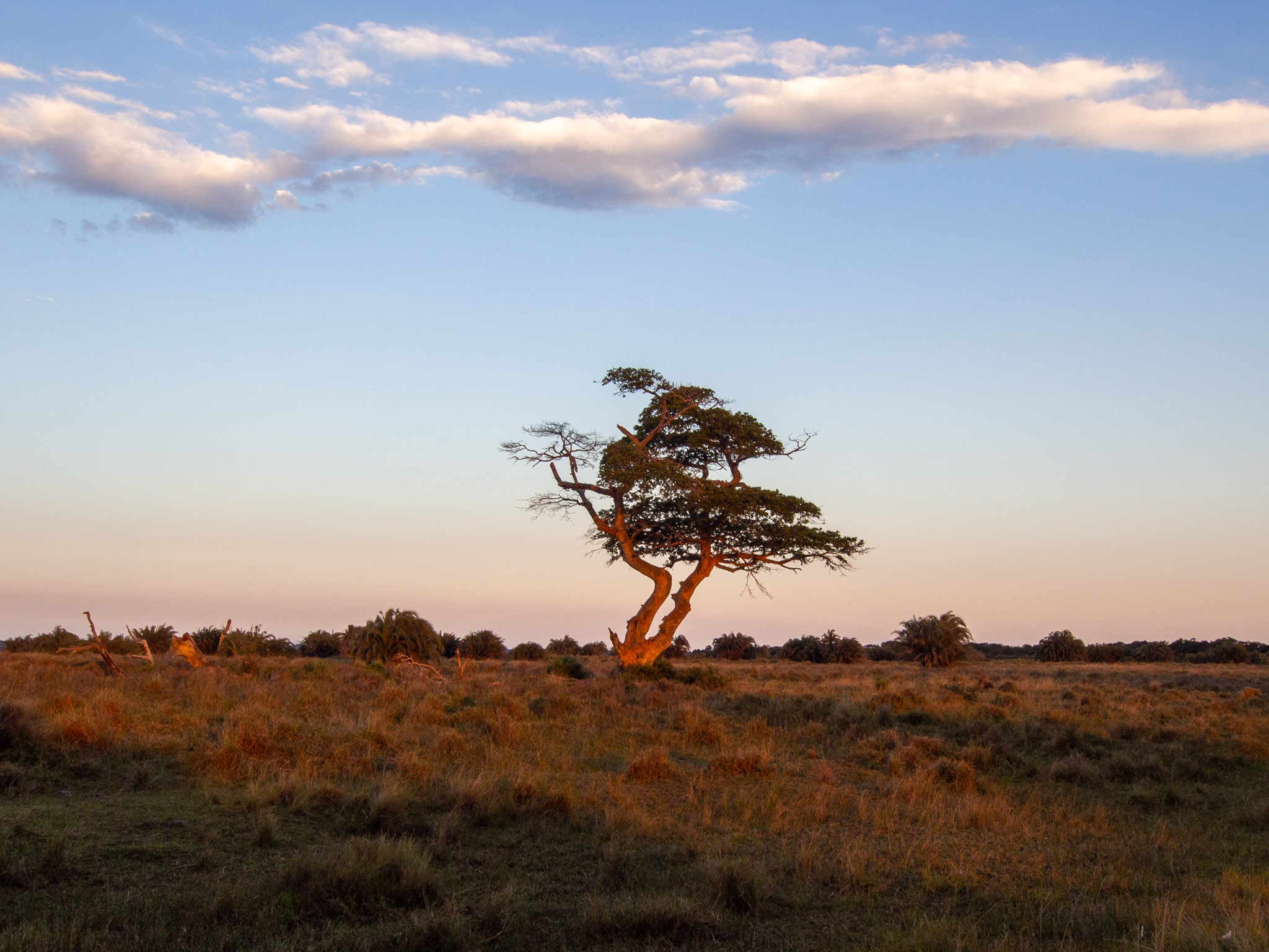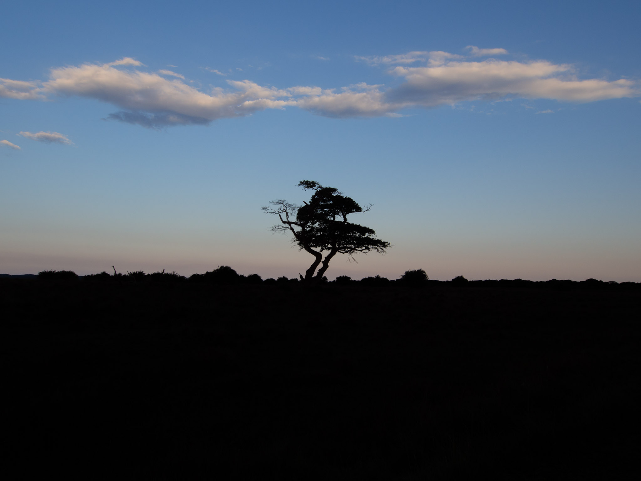 Cet arbre isolé au milieu de la savane est magnifique avec sa forme toute torsadée.