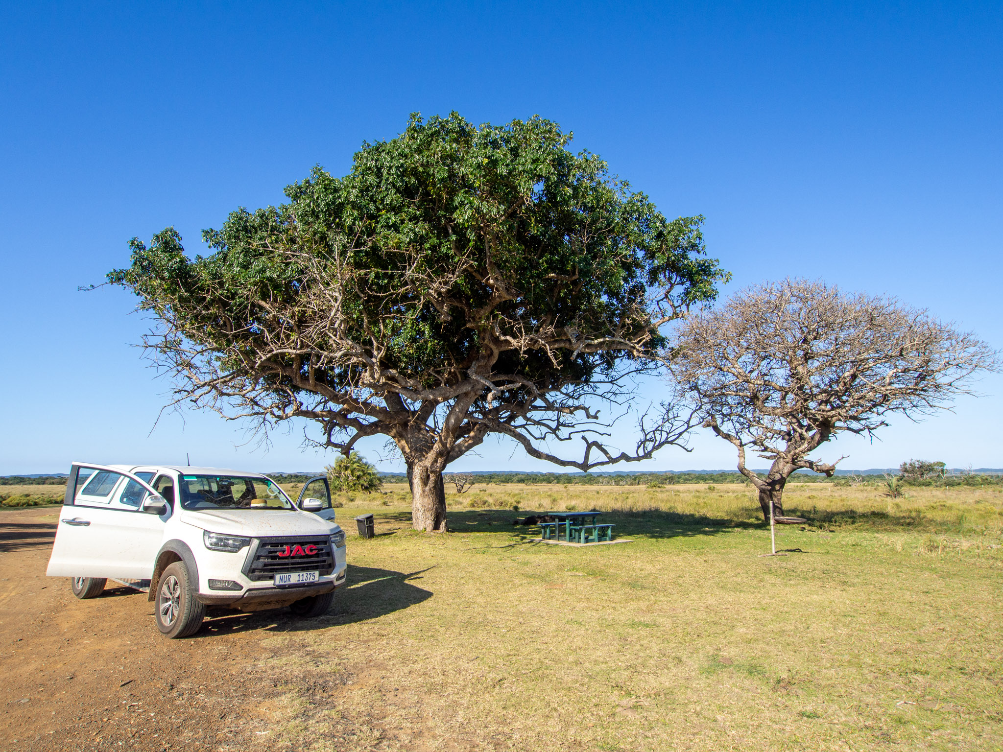 Pouvoir aller sur la mer lors de ce voyage est très complémentaire des autres étapes plus terrestres. On a vraiment apprécié cette sortie surtout que le prix est très abordable en Afrique du Sud comparé à d’autres destinations. On a adoré ! On revient vers midi à Ste Lucie et on est vraiment trempé de la tête au pied. On n’a pas eu le mal de mer heureusement mais ça secoue vraiment fort sur le bateau. On retourne à la chambre prendre une douche pour enlever tout le sel et changer nos vêtements tout mouillés avec des vêtements secs. On passe prendre un pique-nique à Kauia, un restaurant healthy qui fait des wraps, on compte les manger dans le parc cet après-midi. En effet, cet après midi nous partons découvrir la partie occidentale du parc d’Isimangaliso. C’est la partie la moins excitante de notre voyage, il y a très peu d’action et les animaux semblent soient avoir désertés cette partie du camp soient ils sont très bien cachés.