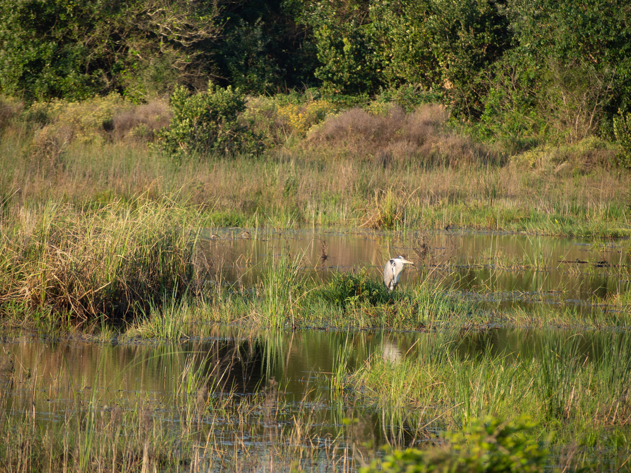 Des intersections permettent de rejoindre des pistes pour découvrir différents points d’intérêts comme d’abord un plan d’eau peuplé d’hippopotames.