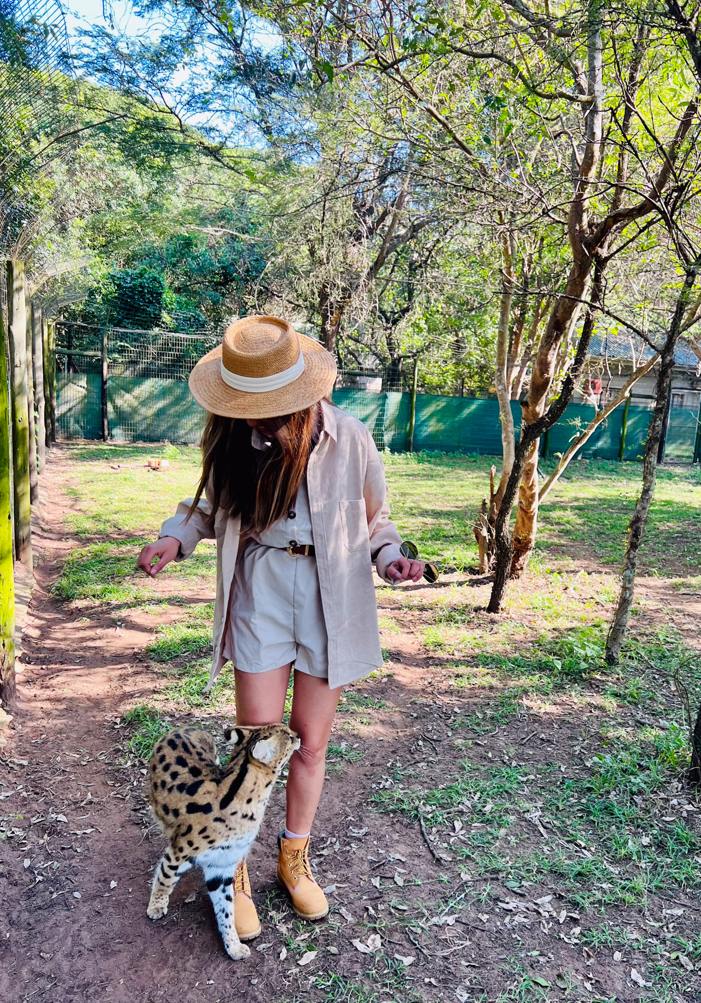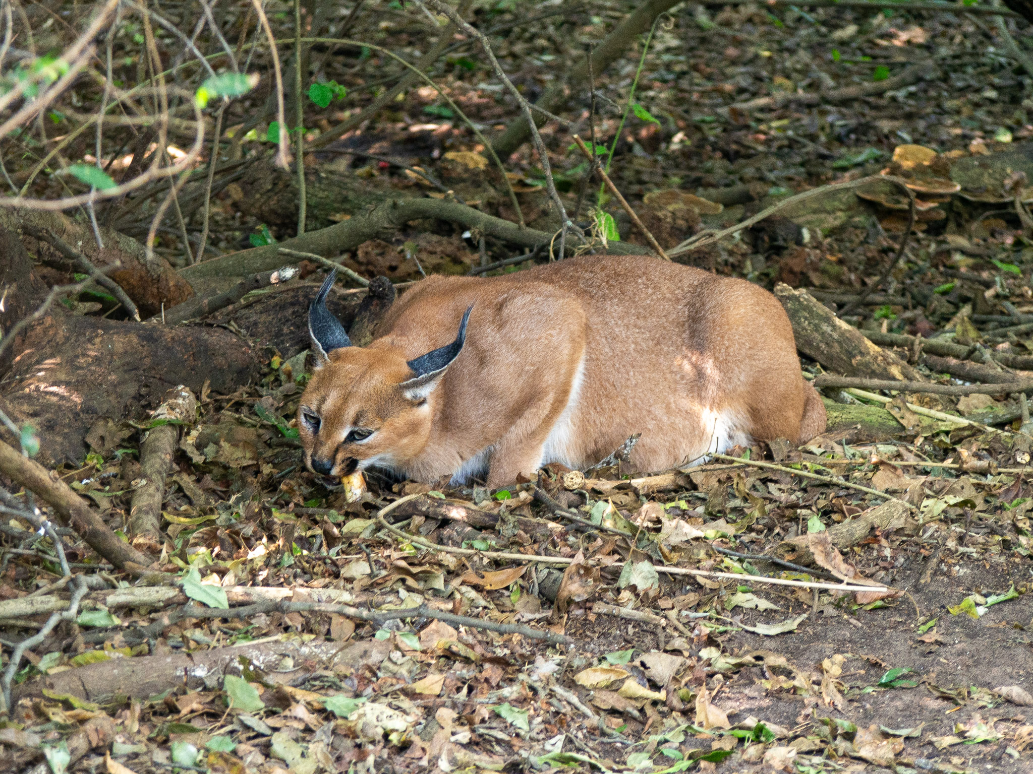 Puis on retrouve les caracals qui sont une véritable boule de nerfs énervées. Ils tournent et grognent en nous voyant, ils sont très athlétiques, le guide nous montre à quel point ils sont rapides et peuvent sauter haut. C’est impressionnant et un peu flippant, on n’a pas envie de tomber nez à nez avec cet animal dans la savane.