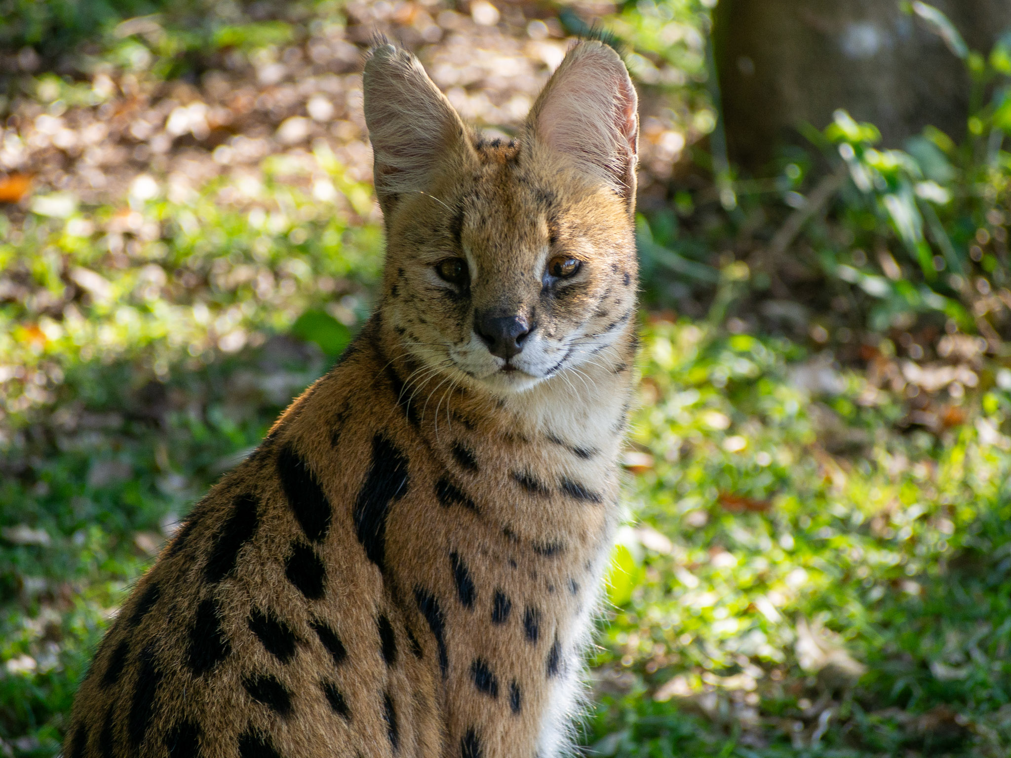 La suite de la visite nous amène aux servals qui sont à l’inverse beaucoup plus mignons. Ils ont le corps élancé et un pelage jaune tacheté de noirs.
