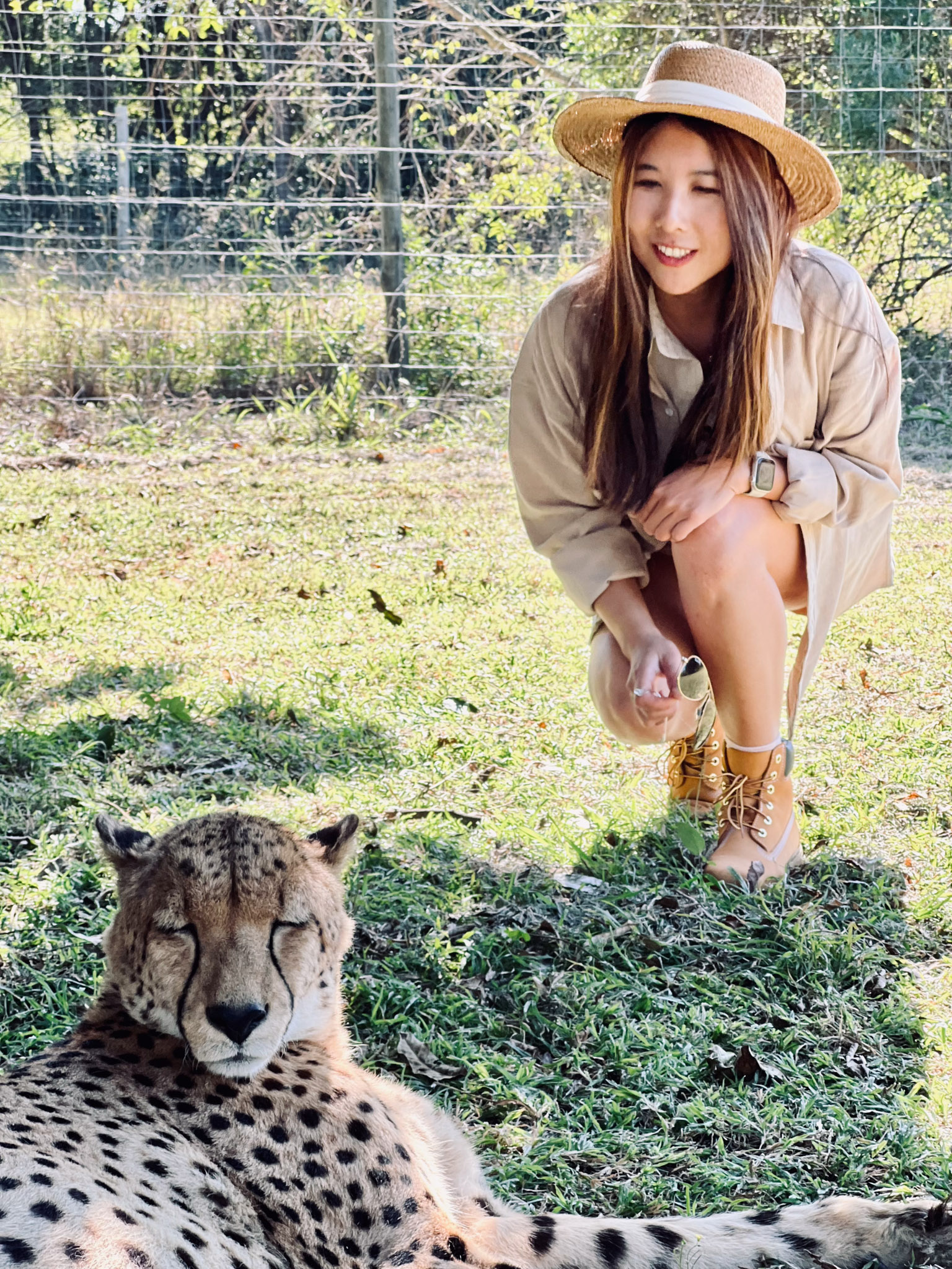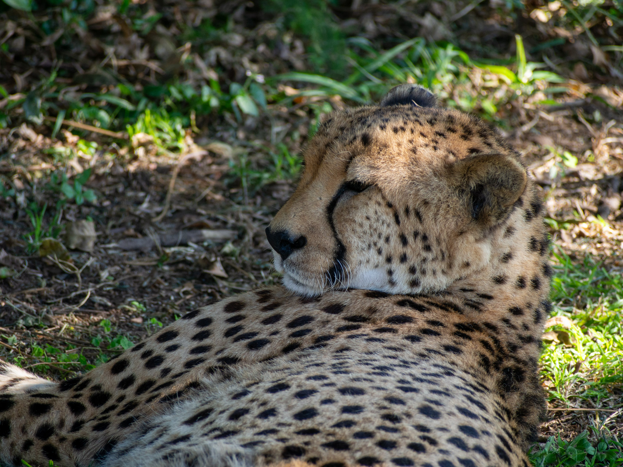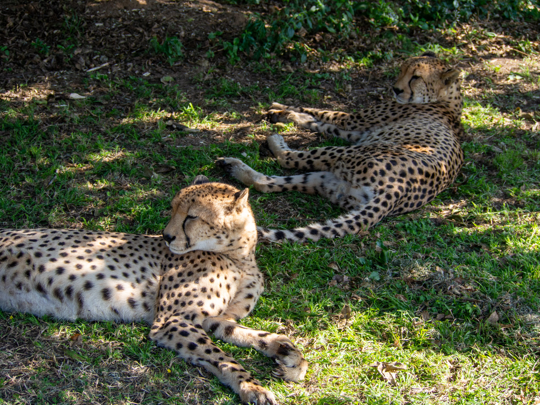 On termine la visite avec le plus grand enclos, celui des guépards. Il y a un enclos pour les mâles et un enclos pour les femelles. Le guépard fait une taille bien supérieure aux autres félins. Ils sont très longs et semblent beaucoup plus fins que les lions ou léopards que l’on avait vu.