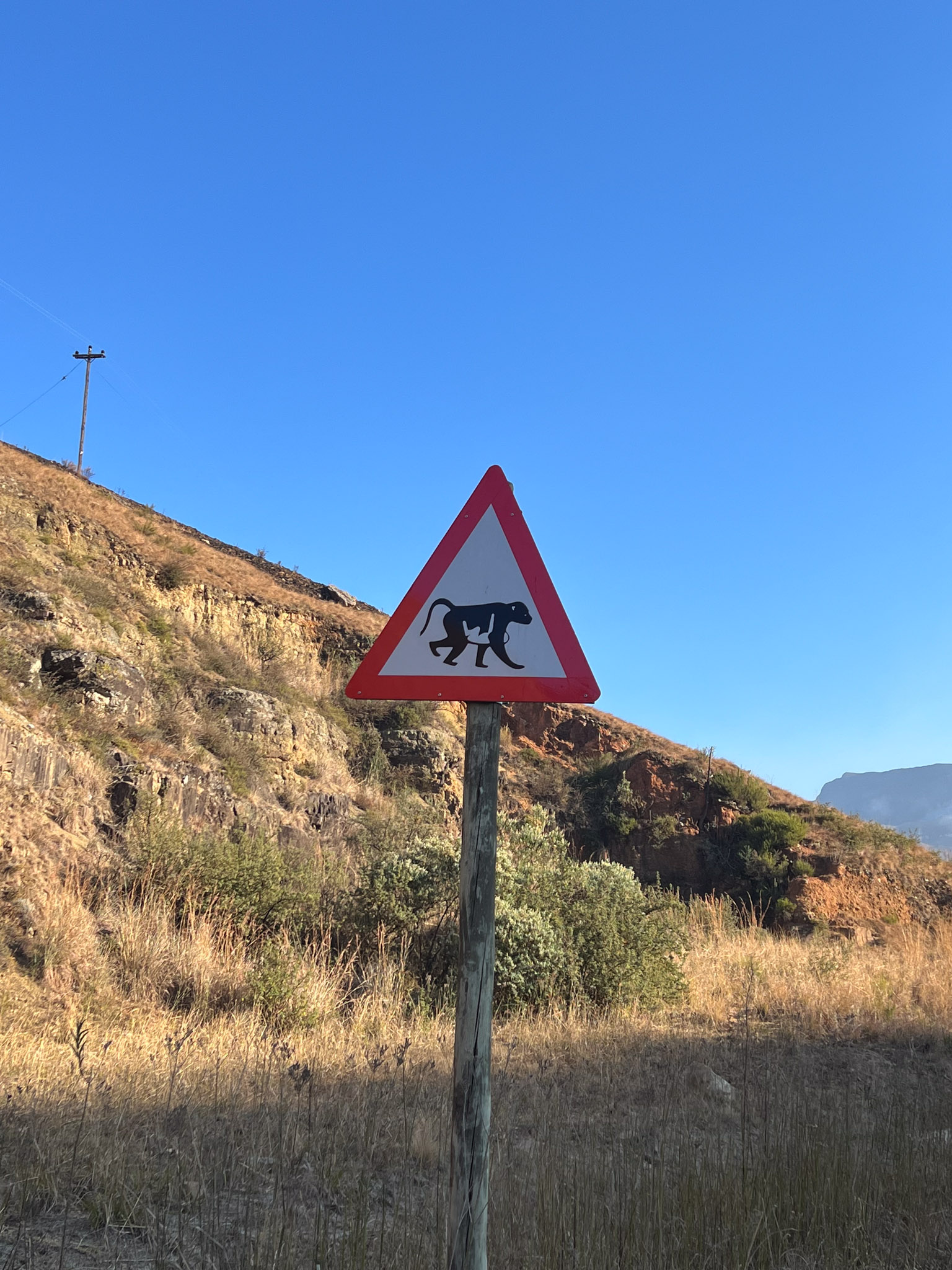 Le panneau annonce danger babouins mais finalement nous n'en verrons aucun dans ce coin, dommage. Le panneau est quand même tout mignon comme cela.
