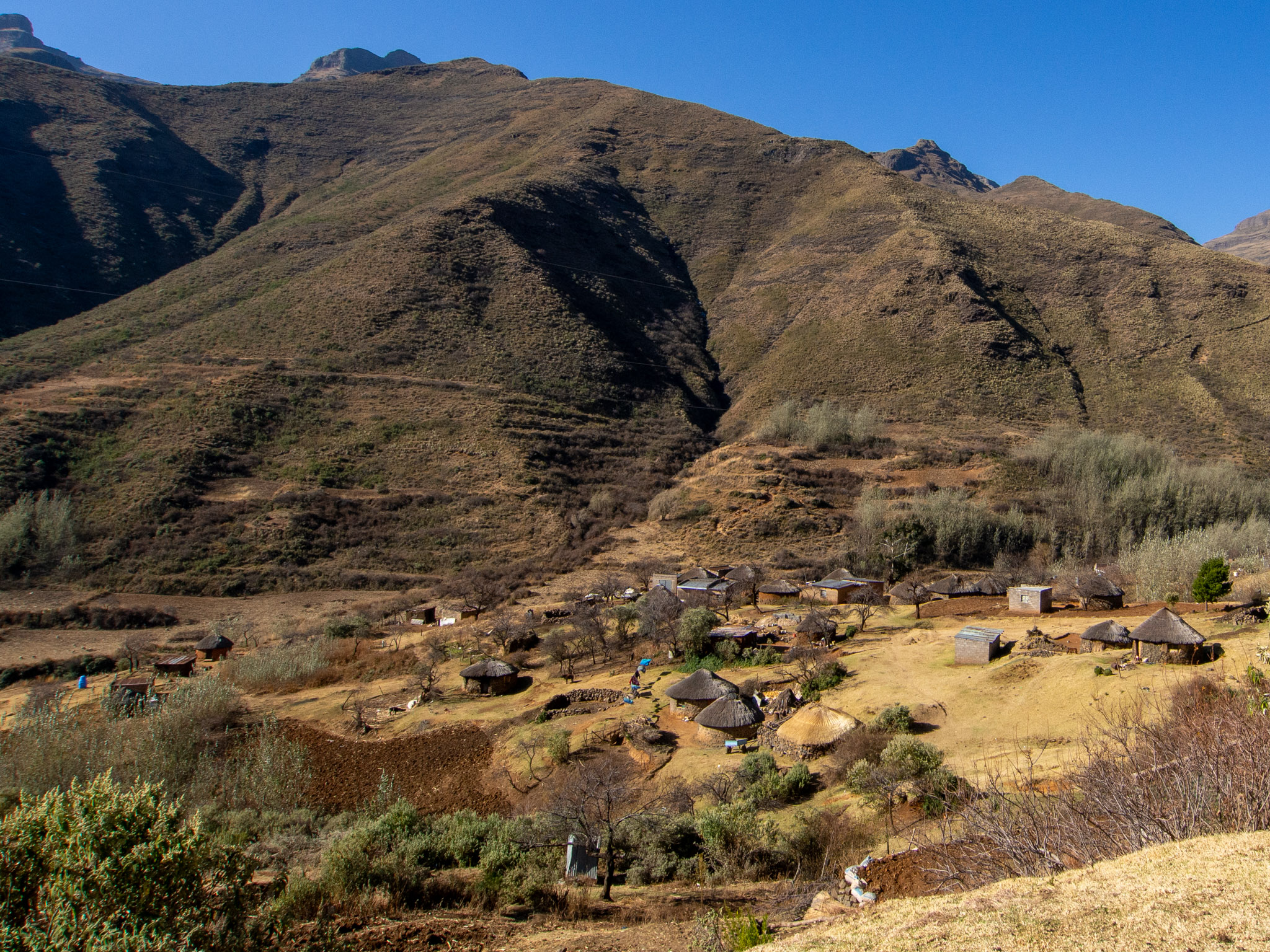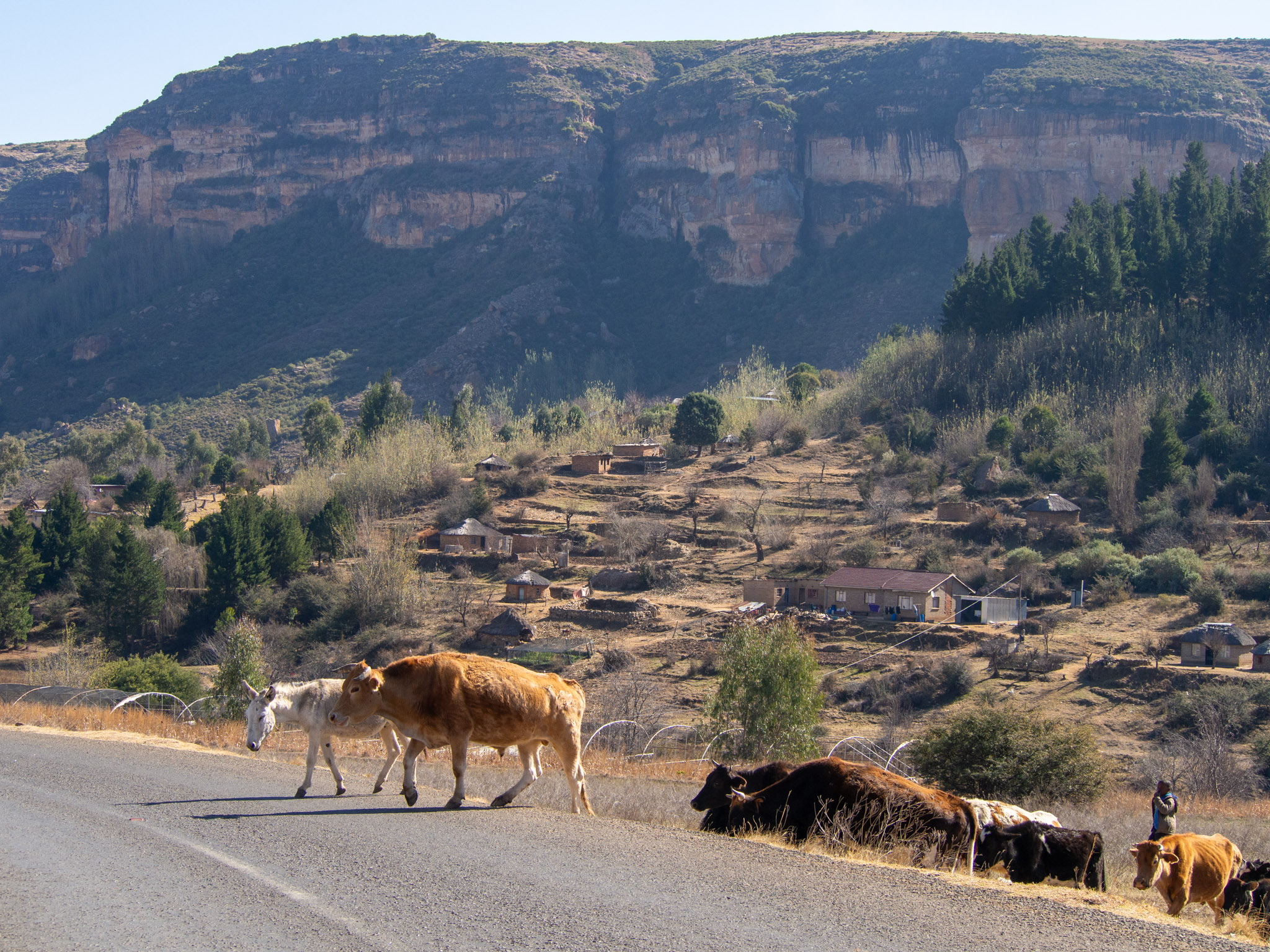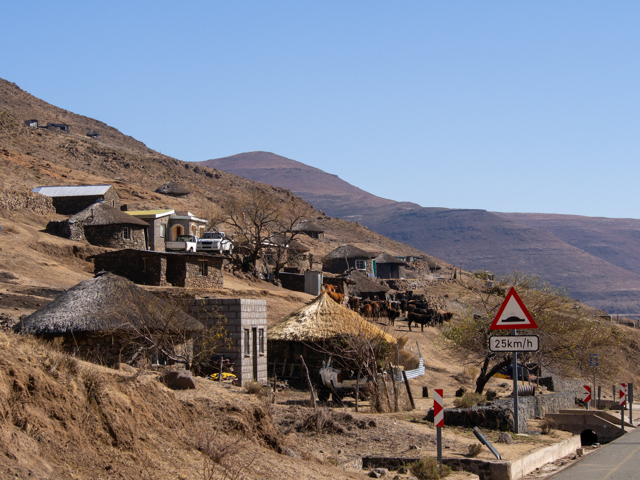 Les routes sont belles, quel contraste avec la pauvreté de la vie des gens de cette région du Lesotho. Les villages se succèdent, on a l’impression d’avoir fait un retour dans le passé, les gens vivent dans des cases en chaume.