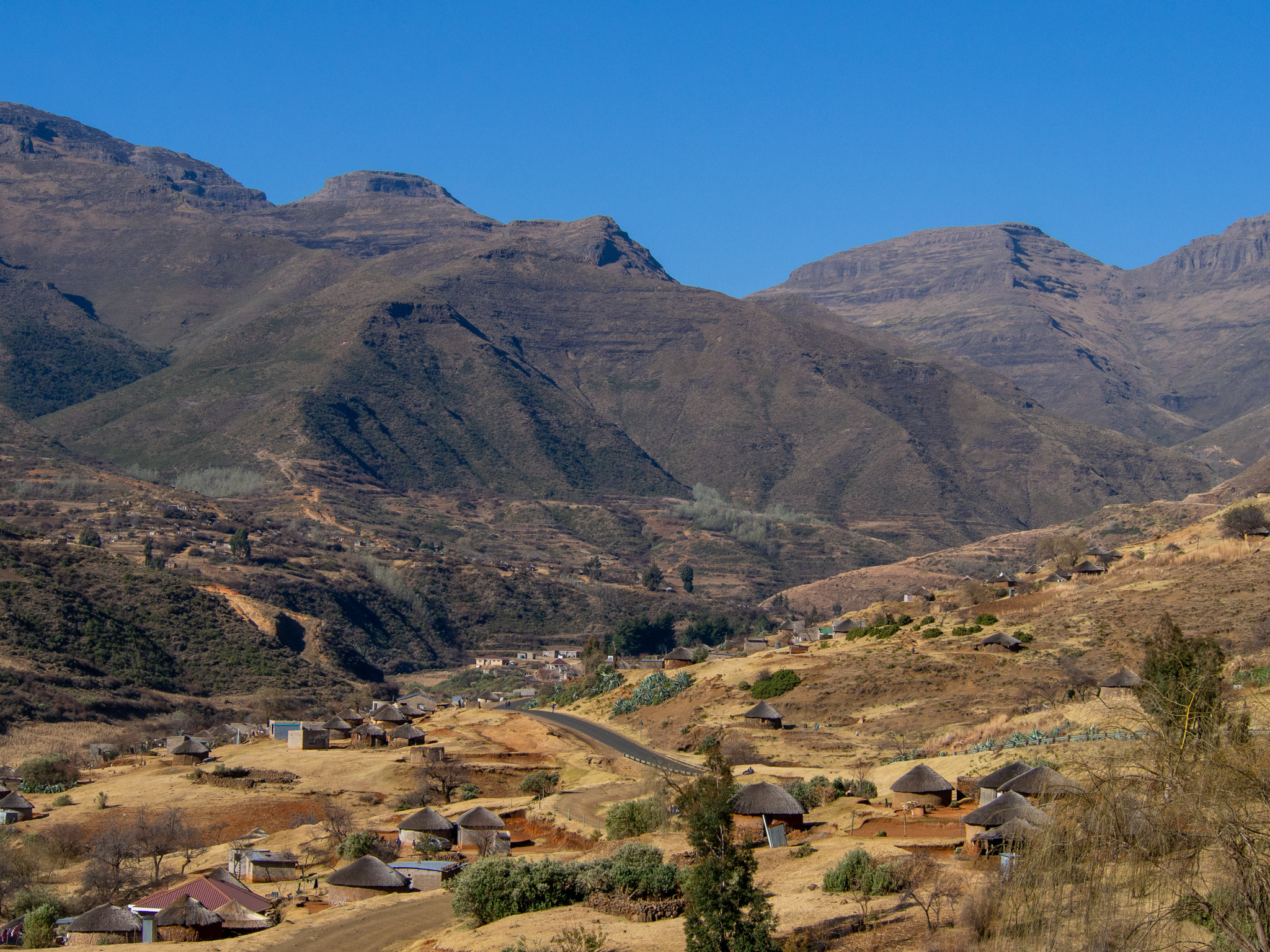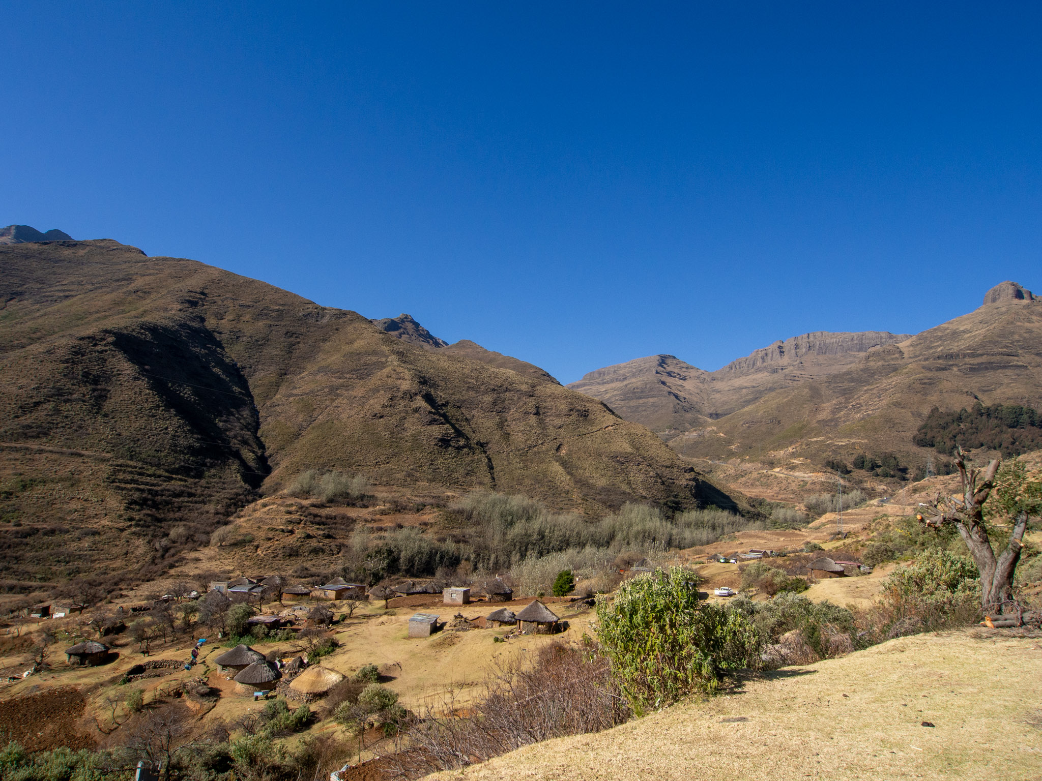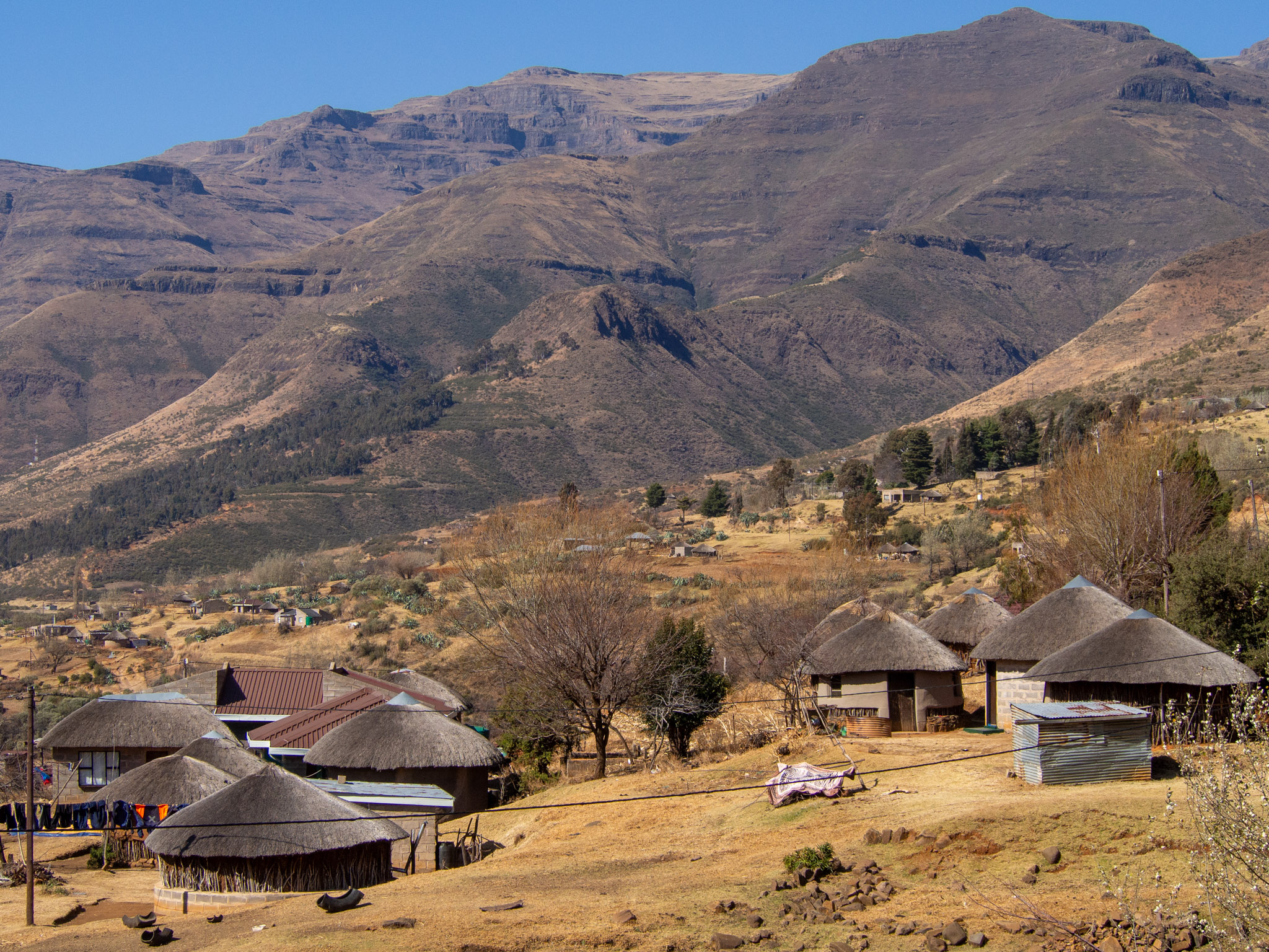 Les routes sont belles, quel contraste avec la pauvreté de la vie des gens de cette région du Lesotho. Les villages se succèdent, on a l’impression d’avoir fait un retour dans le passé, les gens vivent dans des cases en chaume.
