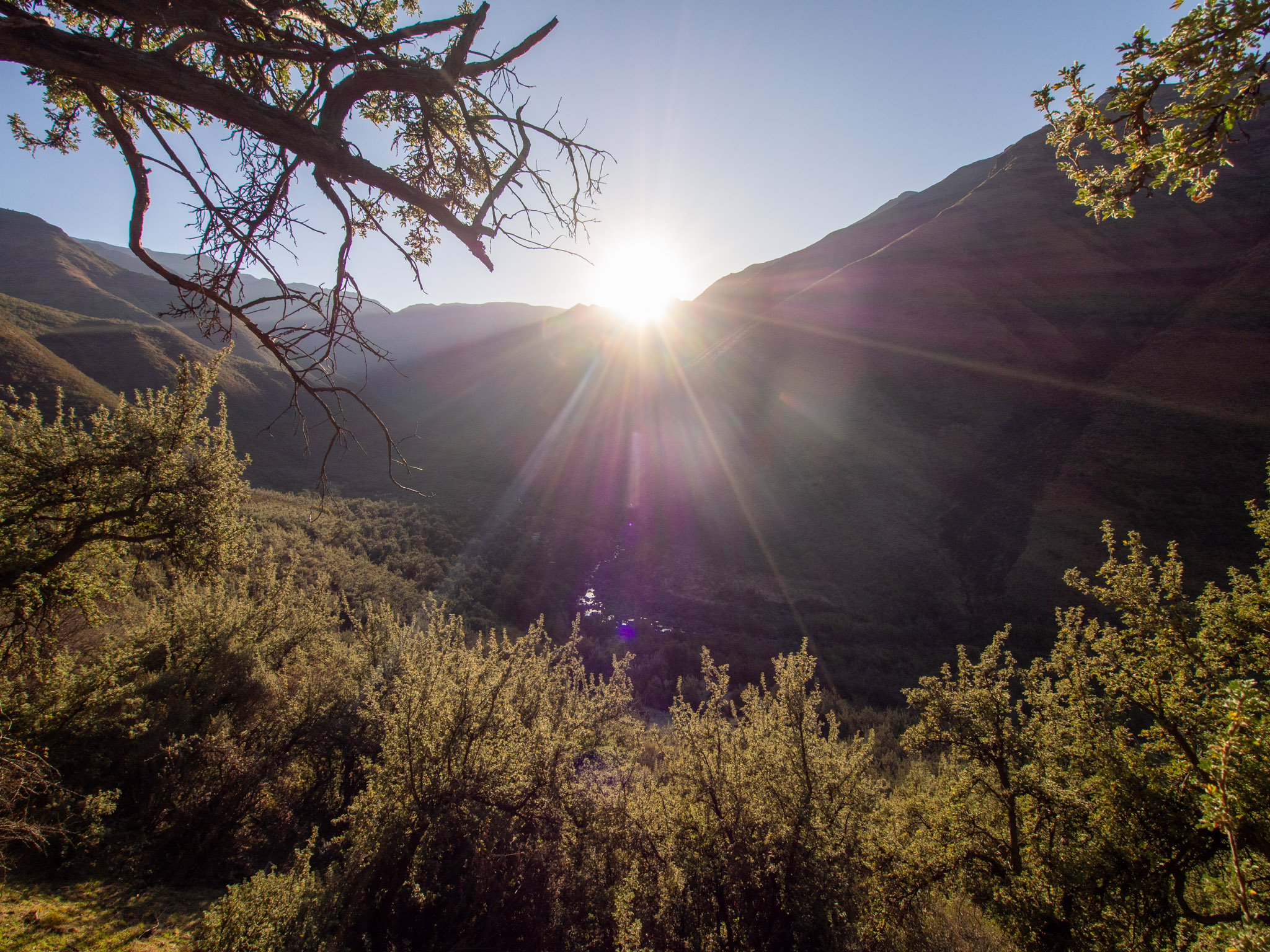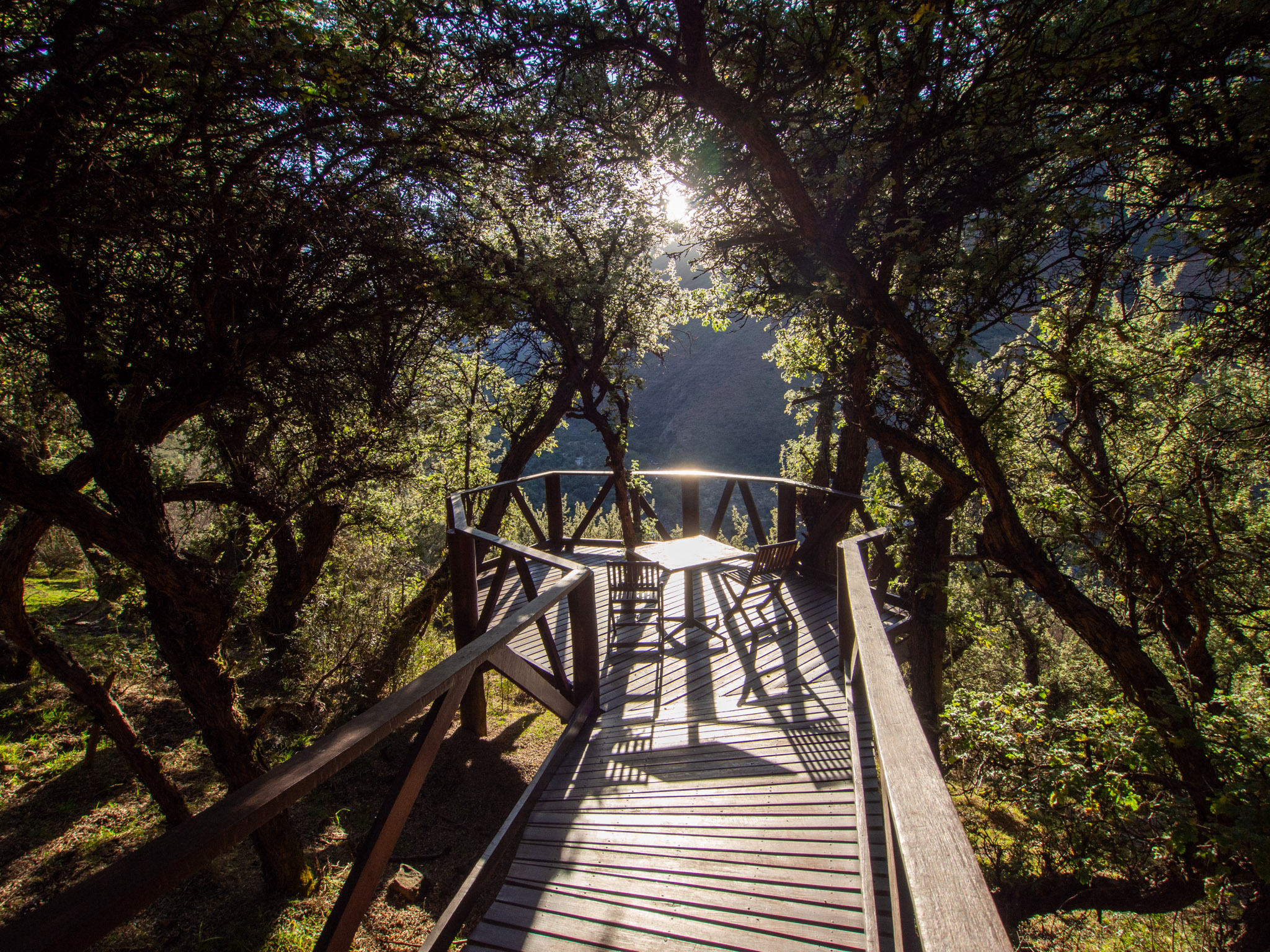 Cela aura été notre plus belle nuit de tout notre voyage. Au lever de soleil, on s’installe sur le balcon qui domine la vallée. L’air est pur ici, la lumière du matin est très claire.