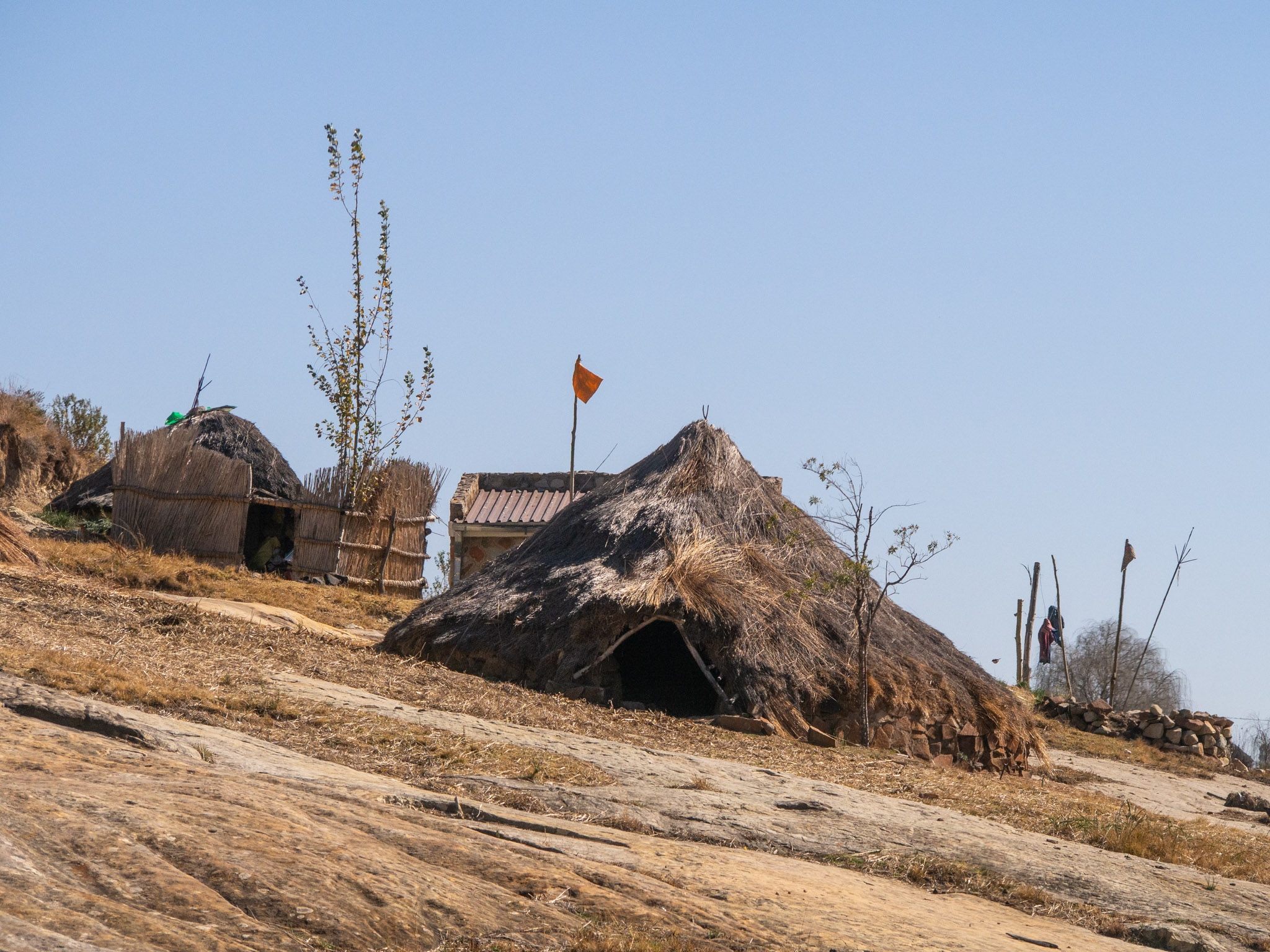 Après cette petite randonnée équestre, c’est le moment de reprendre la voiture. Nous quittons le lodge et roulons jusqu’à la frontière de l’Afrique du Sud. La route est vraiment splendide avec une succession de villages en chaume.