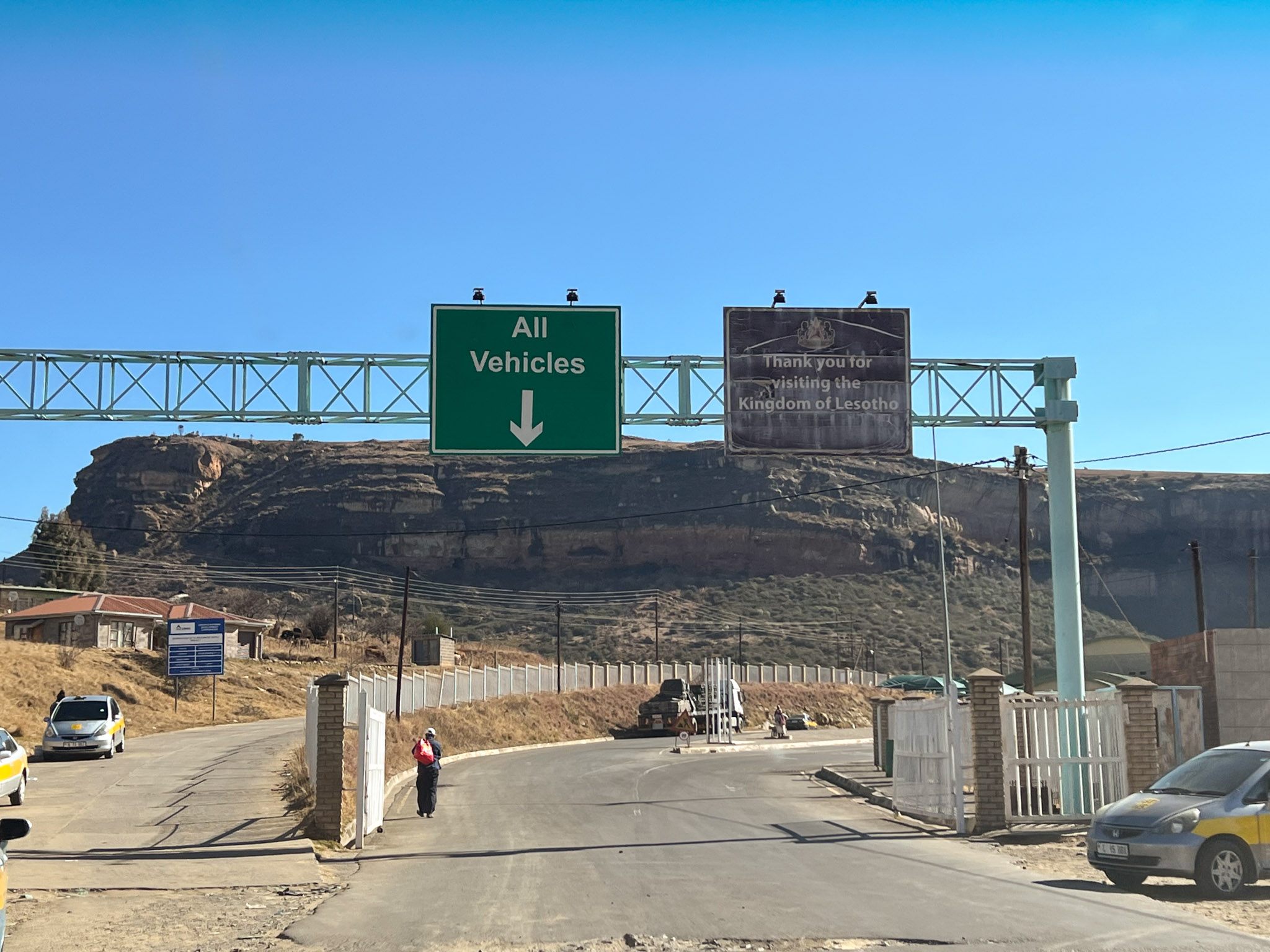 On la remercie et on passe devant la barrière où l’agent voit m copine avec son chapeau sur la tête, il rit et nous demande si nous avons passé du bon temps au Lesotho. On lui répond par l’affirmative et il nous souhaite de revenir un jour en nous tendant nos passeports.