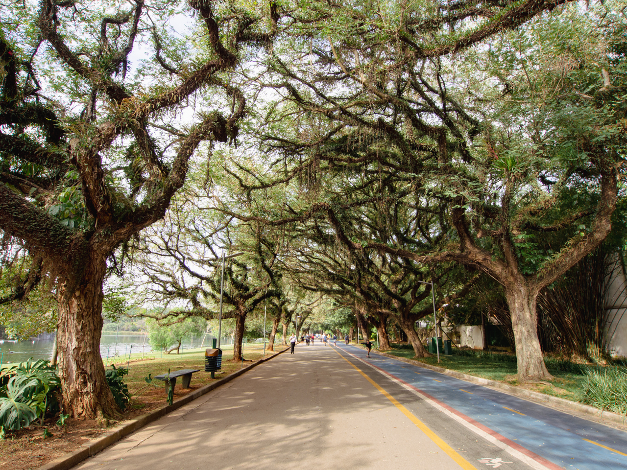 On commence la journée par une promenade dans le parc urbain d’Ibirapuera. Le central Park de Sao Paulo permet d’avoir une entrée en matière en douceur dans cet enfer de béton. Le parc est sécurisé aux entrées et patrouillé par des agents ce qui permet de se promener sans trop se préoccuper de ses affaires, un sentiment agréable de légèreté précieux à Sao Paulo. Le matin, de nombreux sportifs font le parcours sous les arbres en footing.
