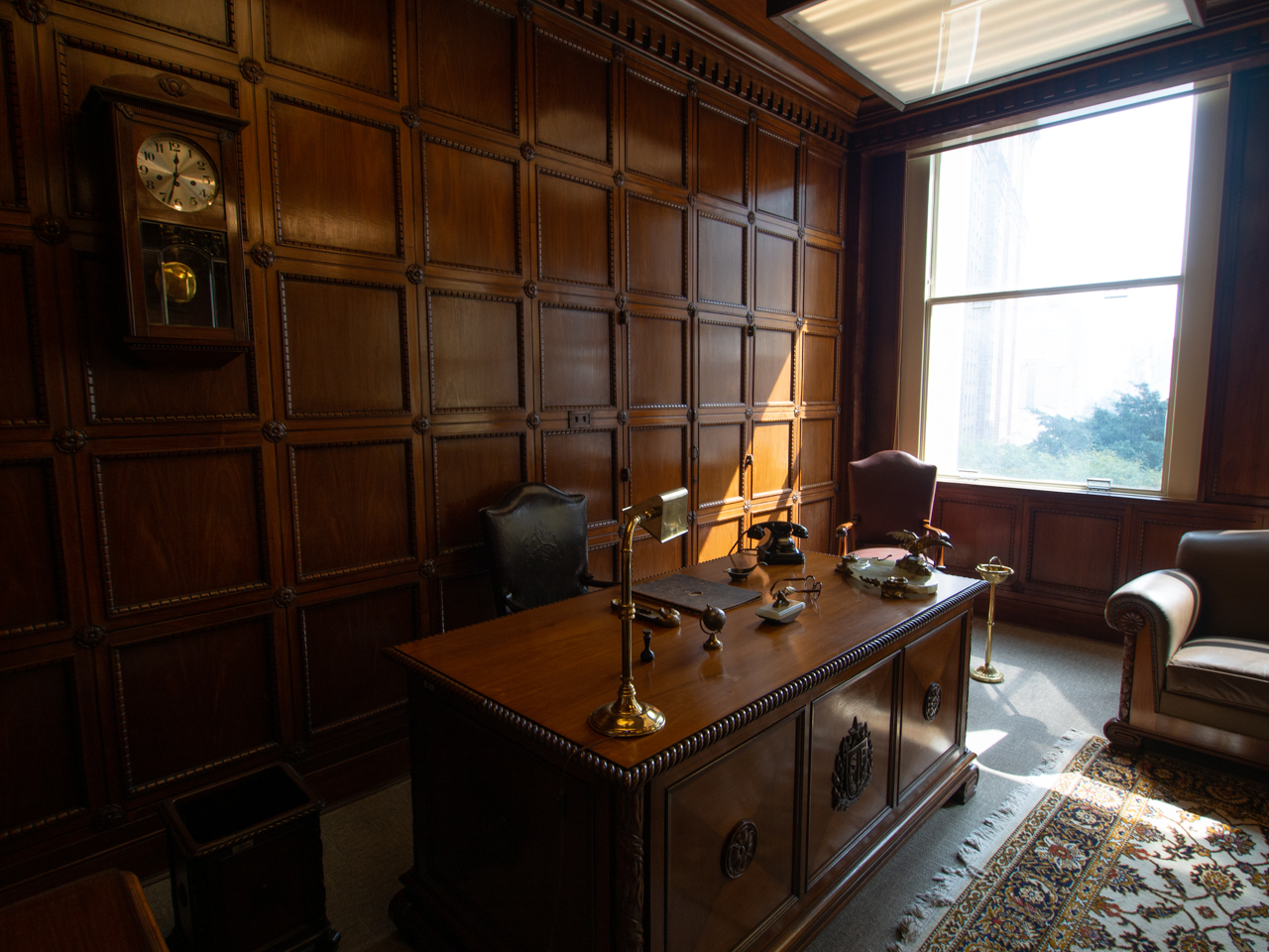 Il y a même un skate Park dans le bâtiment. Puis en continuant la descente par les escaliers, dans les étages inférieurs, on peut visiter les bureaux originaux de la banque, notamment la salle de réunion de la direction et le bureau du directeur.