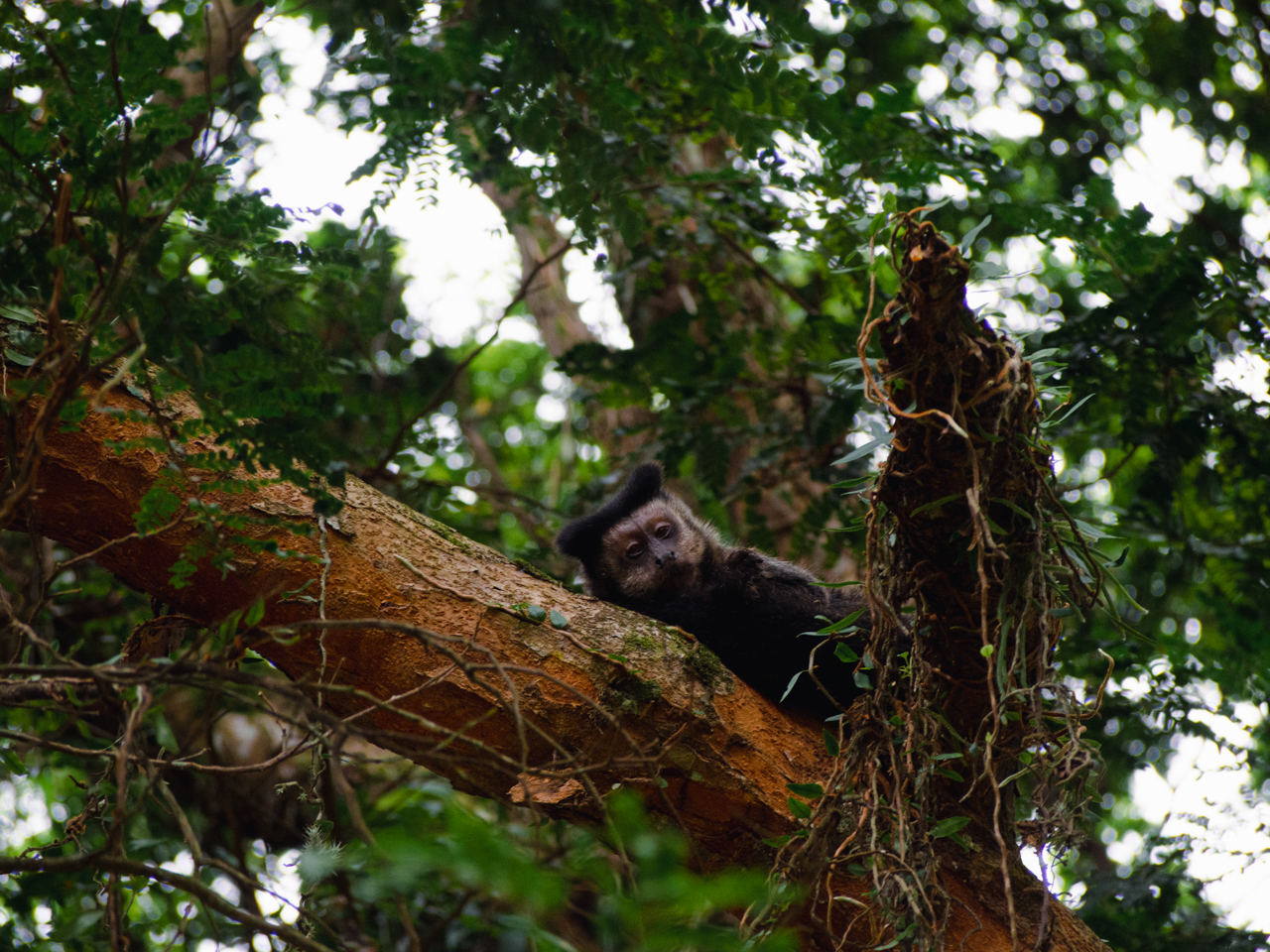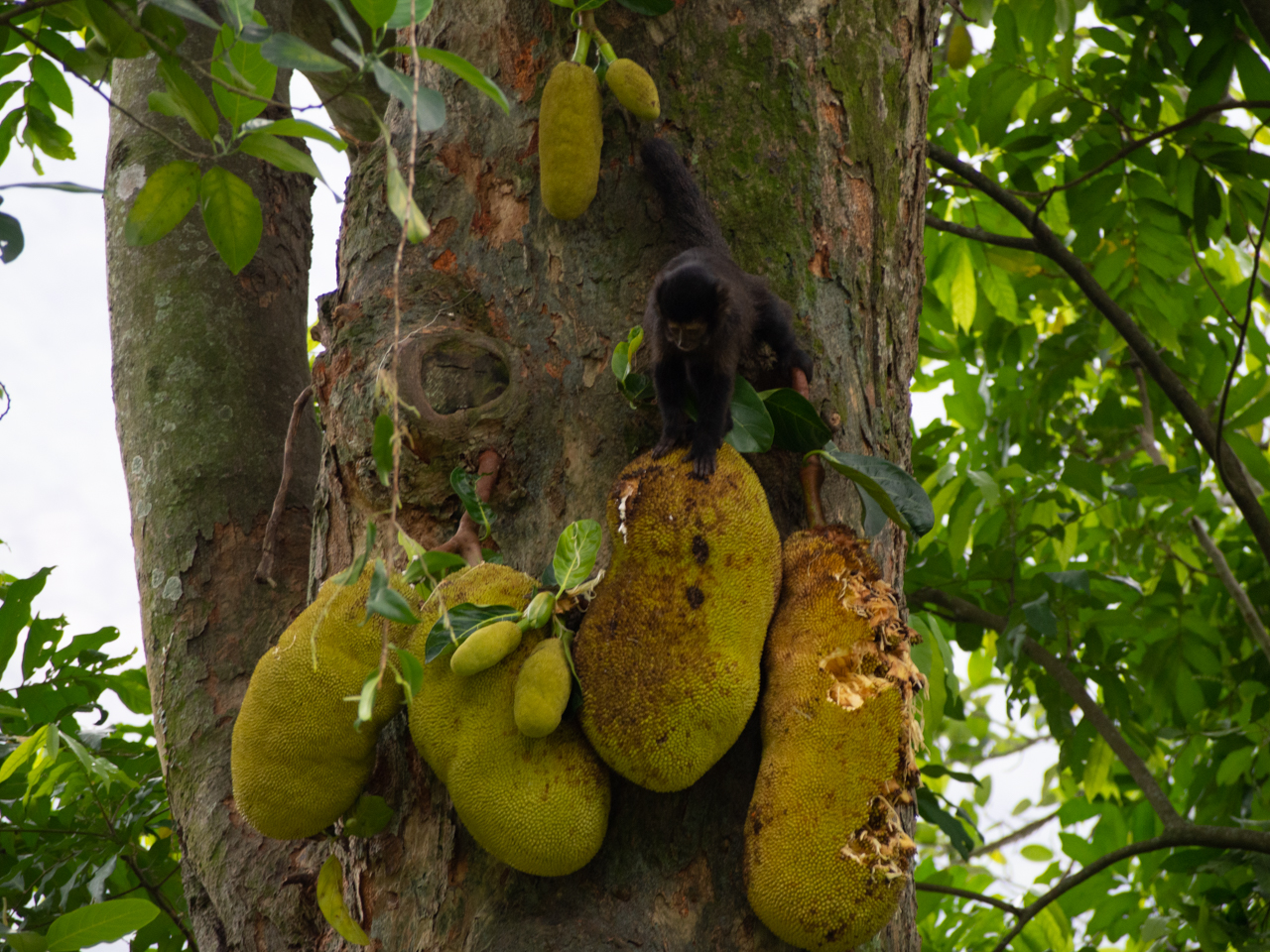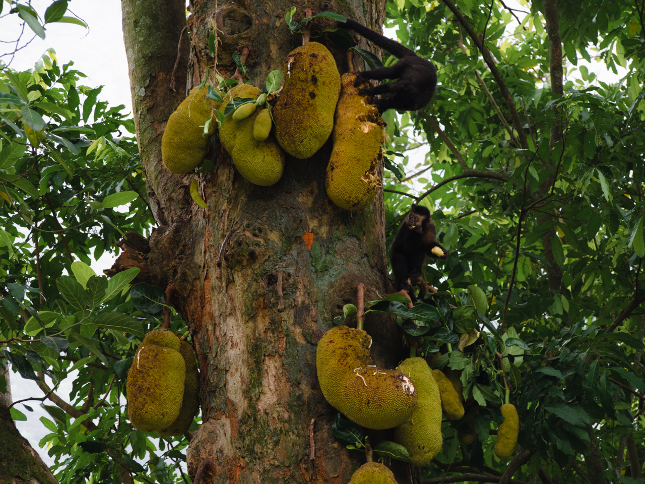 Il y a aussi des colonies de singes. Ils mangent de gros fruits tropicaux dans les arbres.