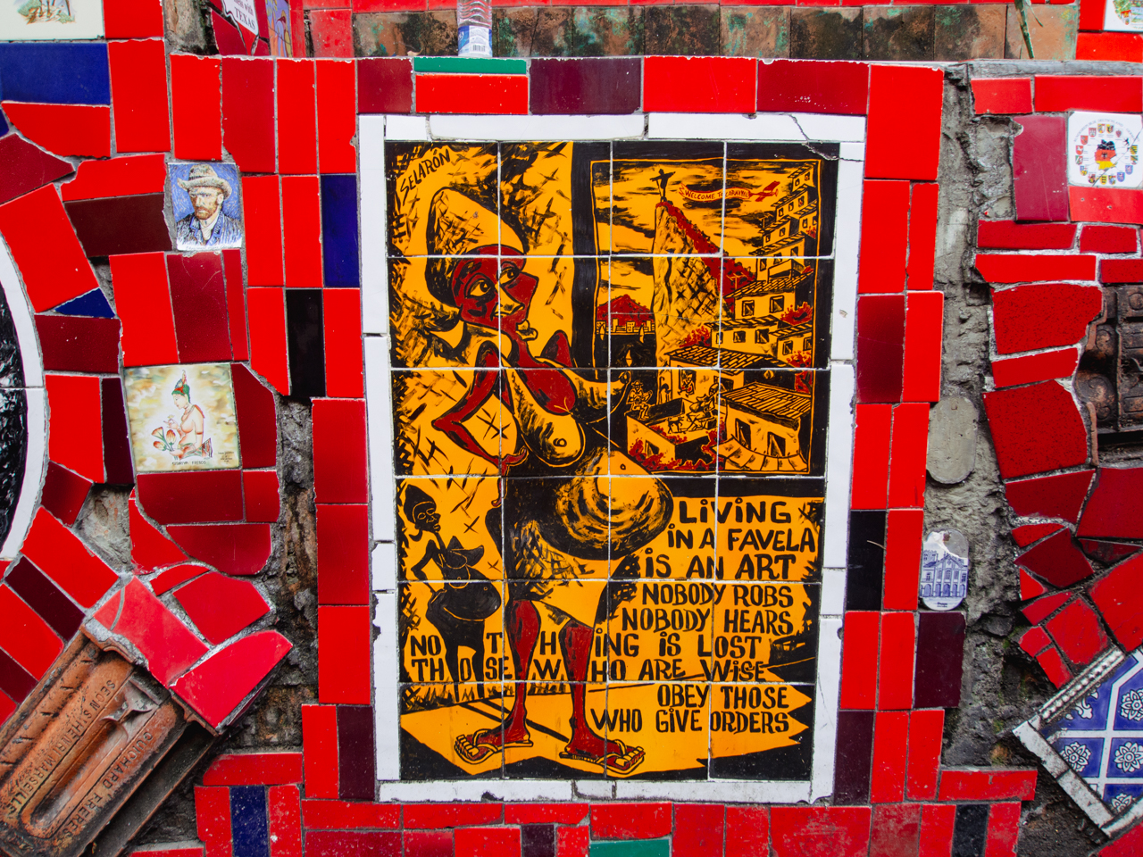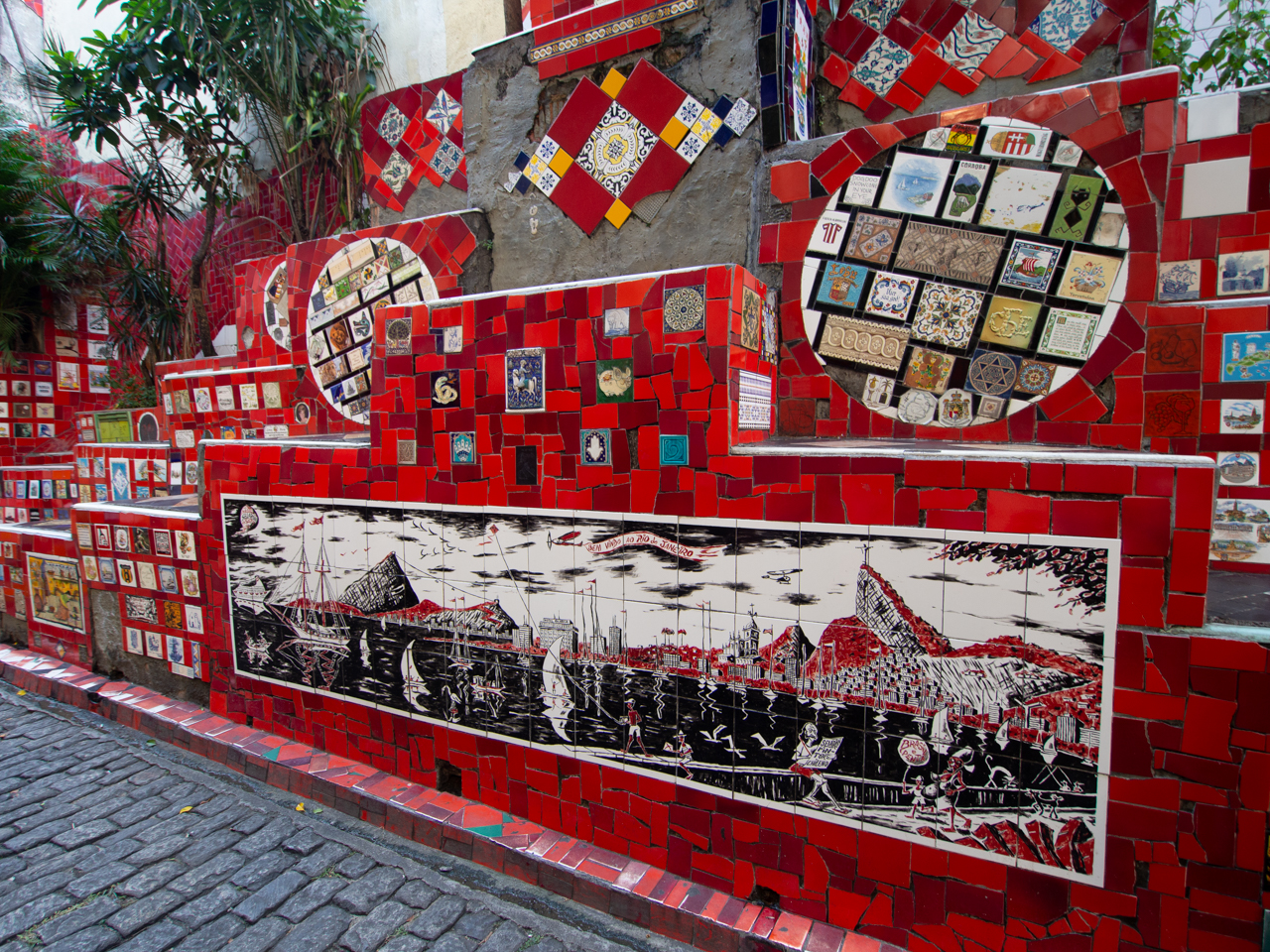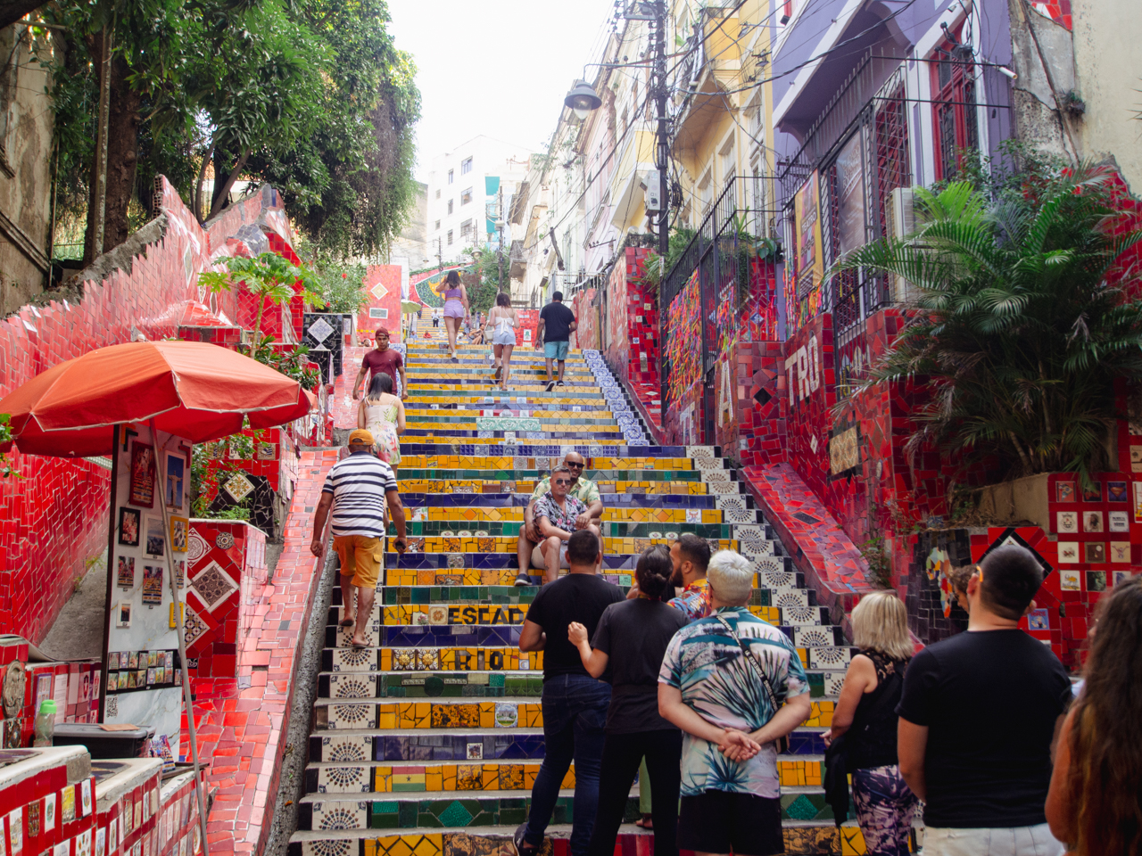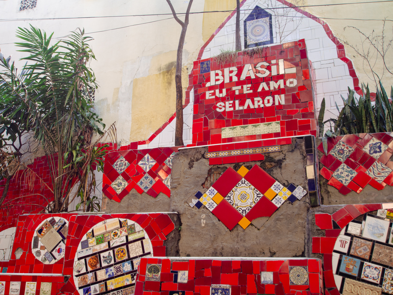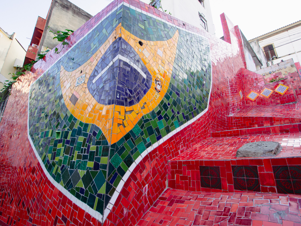 Un des endroits les plus populaires de la ville de Rio de Janeiro, pas très loin de l’aqueduc, se trouve cet escalier tout coloré en céramique, oeuvre de l’artiste carioca Selaron. L’escalier attire tous les touristes de Rio et c’est une profusion de couleurs.