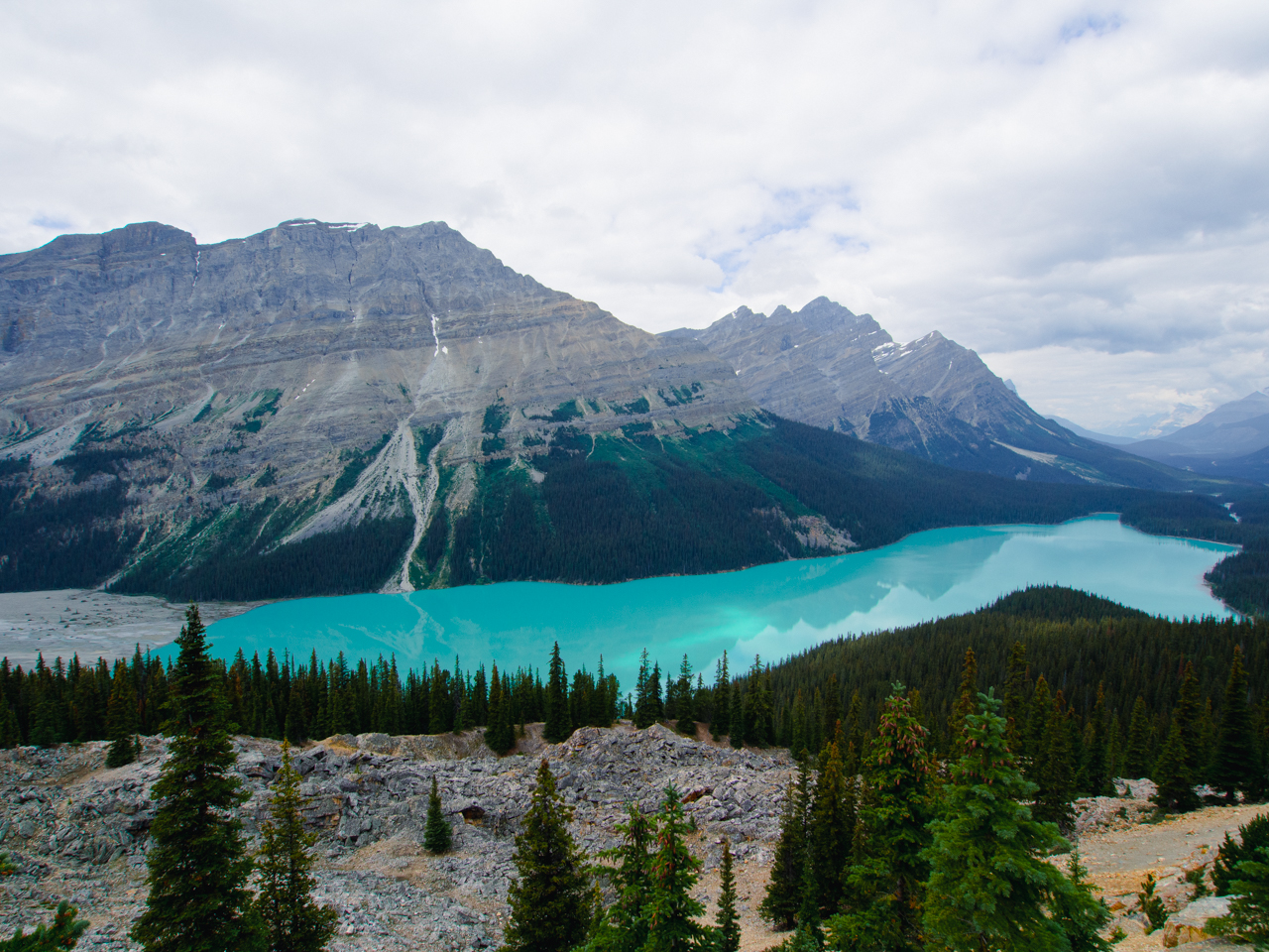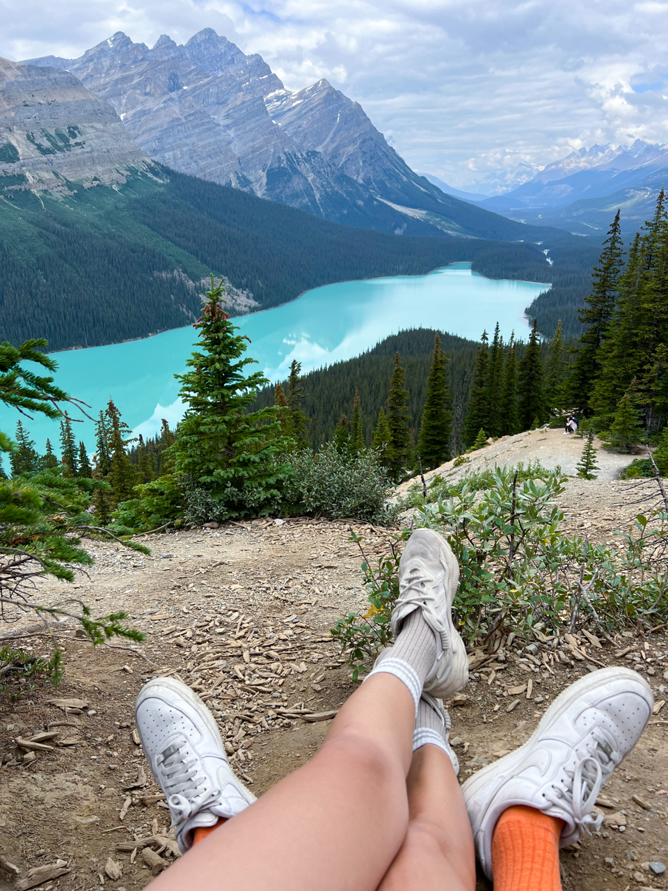 On s’installe ici, on avait prévu de faire notre pique nique face au Lac Peyto.