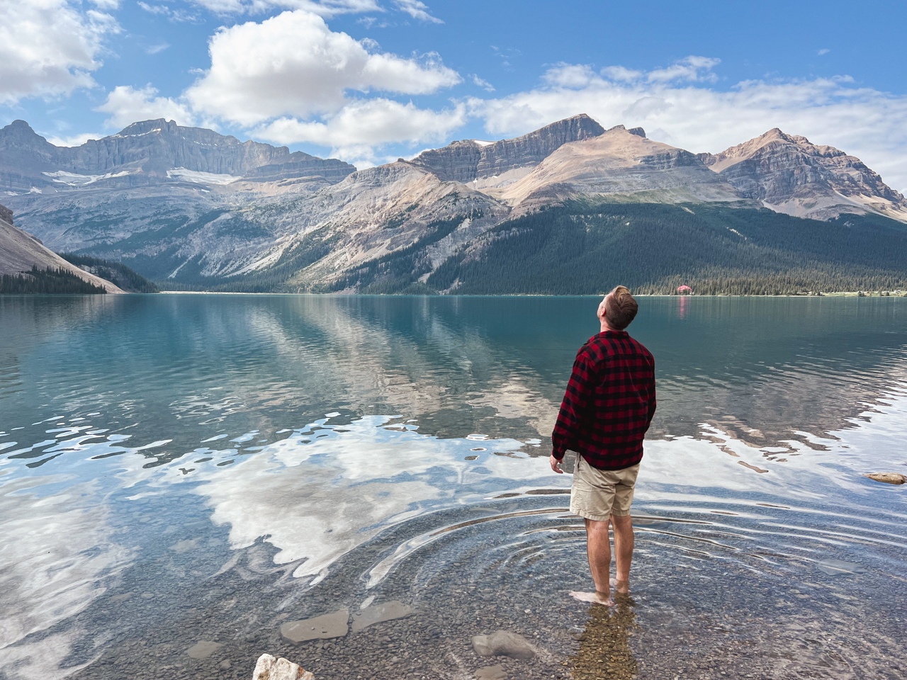 L’eau est glaciale, normale pour un lac de glacier, mais on arrive à tremper un peu les pieds, pas plus. C’est déjà pas mal… Cette petite pause conclut donc cette journée incroyable sur une des plus belles routes du monde, à tutoyer les glaciers entre Jasper et Banff, sur la Icefield Parkway.