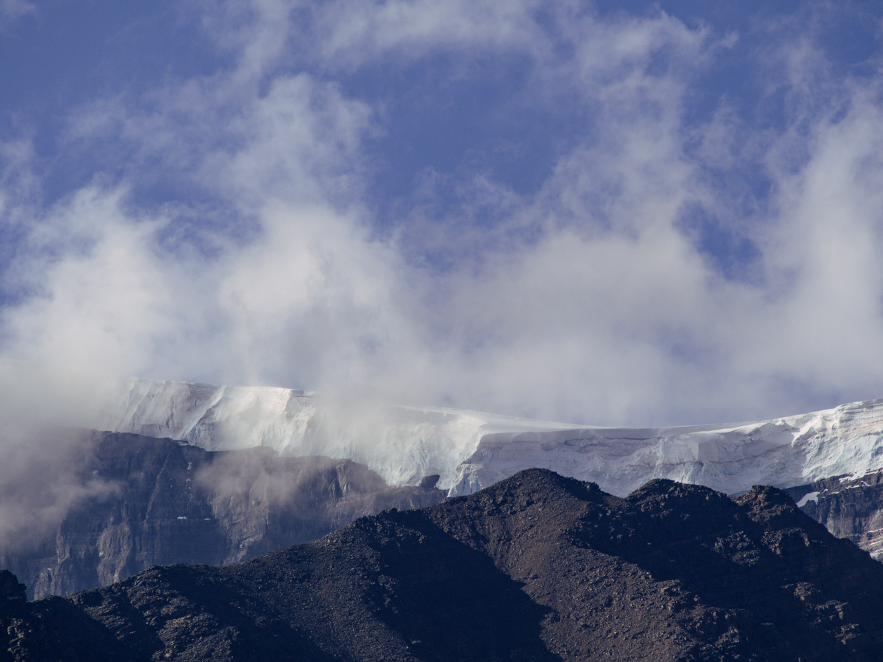 Le glacier qui alimente le lac est bien en retrait, c’est ce genre d’image qui nous rend mélancolique, qui nous laisse penser que ce sont des paysages que nos enfants n’auront pas la chance de voir de leurs propres yeux.
