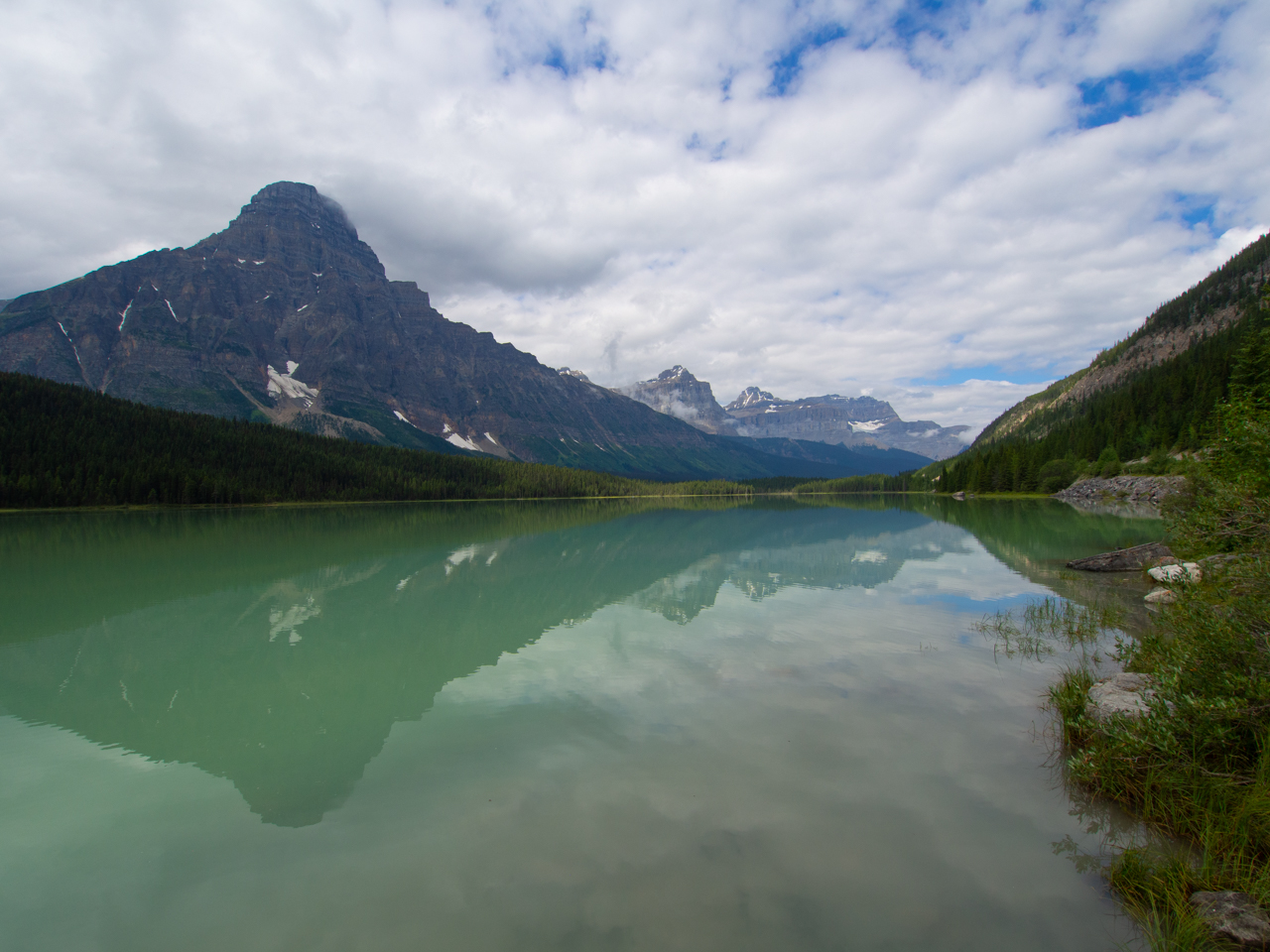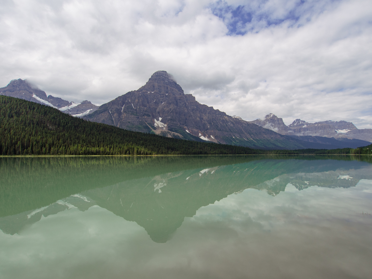 On reprend la route avec ce sentiment de plénitude. Le Lac Peyto était notre dernière étape du jour le long de Icefield Parkway qui se termine à Lake Louise. Or quelques minutes plus tard, un arrêt improvisé s’impose, la route passe le long d’un lac magnifique que je n’avais pas spécialement noté sur ma carte.