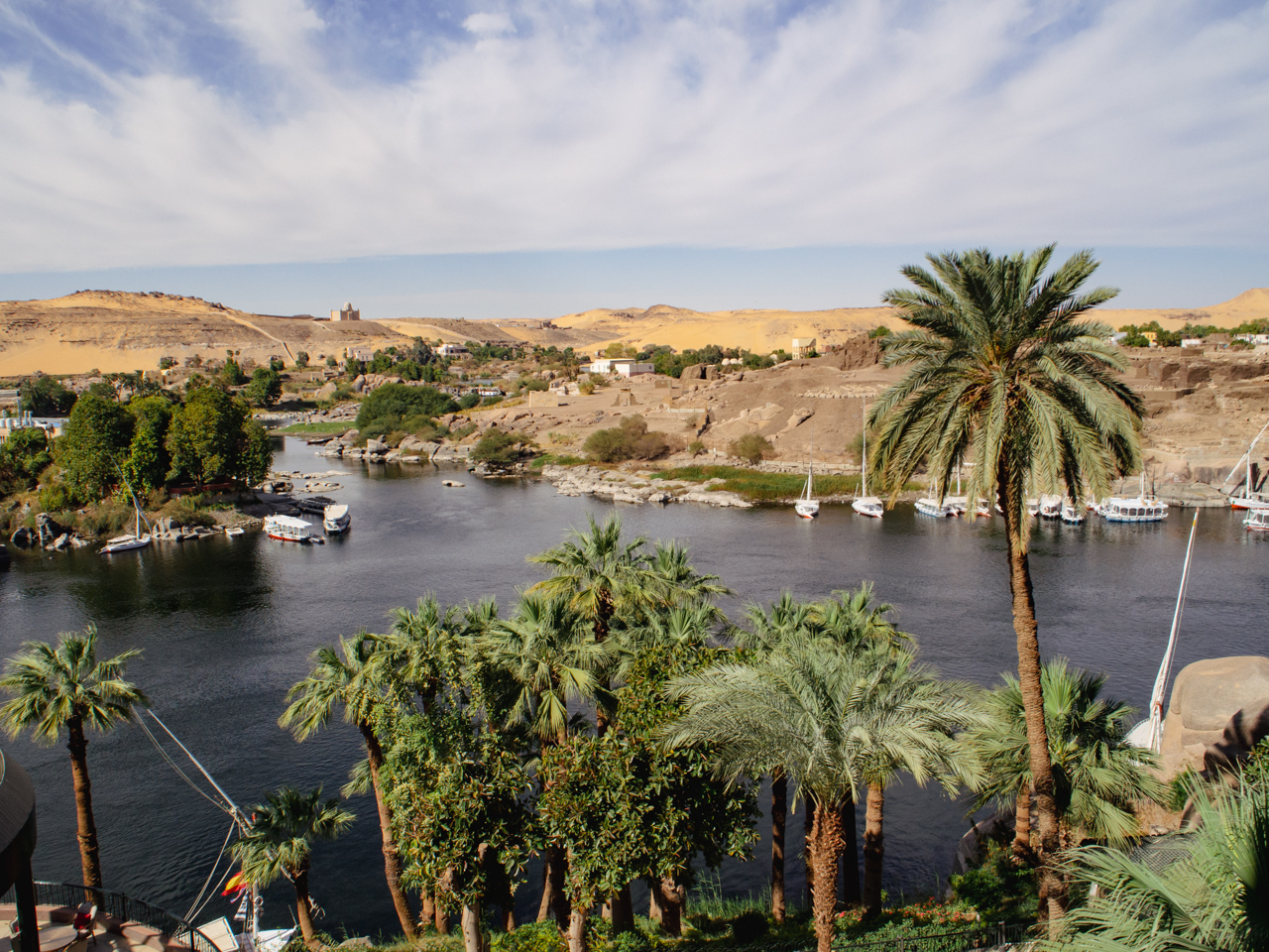 Après une première journée au Caire, nous commençons notre périple le long du Nil par la ville la plus au Sud d'Egypte sur le Nil, Assouan. On va remonter jusqu'au Caire en une dizaine de jours. Ici, on change d'univers, le paysage fluvial correspond vraiment à ce que l'on imagine de cette Egypte éternelle. Le Nil traverse la fameuse première cataracte, des rapides dangereux pour la navigation et qui marquait une frontière dans l'Egypte ancienne.