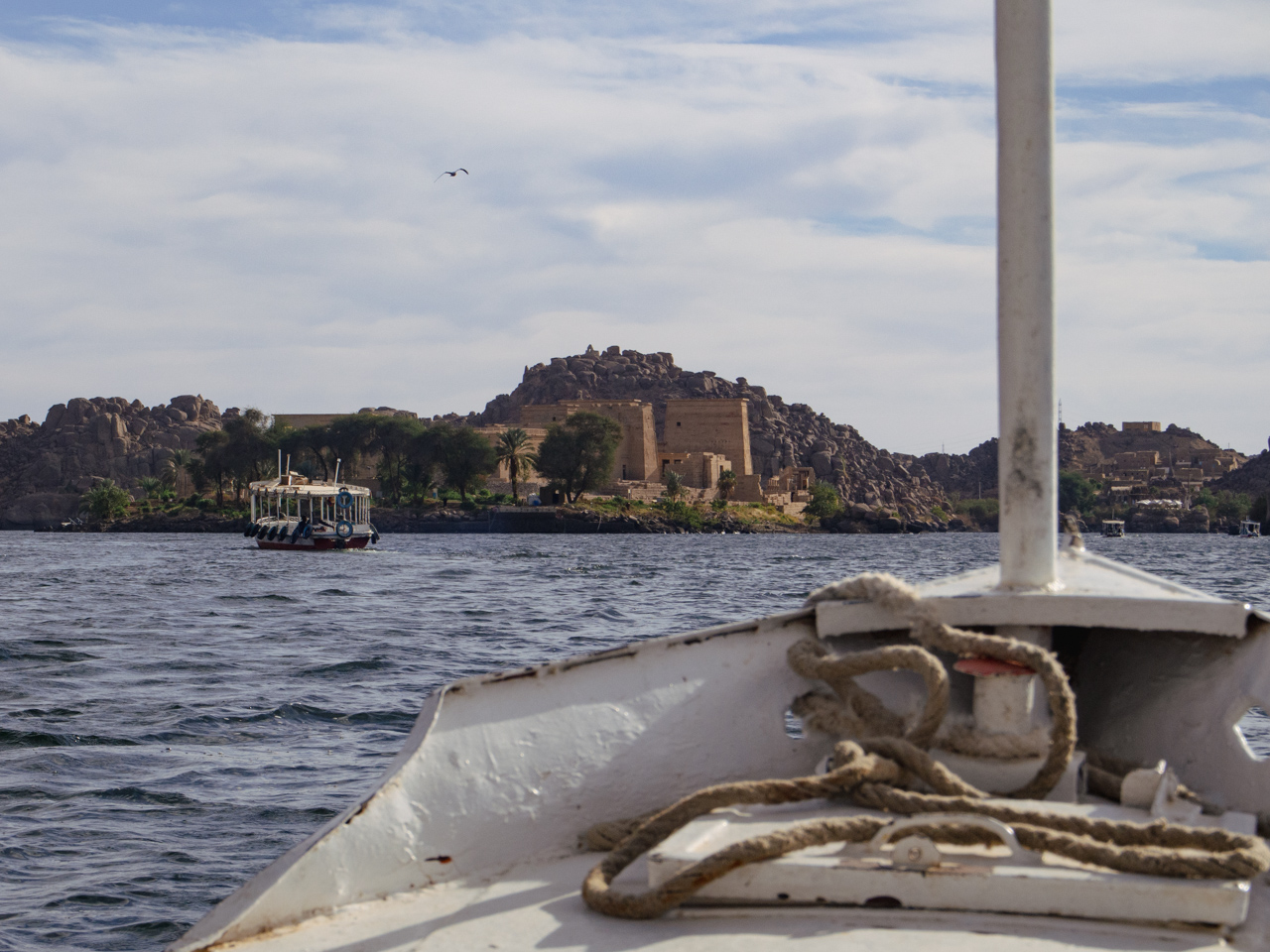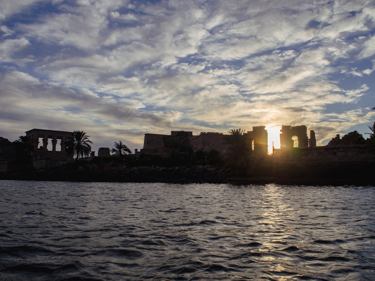 Alors que le soleil se couche sur le temple de Philae, on reprend le bateau pour Assouan.
