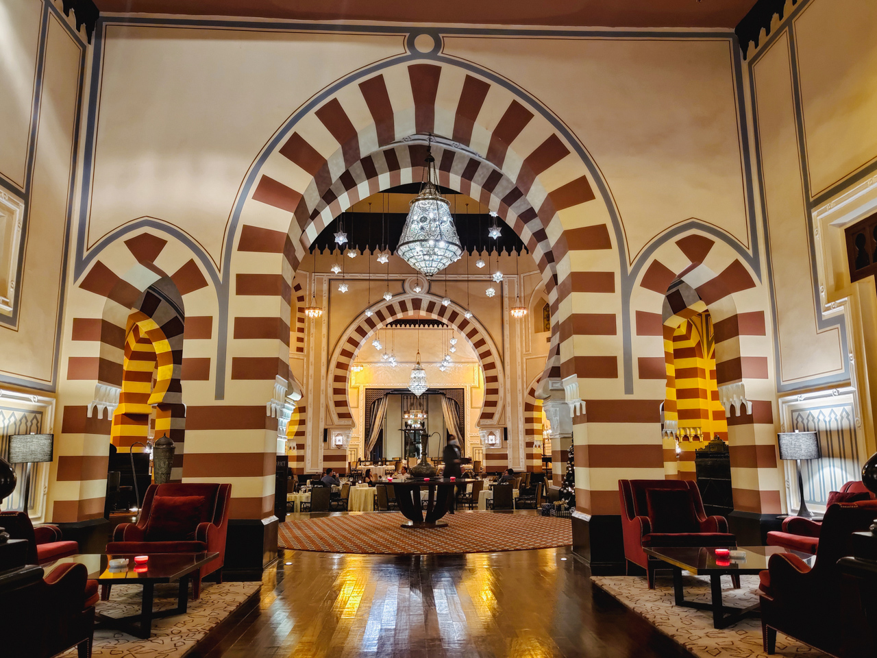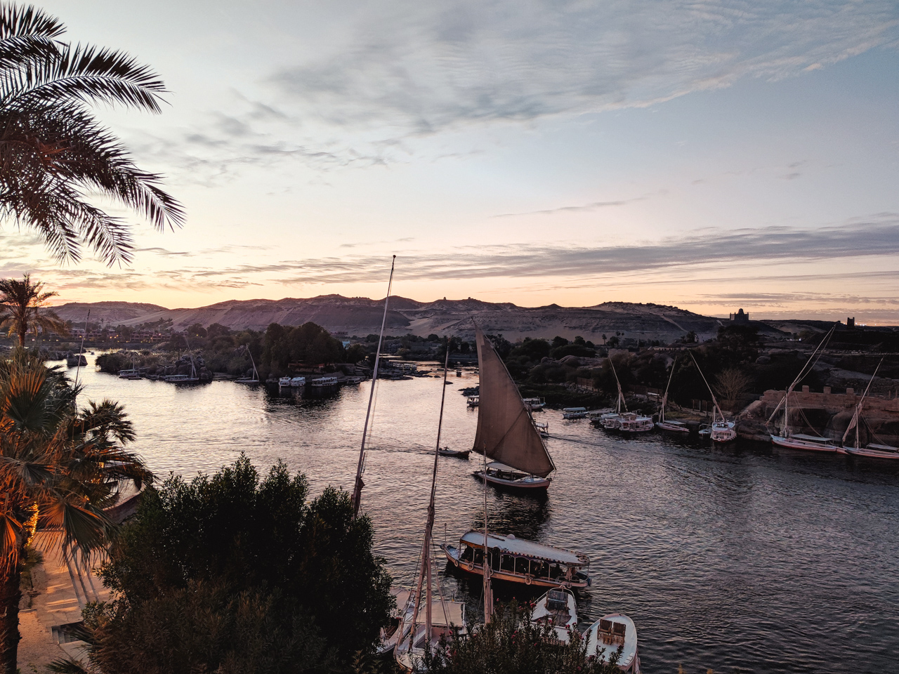 Le pilote nous a offert un joli vol au-dessus du lac Nasser avant d’atterrir à Assouan en plein milieu du désert, c’est très beau. L’arrivée à l’aéroport d’Assouan est rapide, on sort de l’aéroport et on tombe sur la mafia des taxis qui ne veulent pas nous déposer en centre-ville pour un prix abordable. Après avoir appelé un taxi sur Careem, un des chauffeurs accepte de s’aligner et nous partons sous la désapprobation de ses camarades. On arrive devant le légendaire hôtel du Old Cataract, que l’on a décidé de réserver pour vivre l’expérience unique de loger dans ce lieu chargé d’histoire, depuis le XIXe siècle.