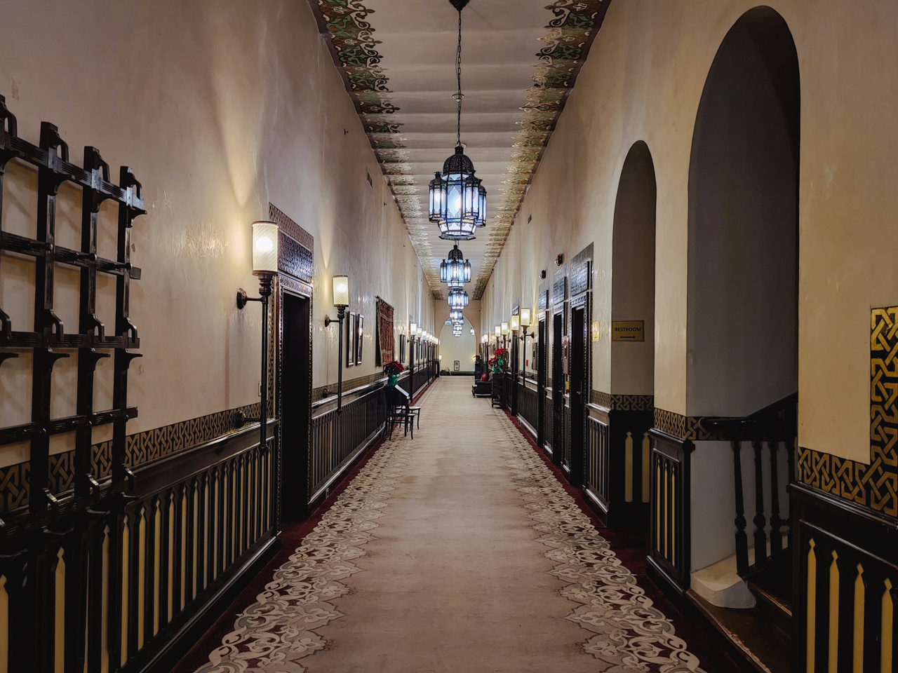 Puis nous finissons la soirée en errant dans les couloirs de l’hôtel qui présente ses illustres clients.
