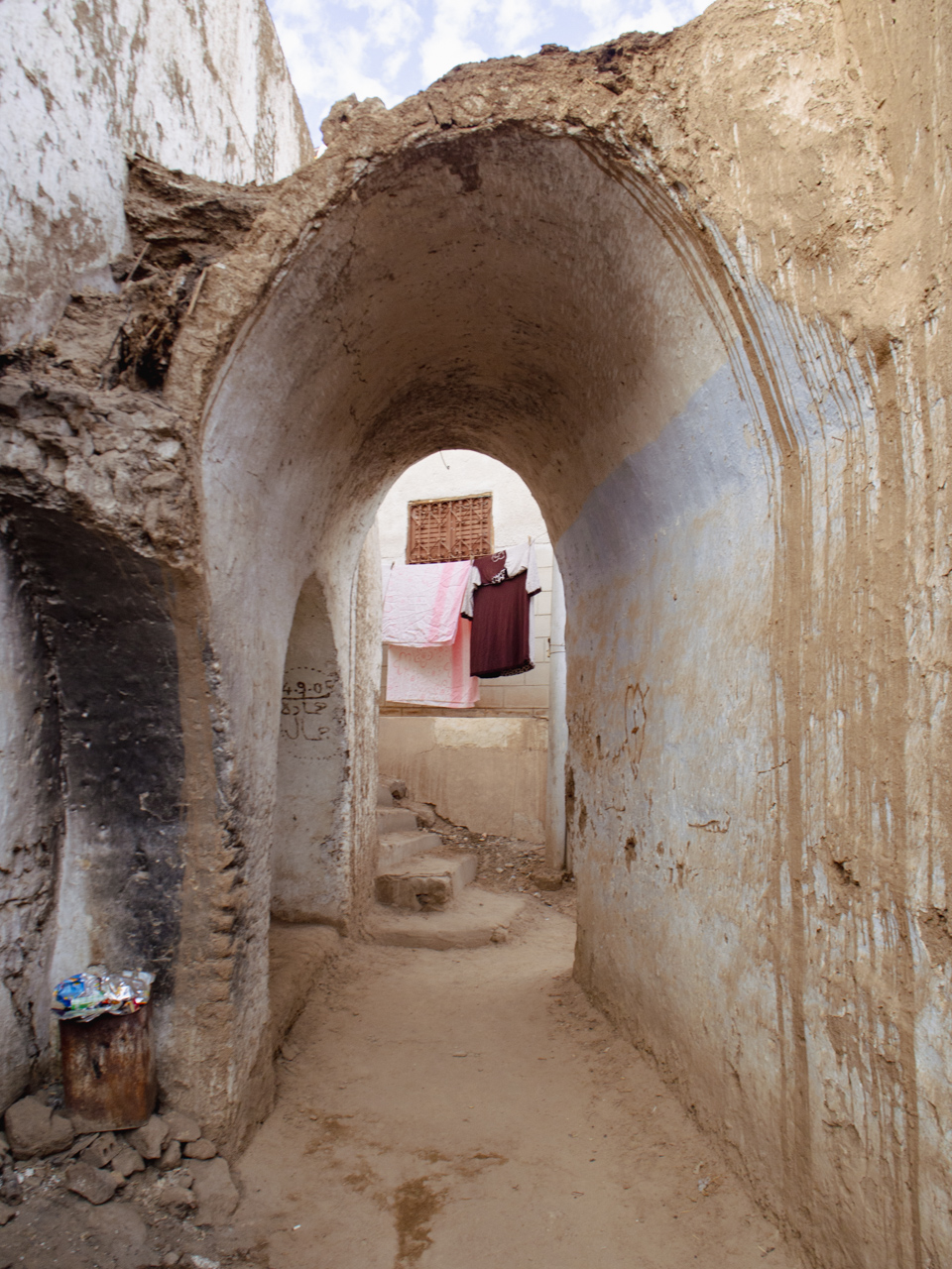 On accoste auprès d’un village nubien au pied de la dune et on grimpe au milieu des ruines.