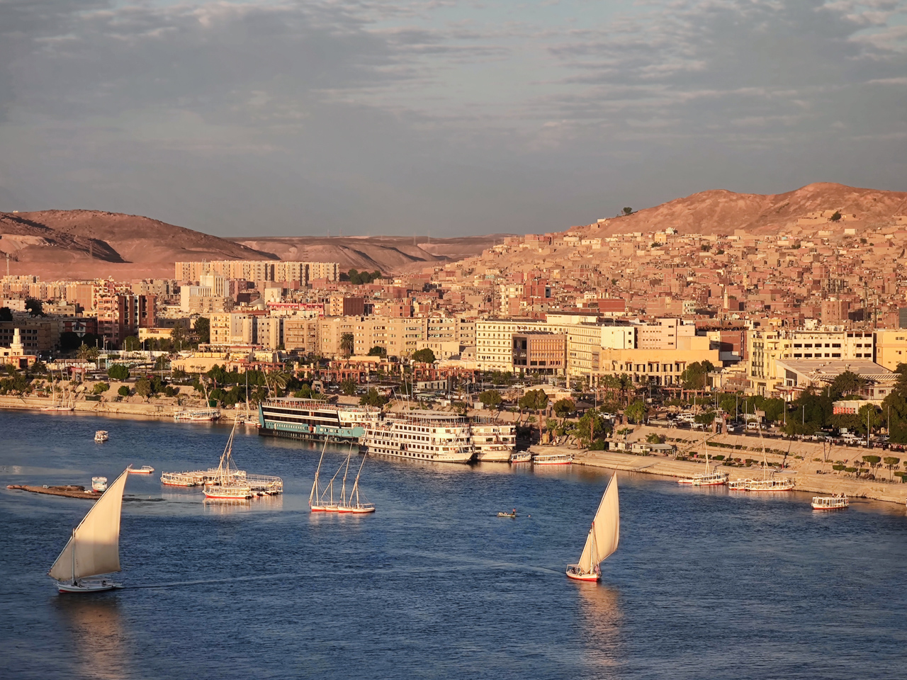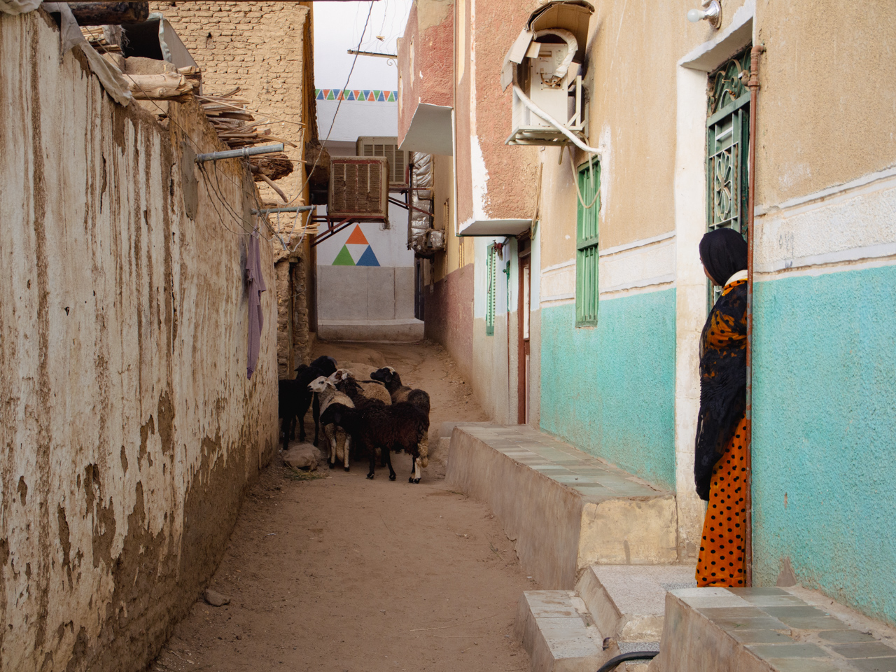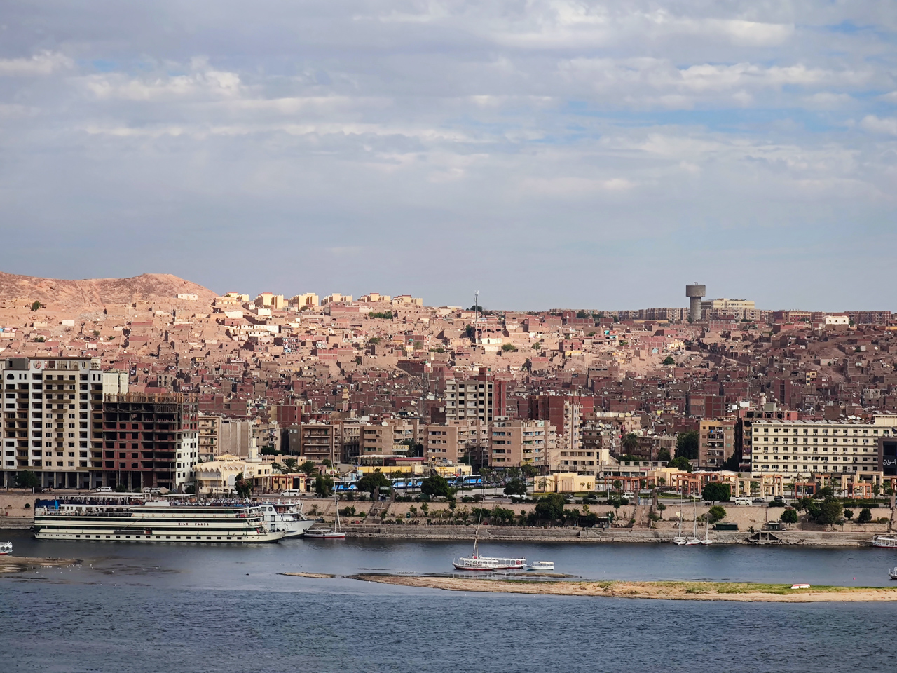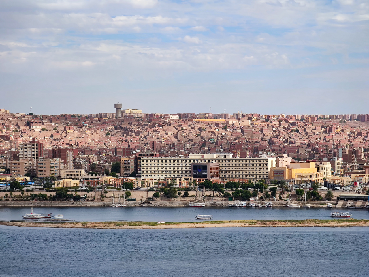 Le soleil est parfois obstrué par les nombreux nuages aujourd’hui, ce qui donne des teintes plus ou moins sombres aux immeubles d’Assouan.