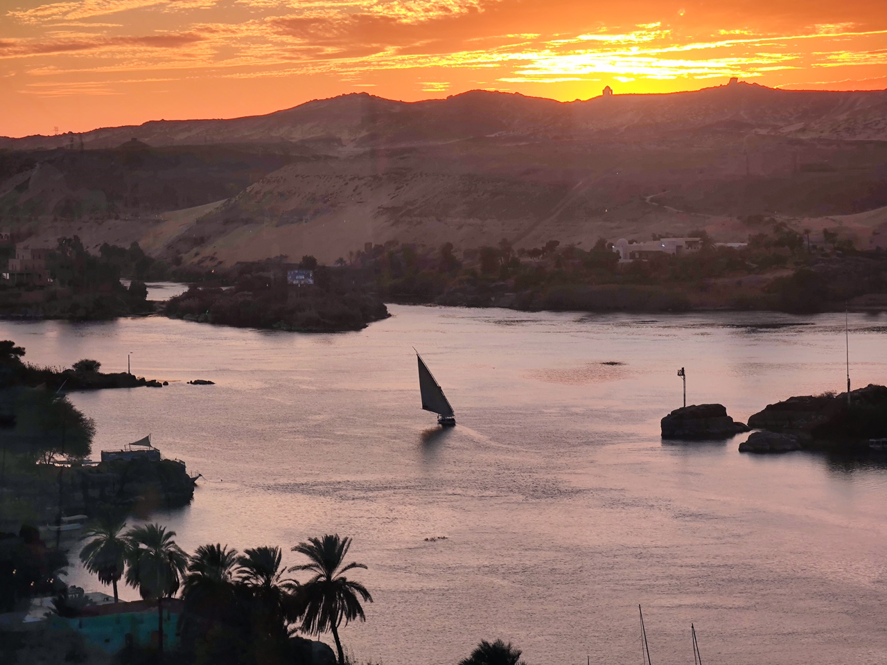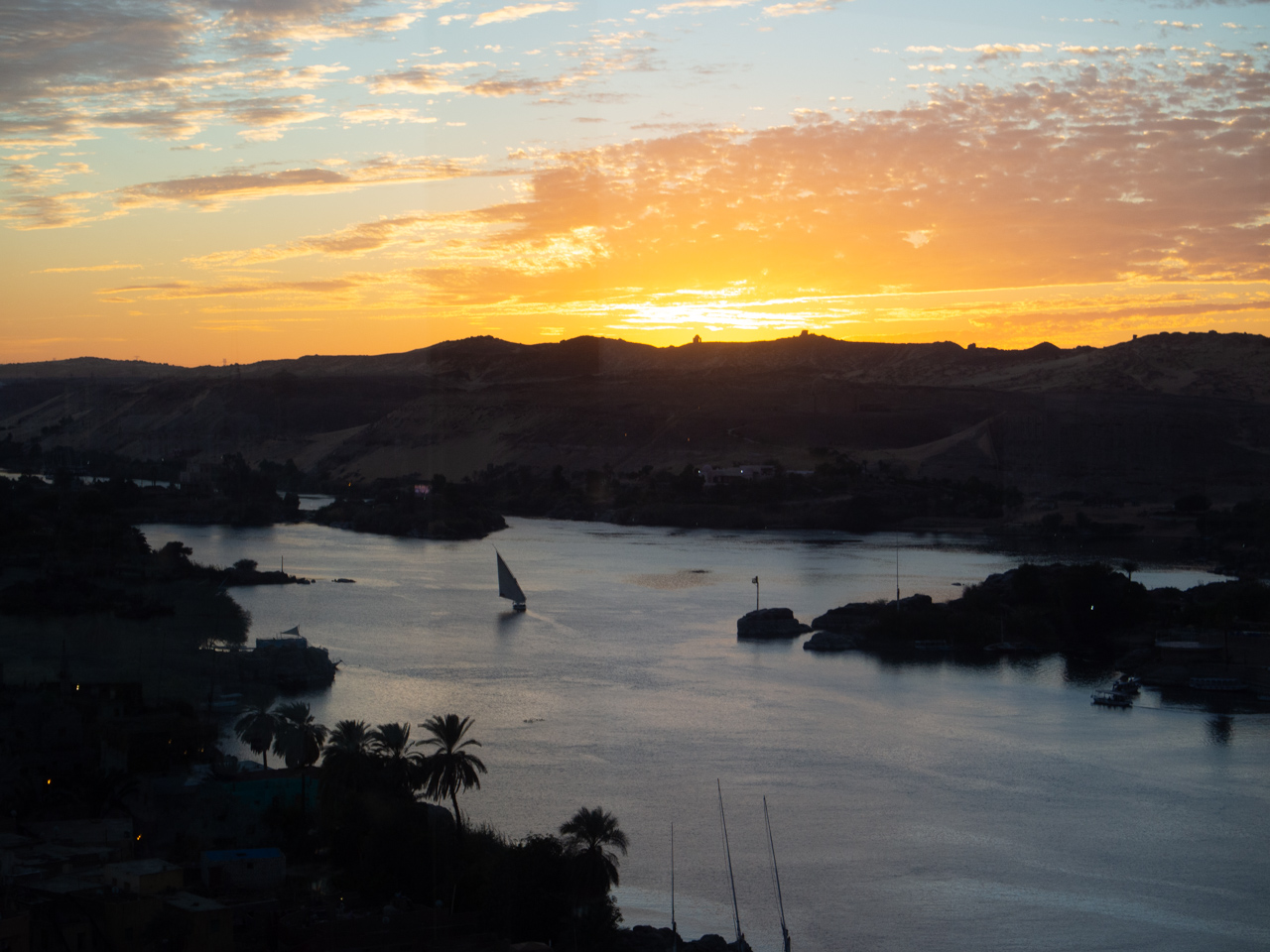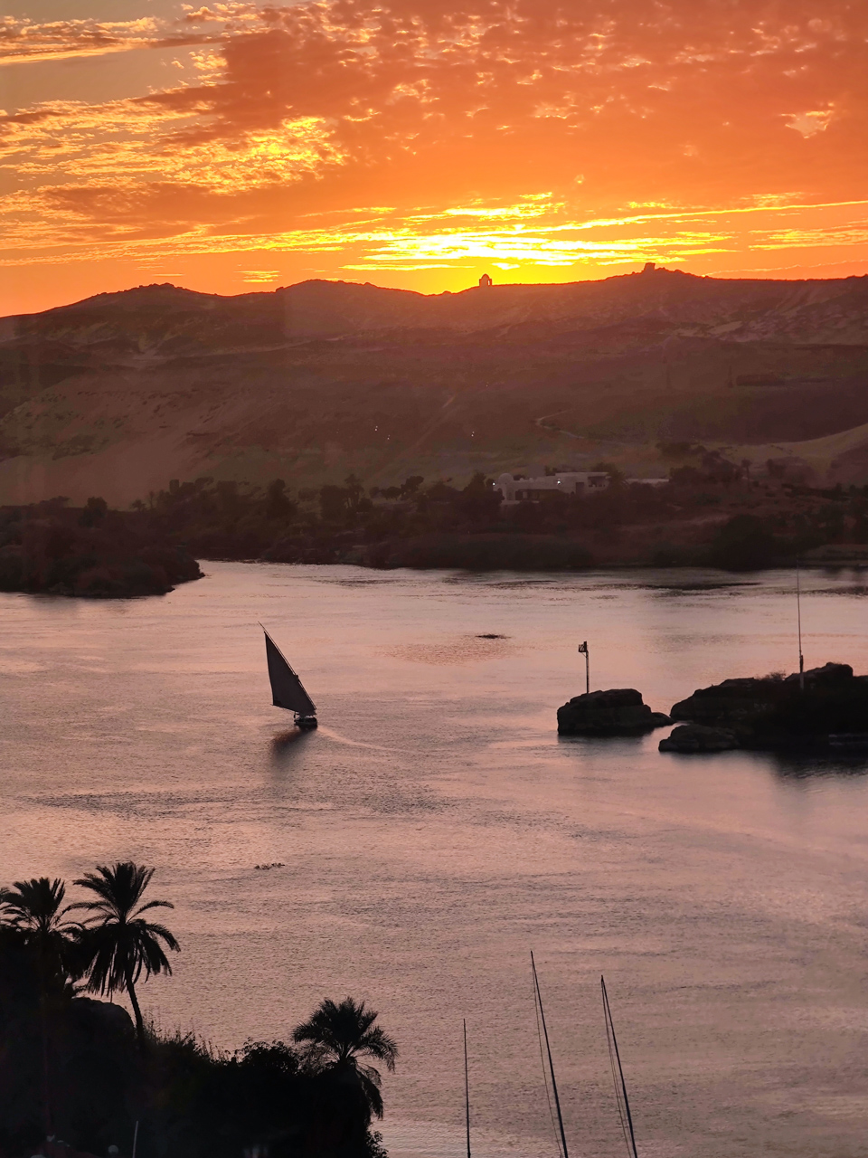 C’est vraiment l’image que j’avais du Nil dans ma tête avant de venir, une felouque qui vogue au couchant sous un ciel aux couleurs intenses.