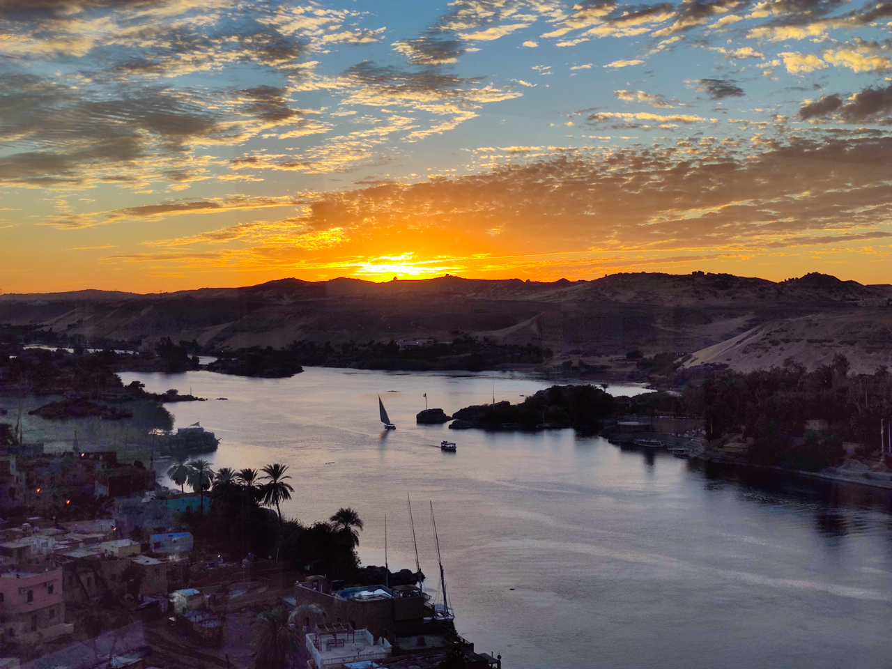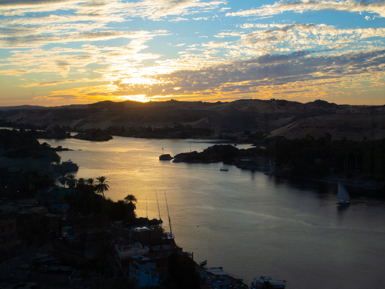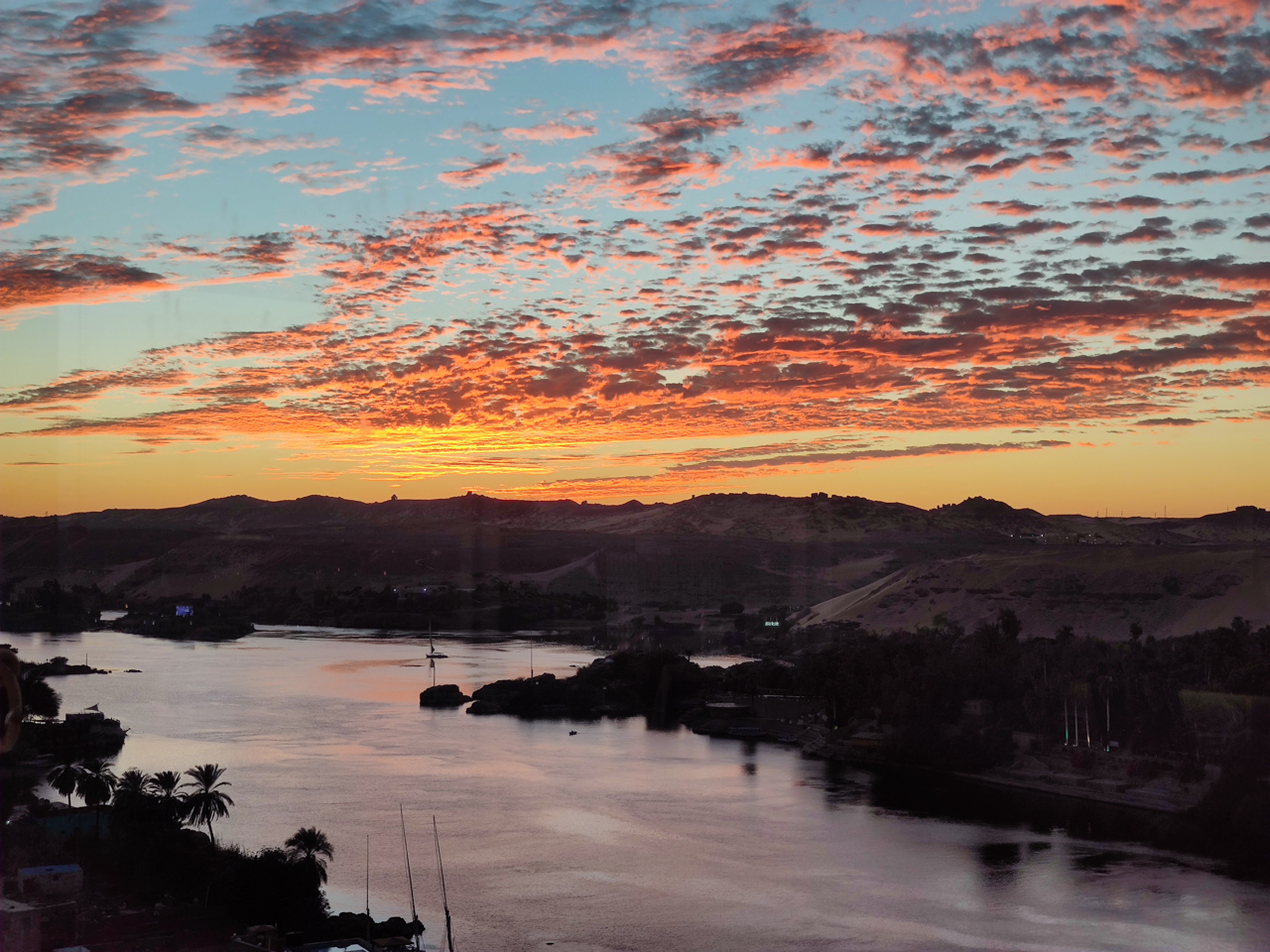 C’est vraiment l’image que j’avais du Nil dans ma tête avant de venir, une felouque qui vogue au couchant sous un ciel aux couleurs intenses.