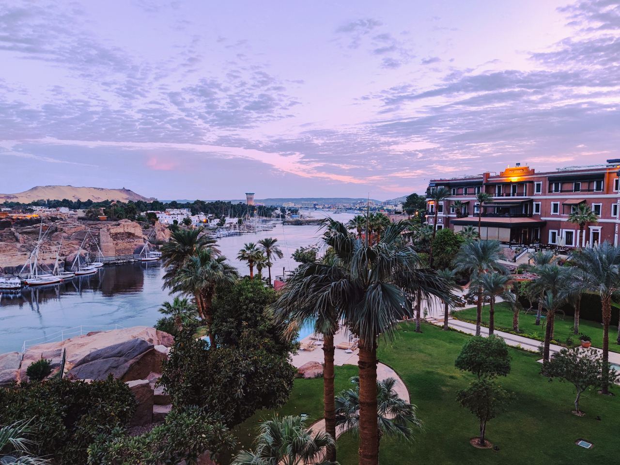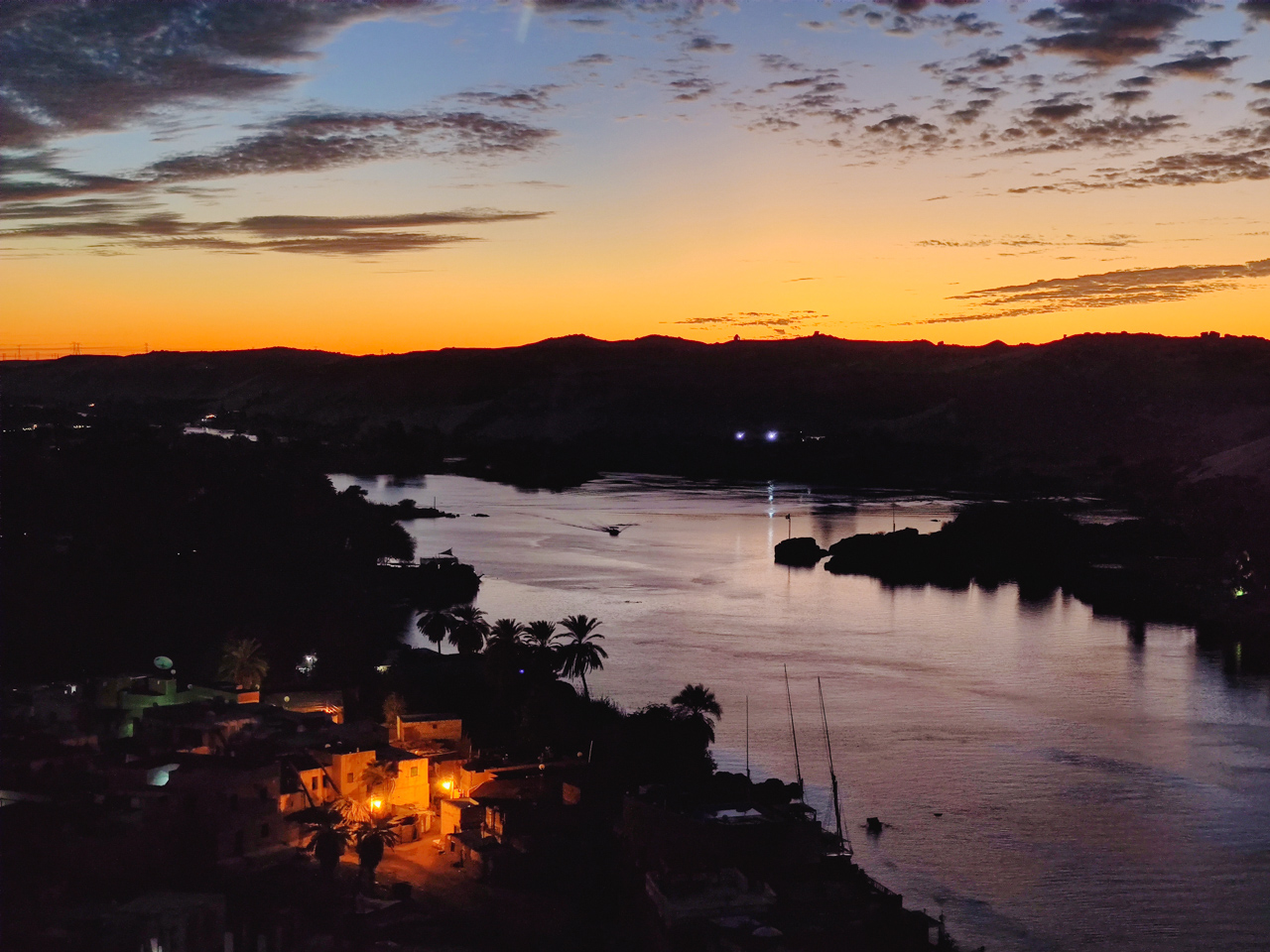 Bien que cette tour ne s’intègre pas vraiment idéalement dans le paysage, elle nous donne un parfait point de vue pour admirer les couleurs du soir sur le Nil. Ce soir là, nous vivrons un de nos plus beaux couchers de soleil de notre vie.