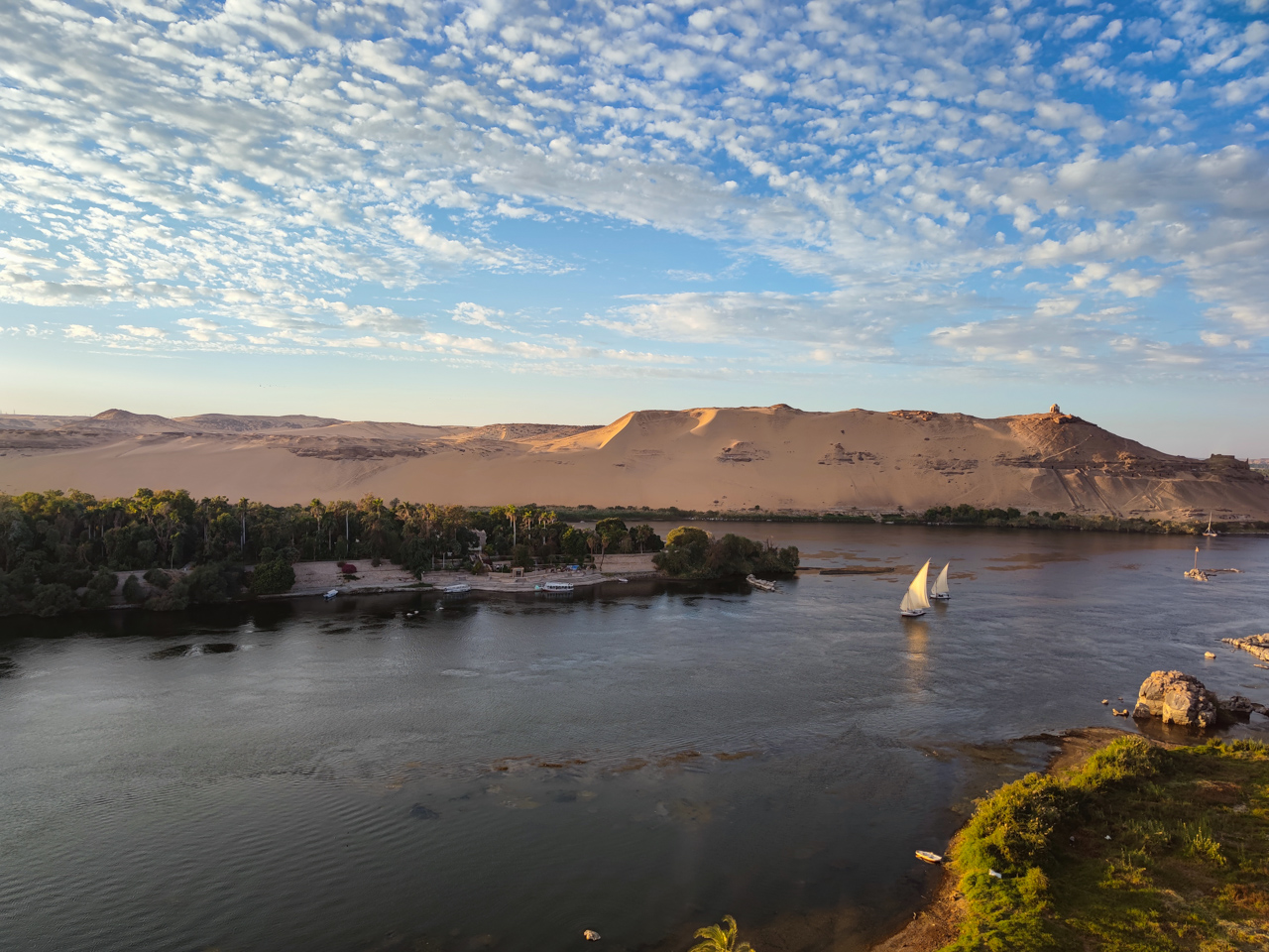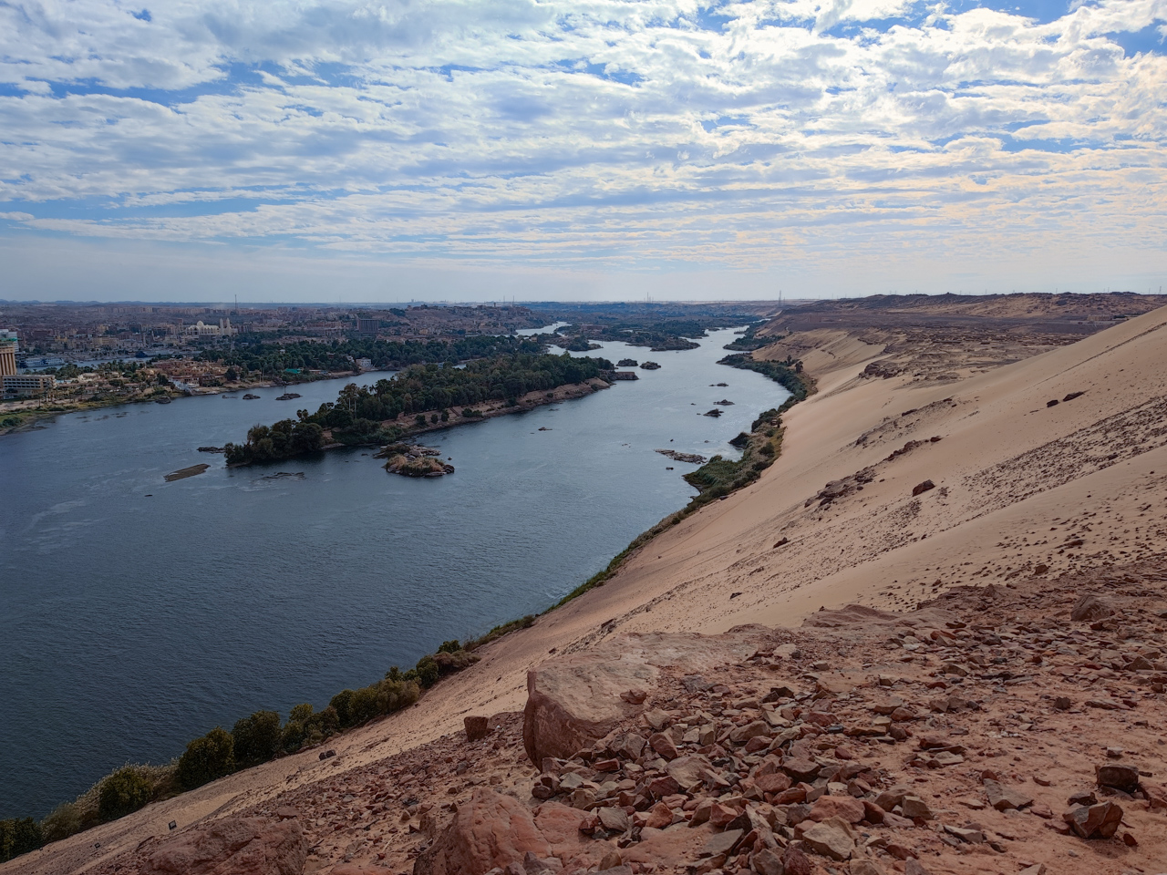 Mais le plus impressionnant reste la vue sur toute la ville et la cataracte du fleuve depuis le sommet de la dune. Alors que le désert semble buter contre le Nil, la ville est construite sur l’autre rive et semble immense.