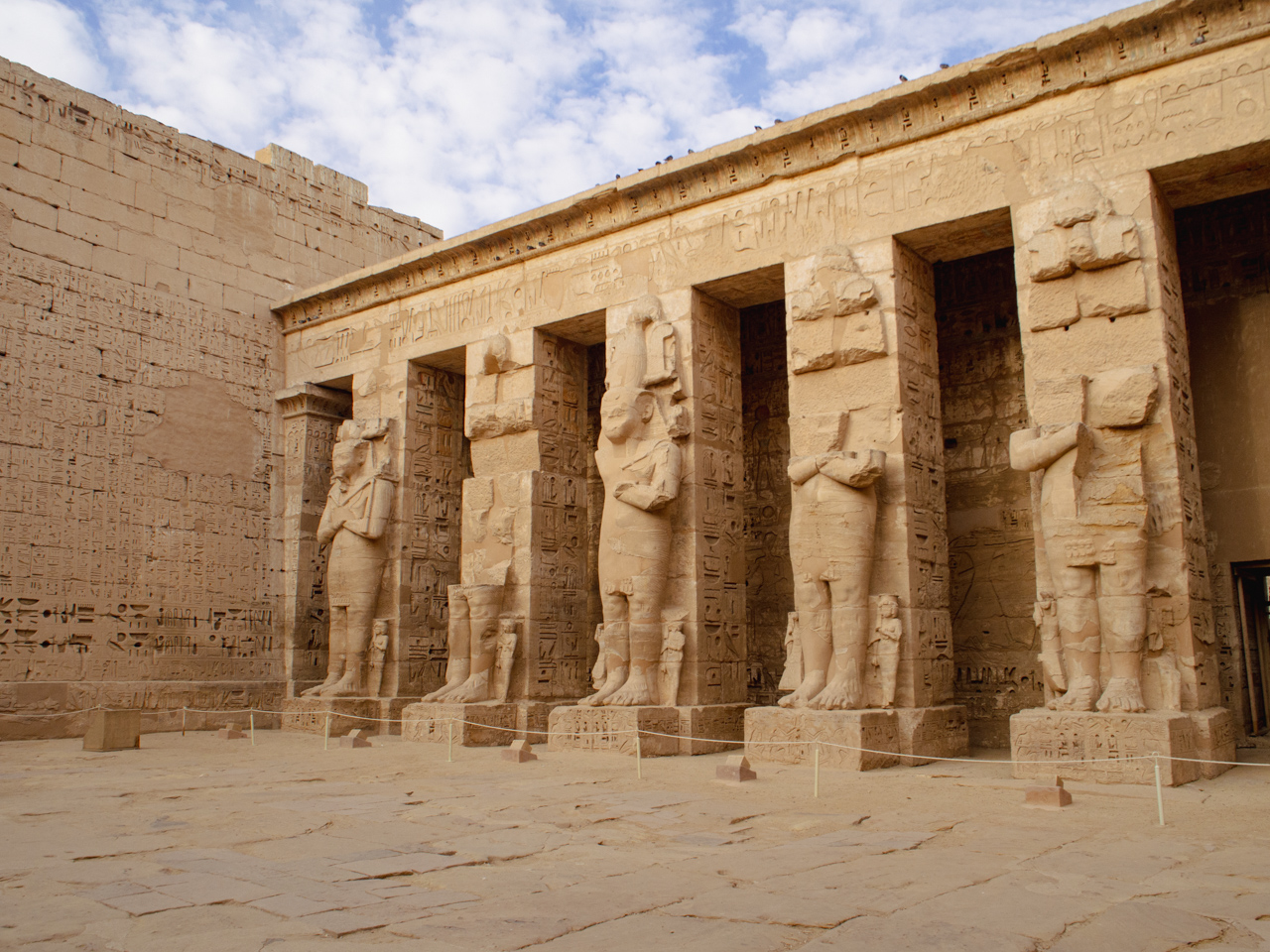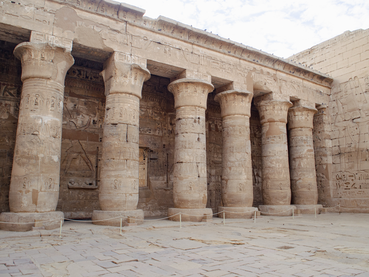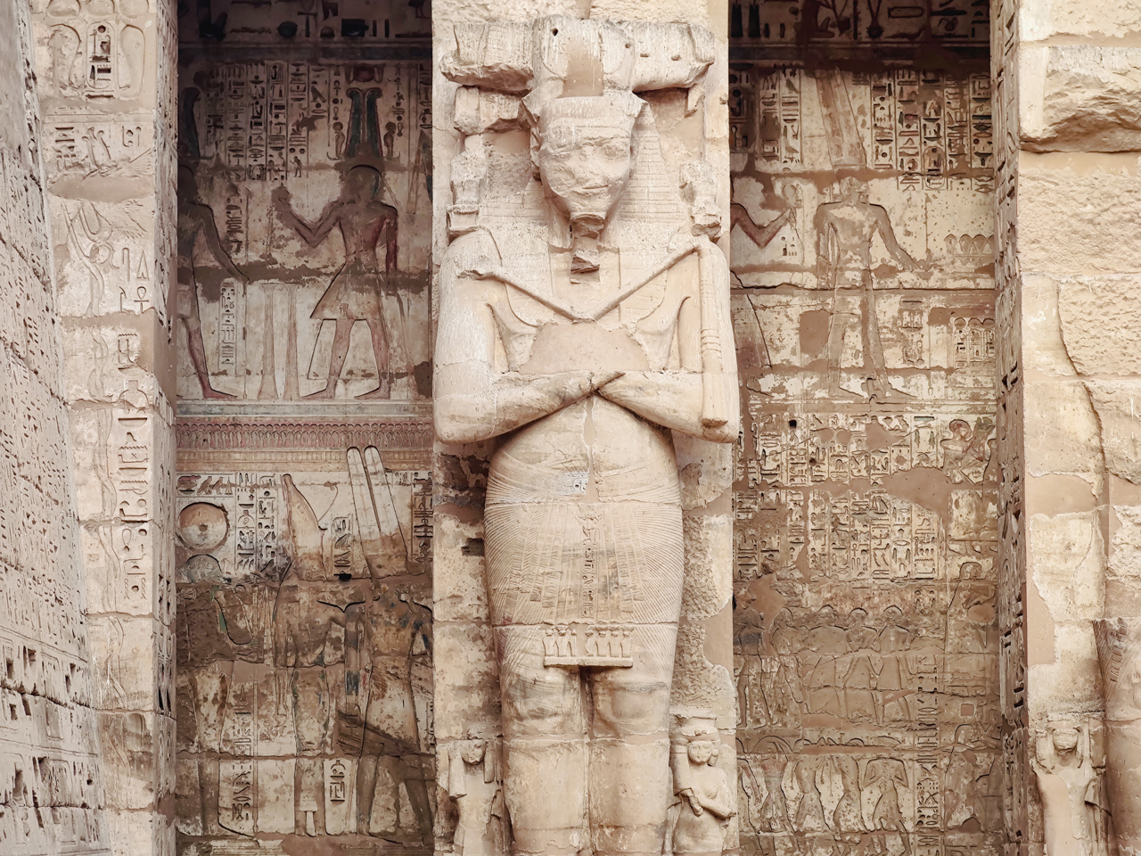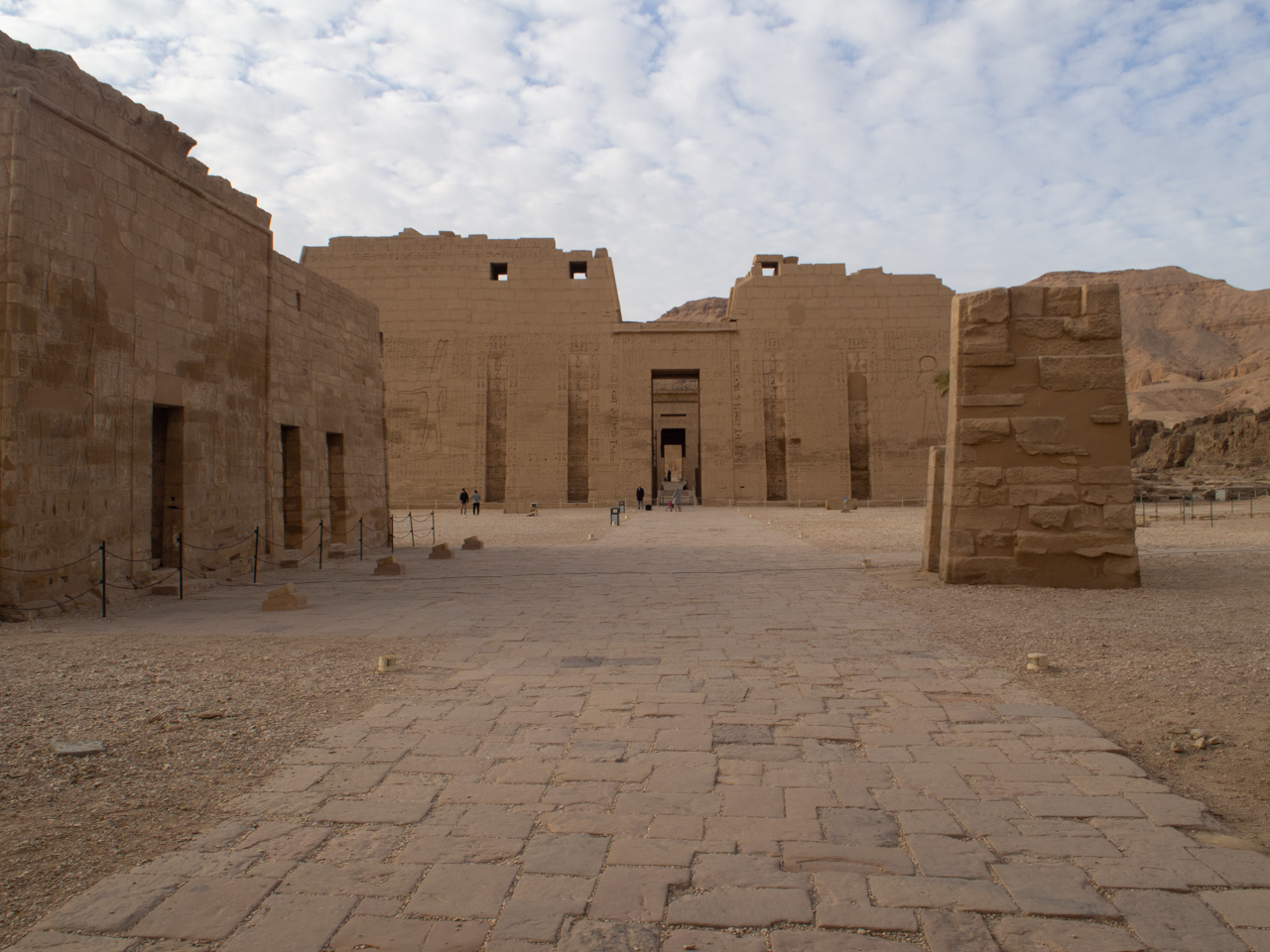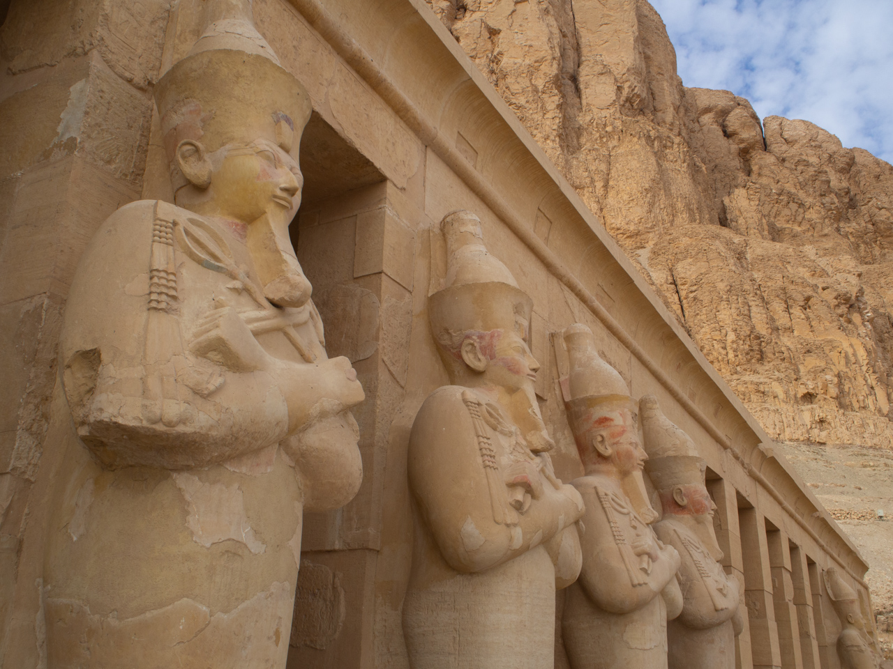 En sortant on appelle Ahmed notre chauffeur pour le prévenir que l’on revient au parking et que l’on a été beaucoup plus long que prévu. Il nous récupère et propose de visiter le temple d’Hatchepsout, un des symboles de Louxor, édifié au pied de la falaise. Le temple est construit en trois terrasses,.
