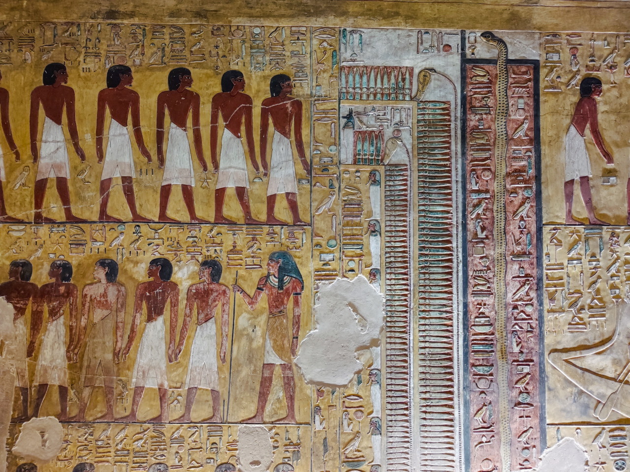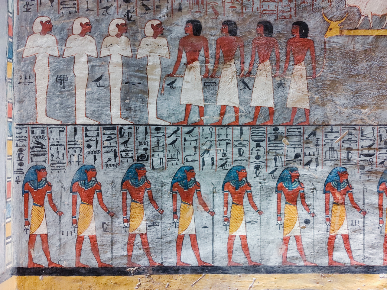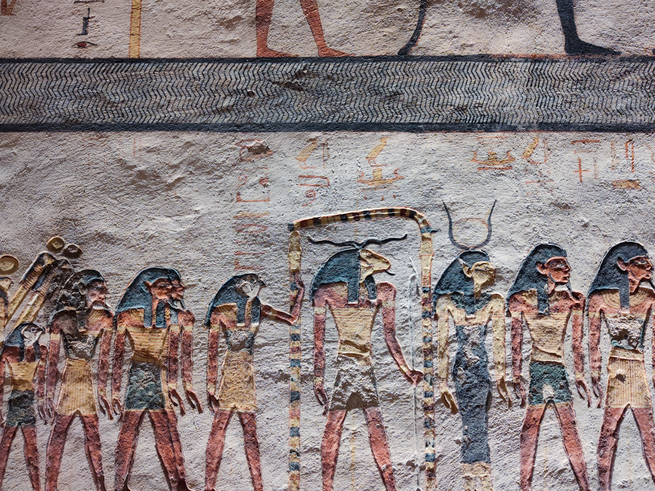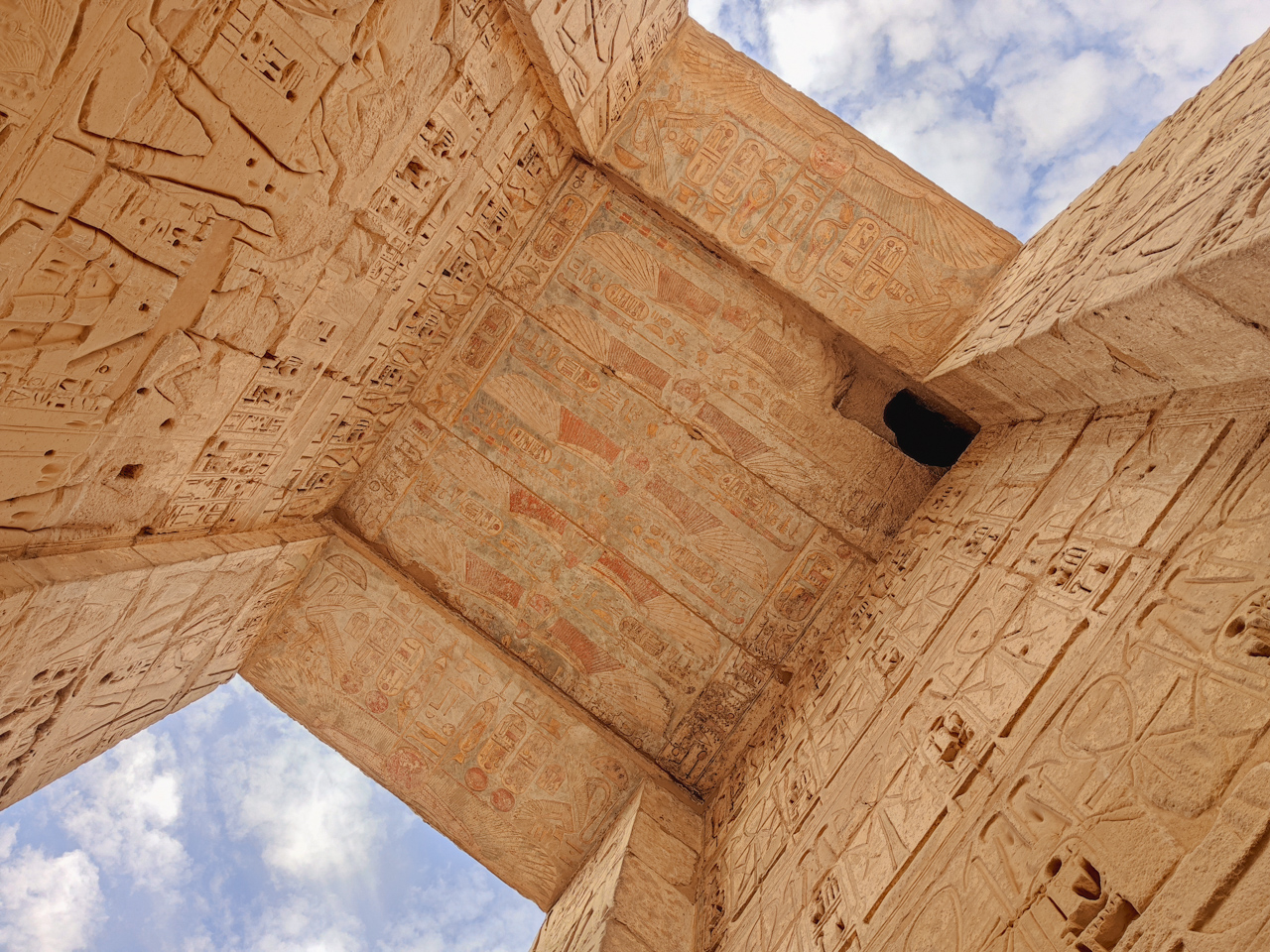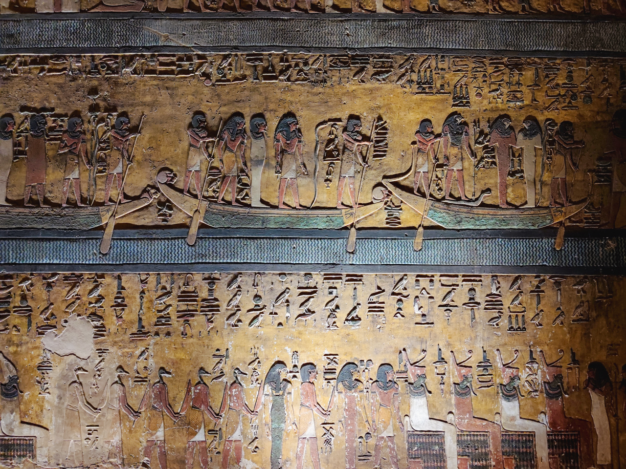 On ne veut pas partir, on a envie d’en voir plus après la visite libre de trois tombes. On retourne au guichet pour racheter une entrée pour la tombe de Seti Ier, environ 50 euro par personne pour une seule tombe, mais on se dit que l’on a peu de chances de revenir donc on veut voir la plus belle. Il n’y a personne dans cette tombe, qui est très profonde, avec une profusion de couleurs et de détails.