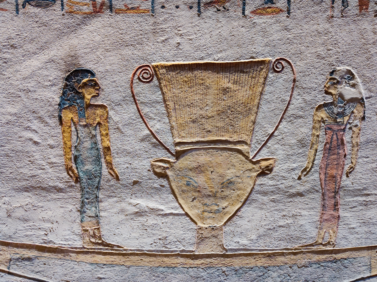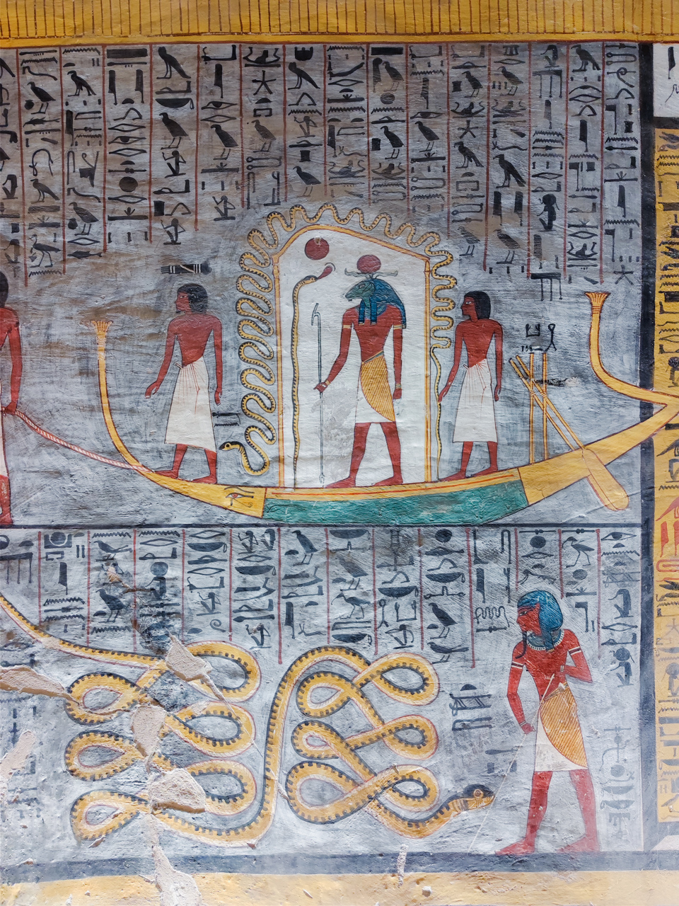 Enfin sur cette illustration, Pharaon fait face à son jugement dernier. C’est le thème le plus récurrent dans les tombes royales.