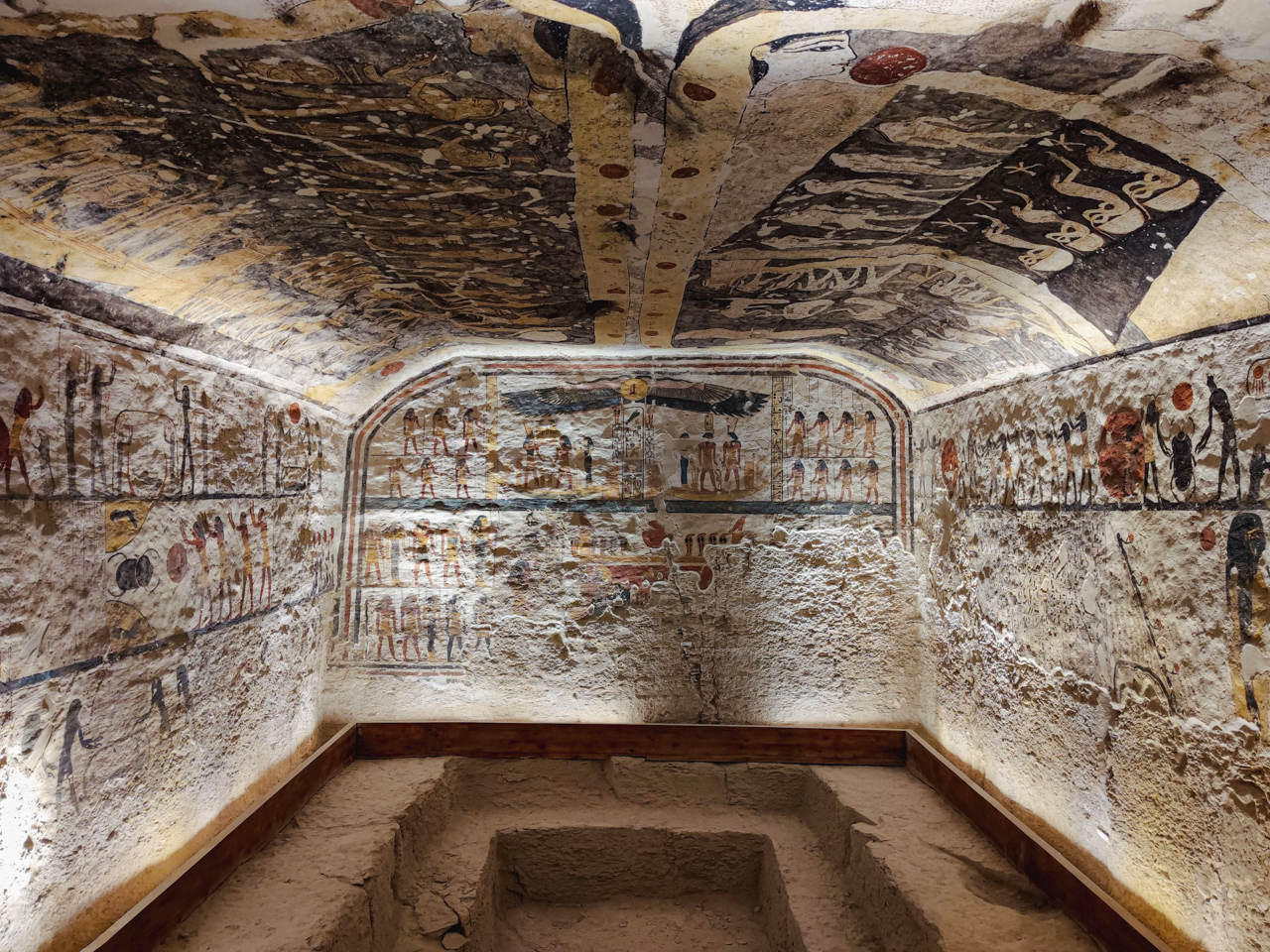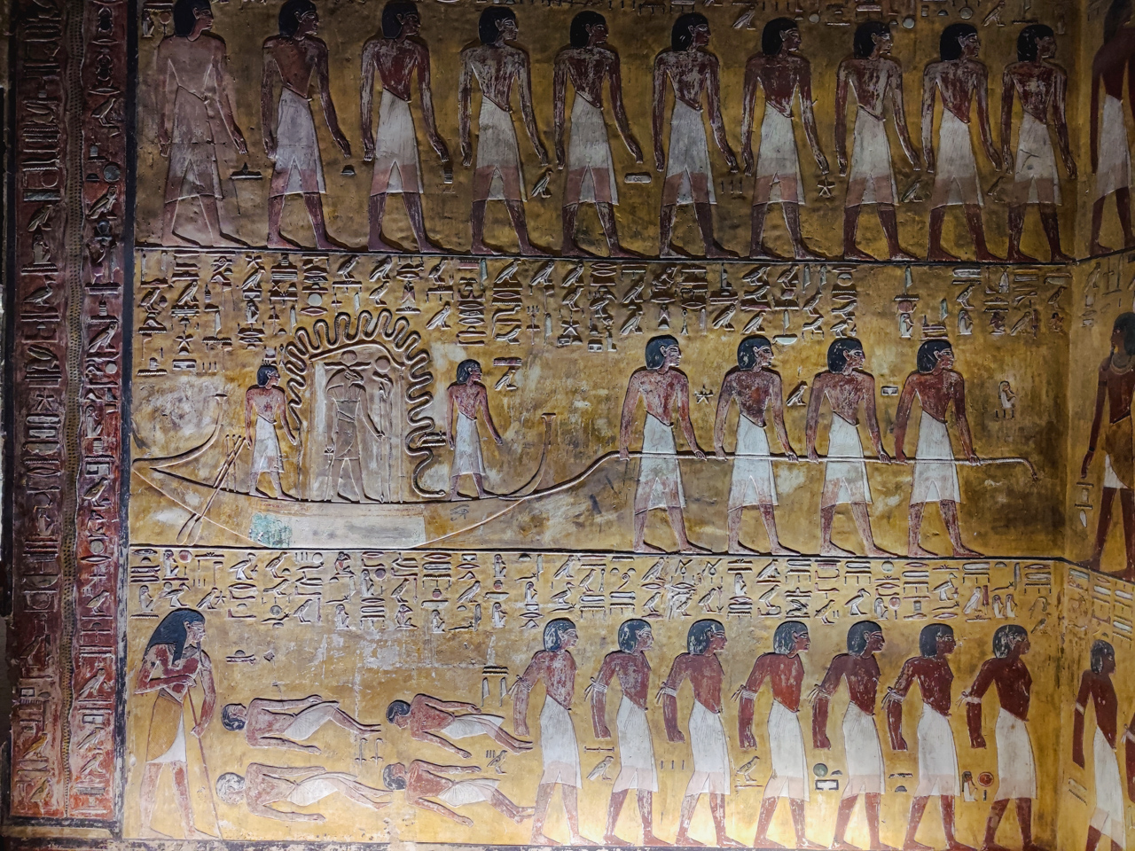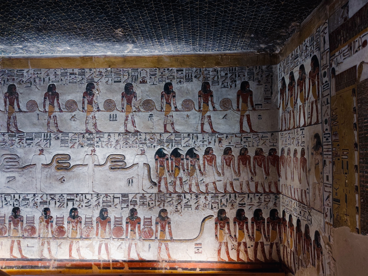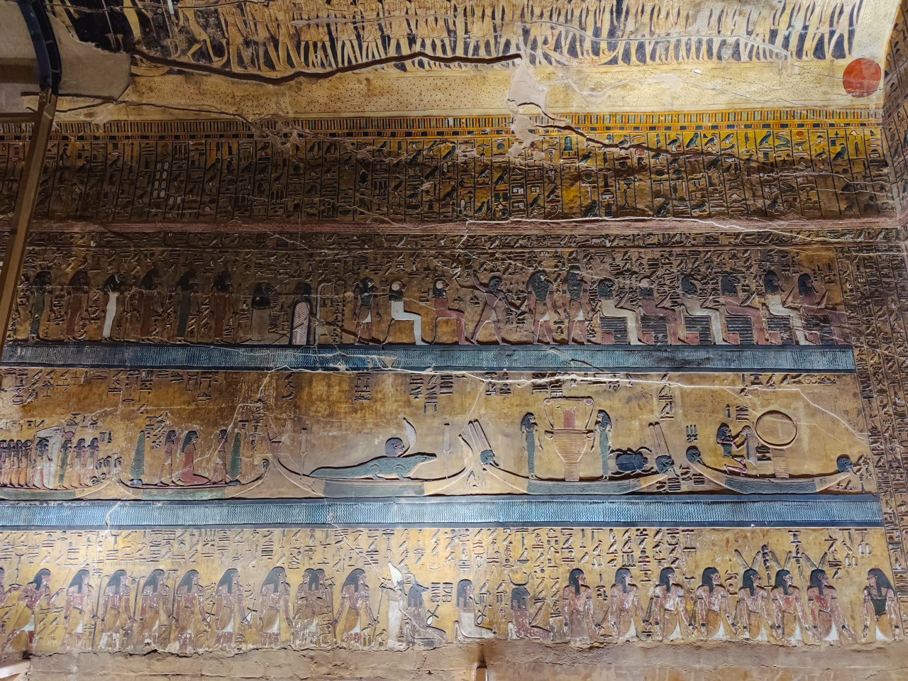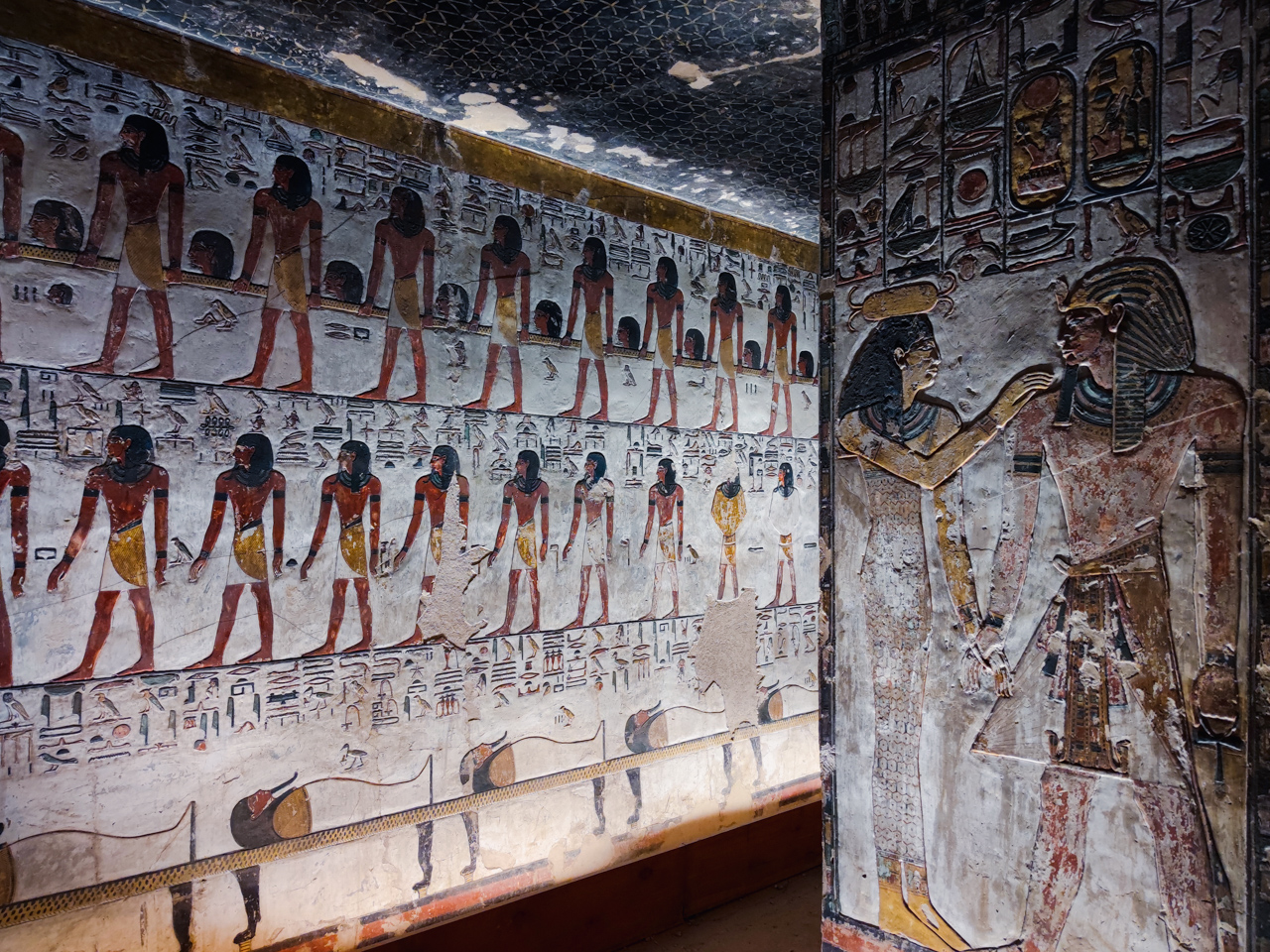 On commence par la première tombe qui est ouverte, la visite commence en douceur avec cette galerie creusée et peinte de nombreuses scènes mortuaires.
