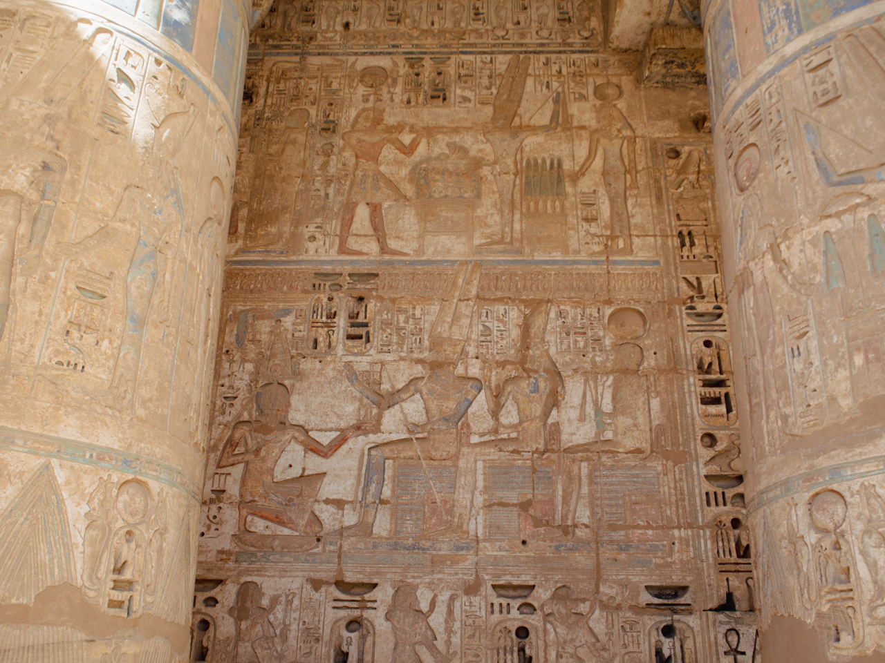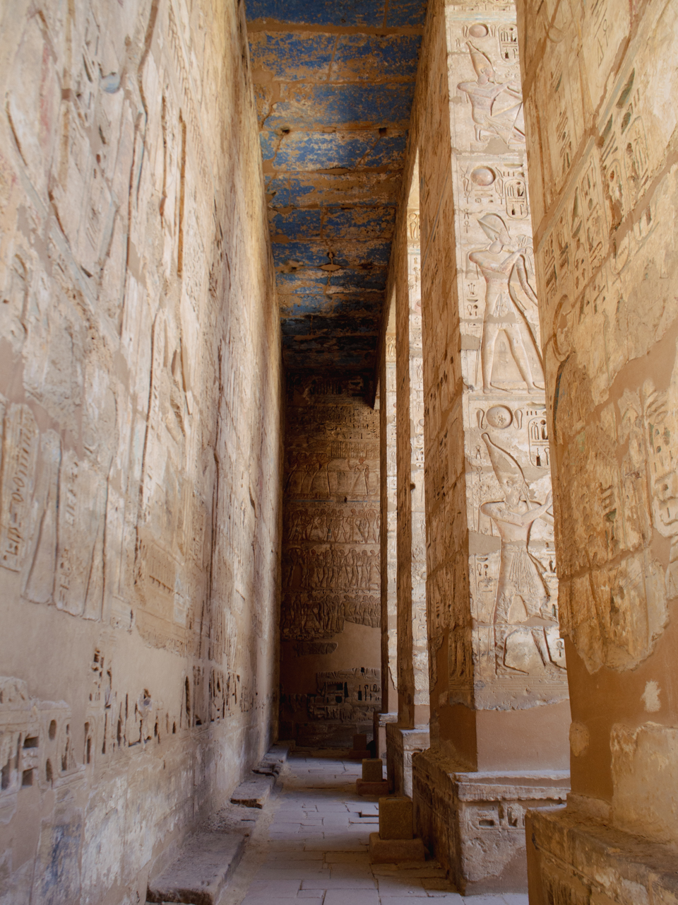 De toutes temples de la Haute Egypte connus et visités le long du Nil, nous trouvons que Habu est celui qui a le plus de couleurs sur les fresques, c'est pour cela que c'est notre préféré, devant ceux de Aswan ou le long de la remontée de la vallée du Nil entre Aswan et Louxor.