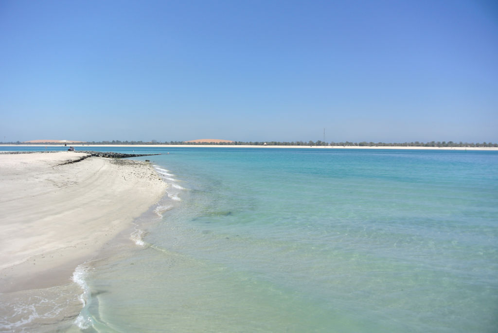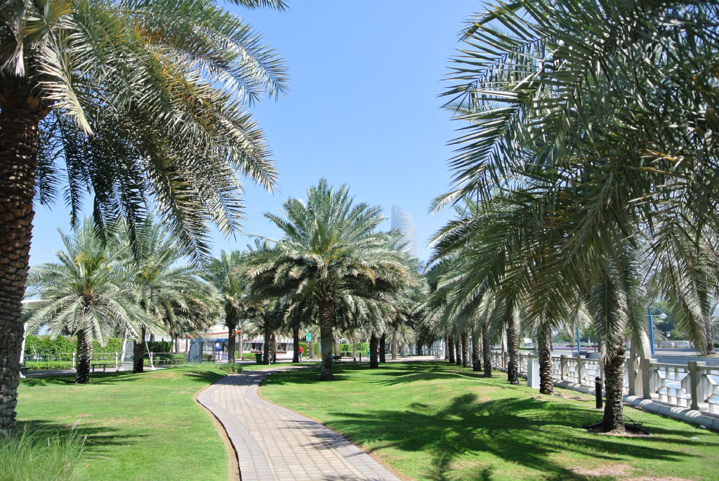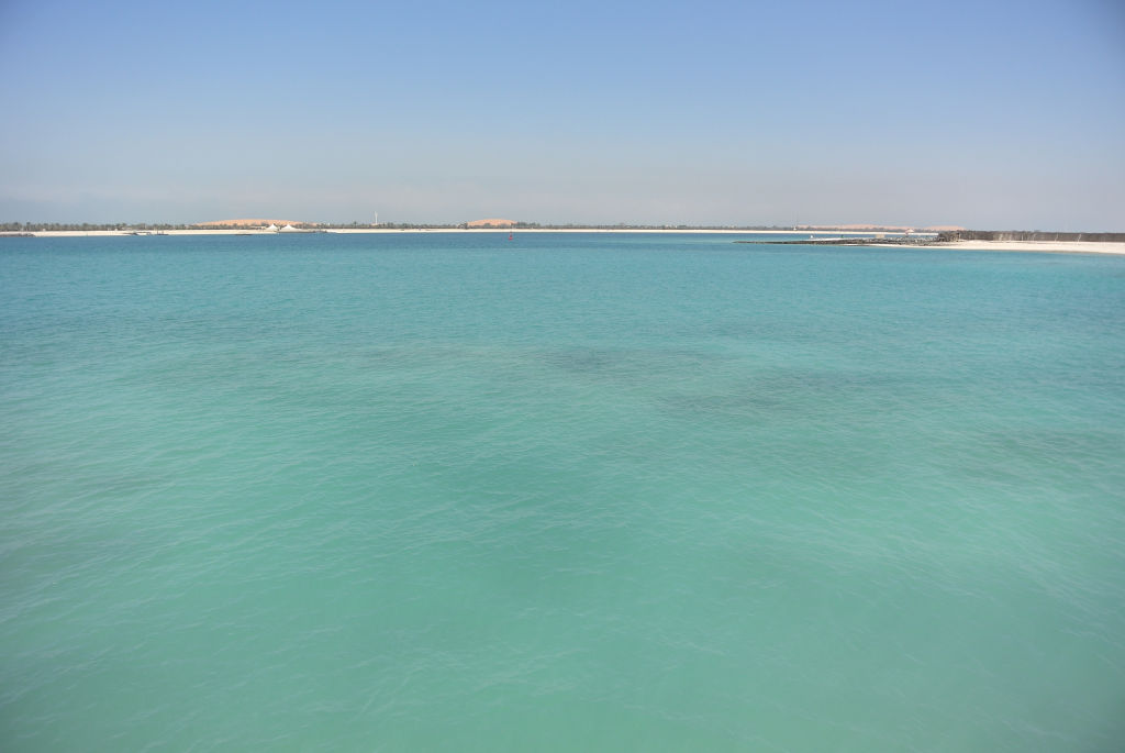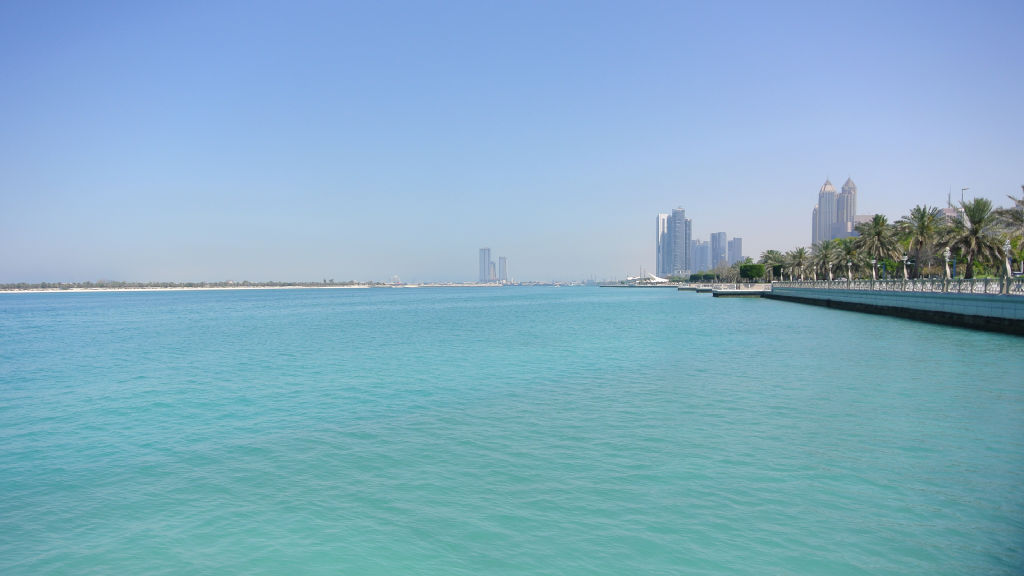 Magnifique lagon d'Abu Dhabi que l'on découvre depuis les points de vue ombragés de la promenade.