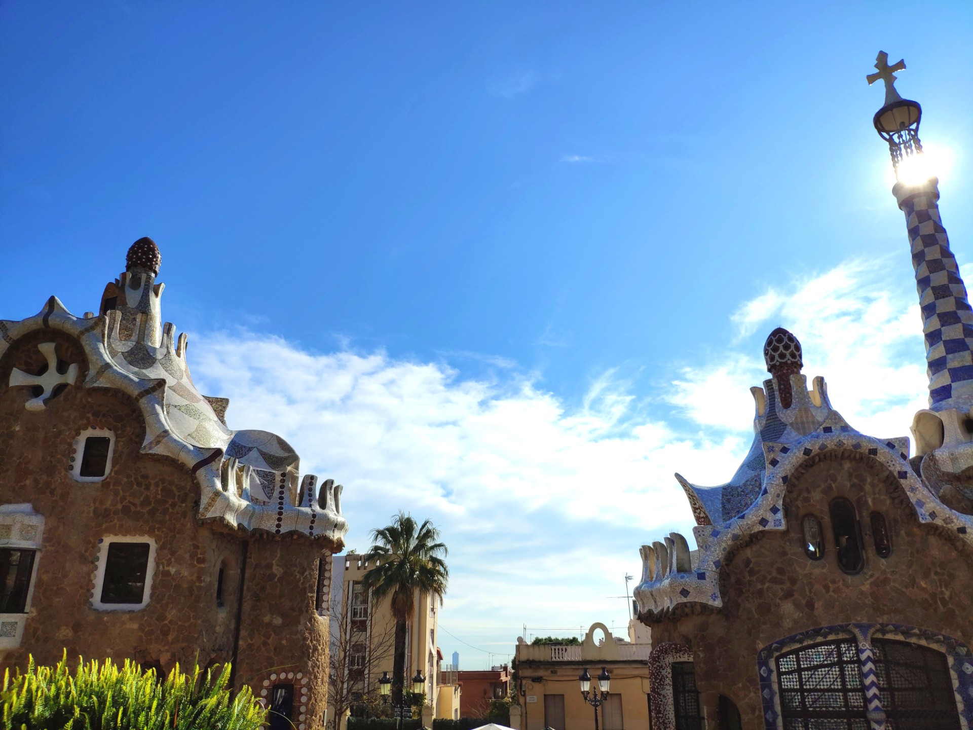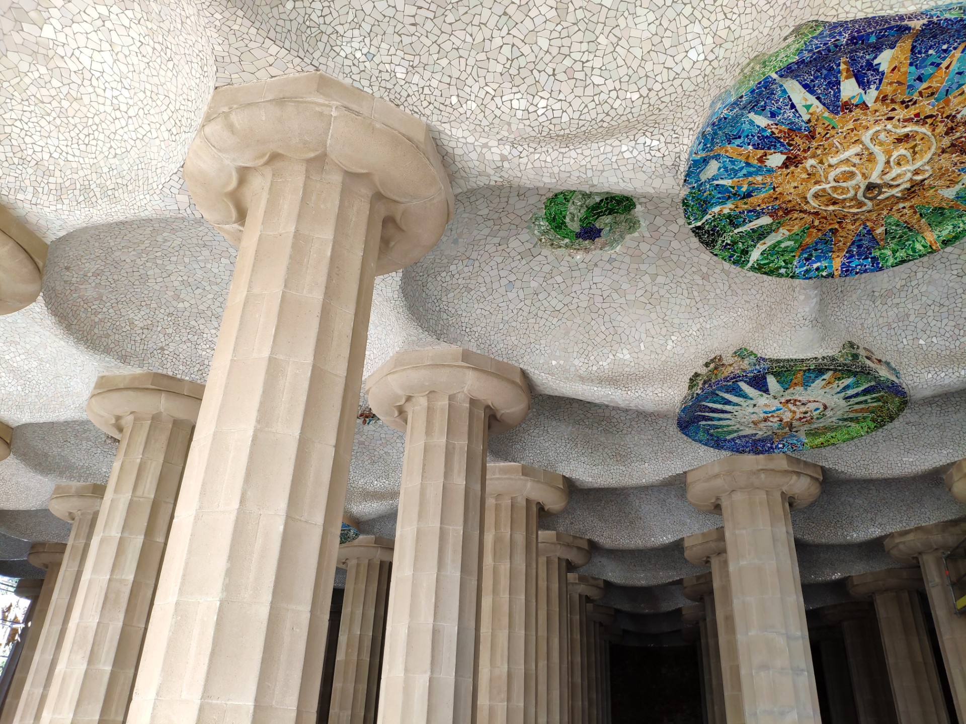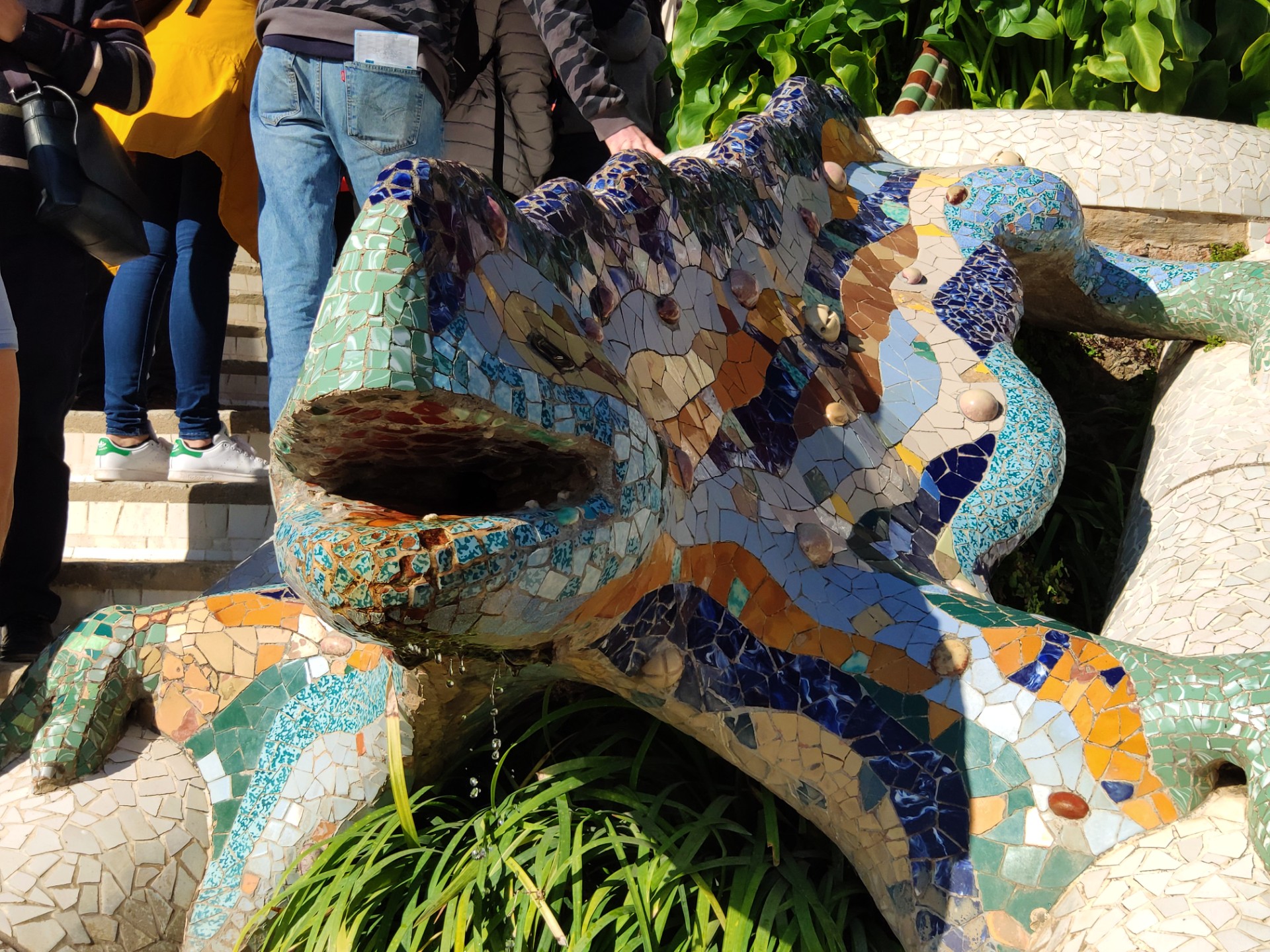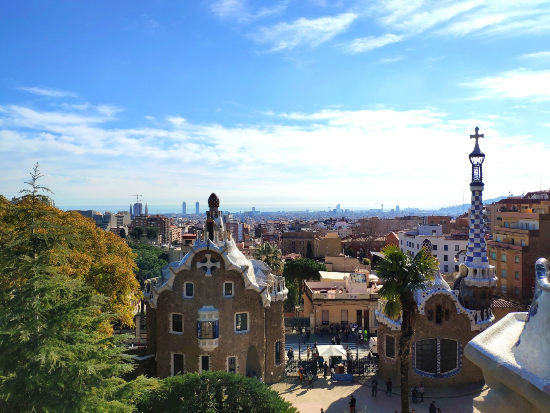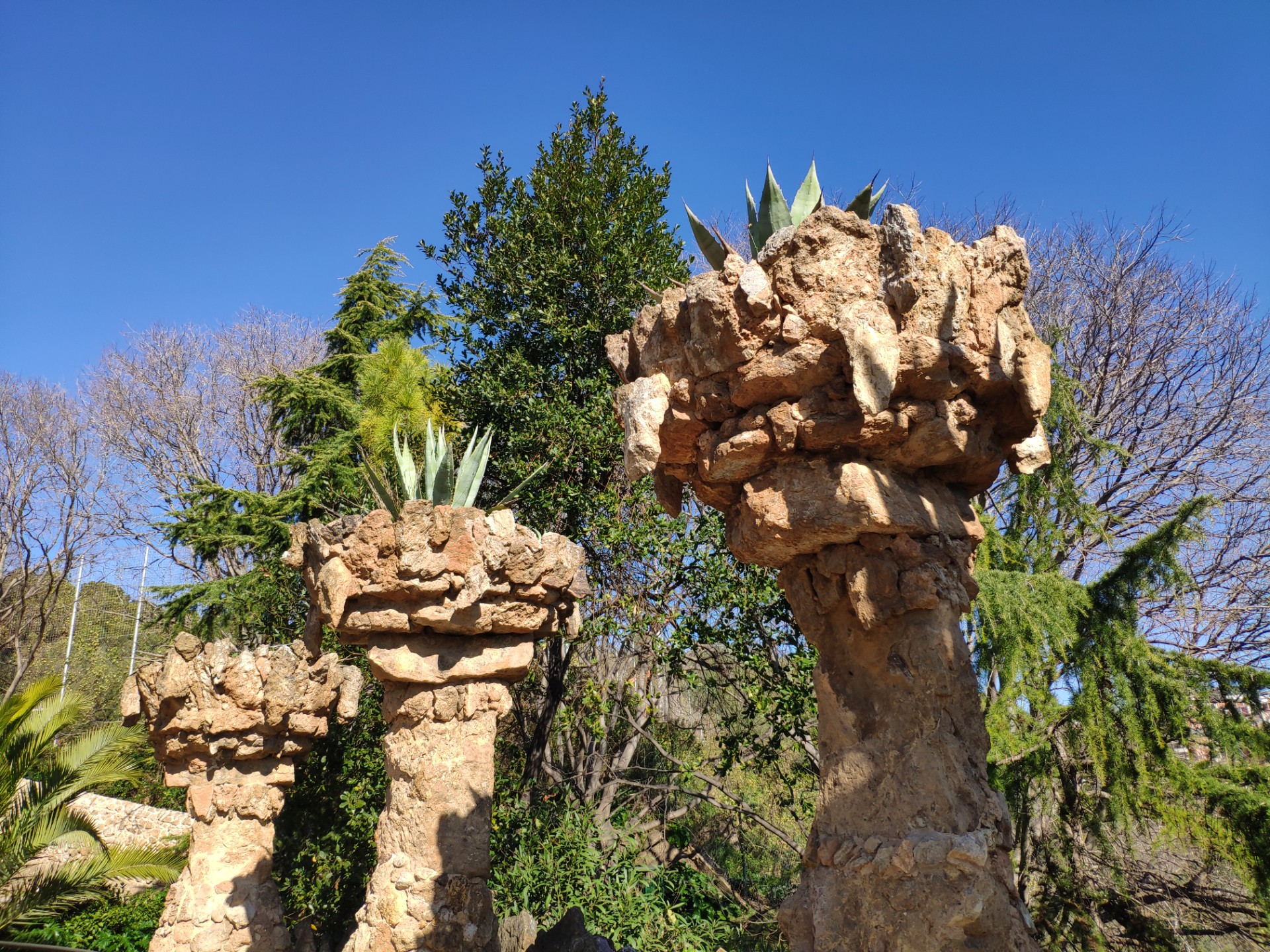 Pour cette journée, nous avons réservé en avance les tickets d’entrée pour les monuments de la ville, en effet nous avions lu un peu partout qu’il est conseillé de réserver son horaire de visite en avance pour être sûr d’avoir de la place et éviter de faire la queue. Comme nous ne sommes ici que pour deux jours, on s’est dit qu’il fallait que l’on optimise le temps, quelque chose que l’on a pas l’habitude de faire ne voyage, mais il faut bien s’adapter aux règles qui organise le tourisme de masse dont nous sommes des éléments nous aussi. Comme nous avons choisi dans les multiples packages disponibles celui qui inclus la Sagrada Familia, le parc Guel, il était possible d’avoir aussi l’accès au bus touristique qui fait le tour de la ville. Alors je n’avais pour ma part jamais été dans ce type de bus, mais bon on se dit que pourquoi pas jouer les touristes à fond et utiliser ce billet aujourd’hui. Ce matin, nous allons d’abord visiter le Parc Guel, ça tombe bien car le bus touristique a un arrêt juste devant notre hôtel et un autre arrêt au parc. Nous traversons la ville et avons un aperçu des différents monuments depuis les fenêtres du bus