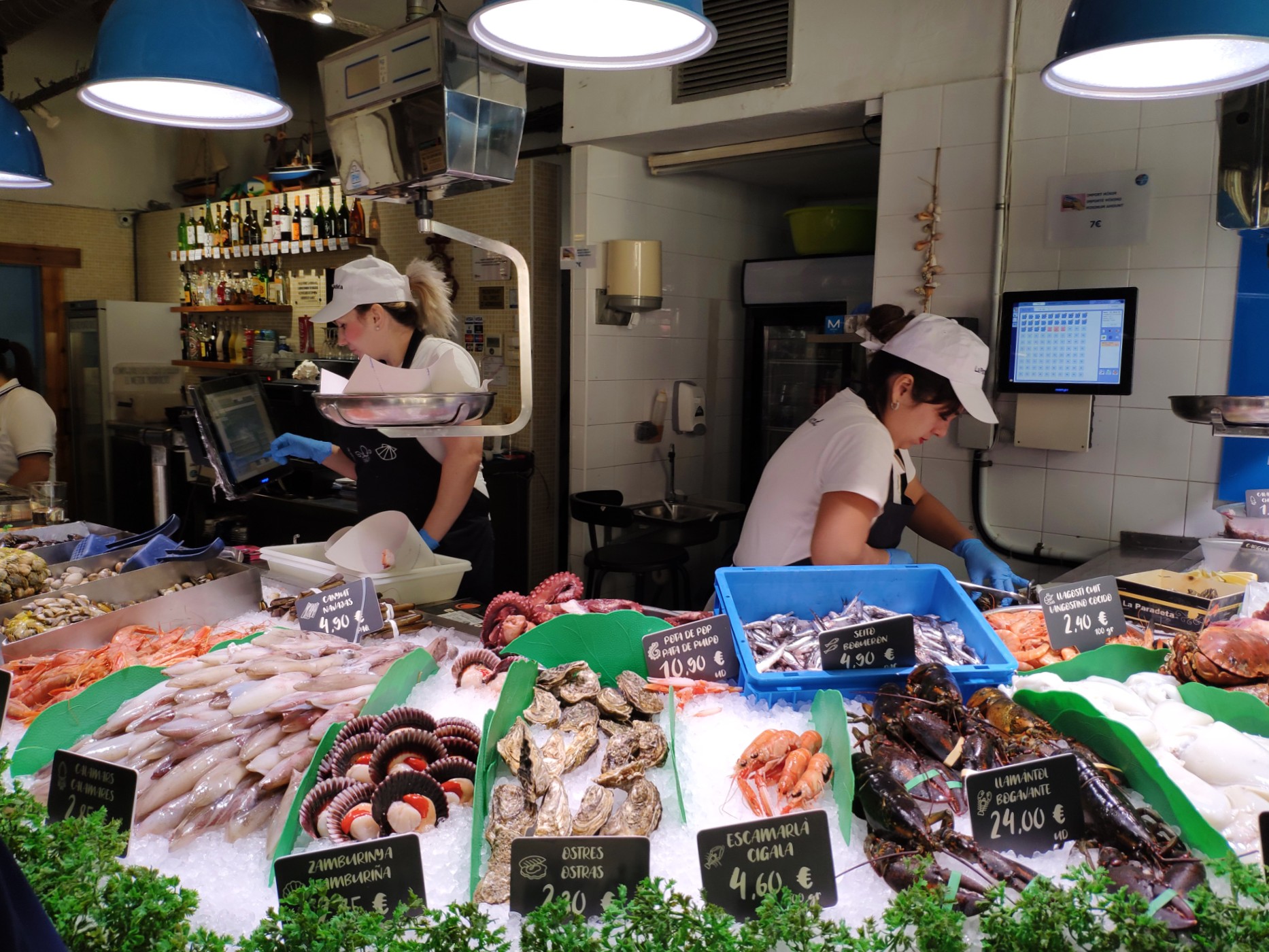 On redescend en taxi du Parc Guel pour faire une pause déjeuner à proximité de la Sagrada Familia dans un restaurant spécialiste des fruits de mer excellent.