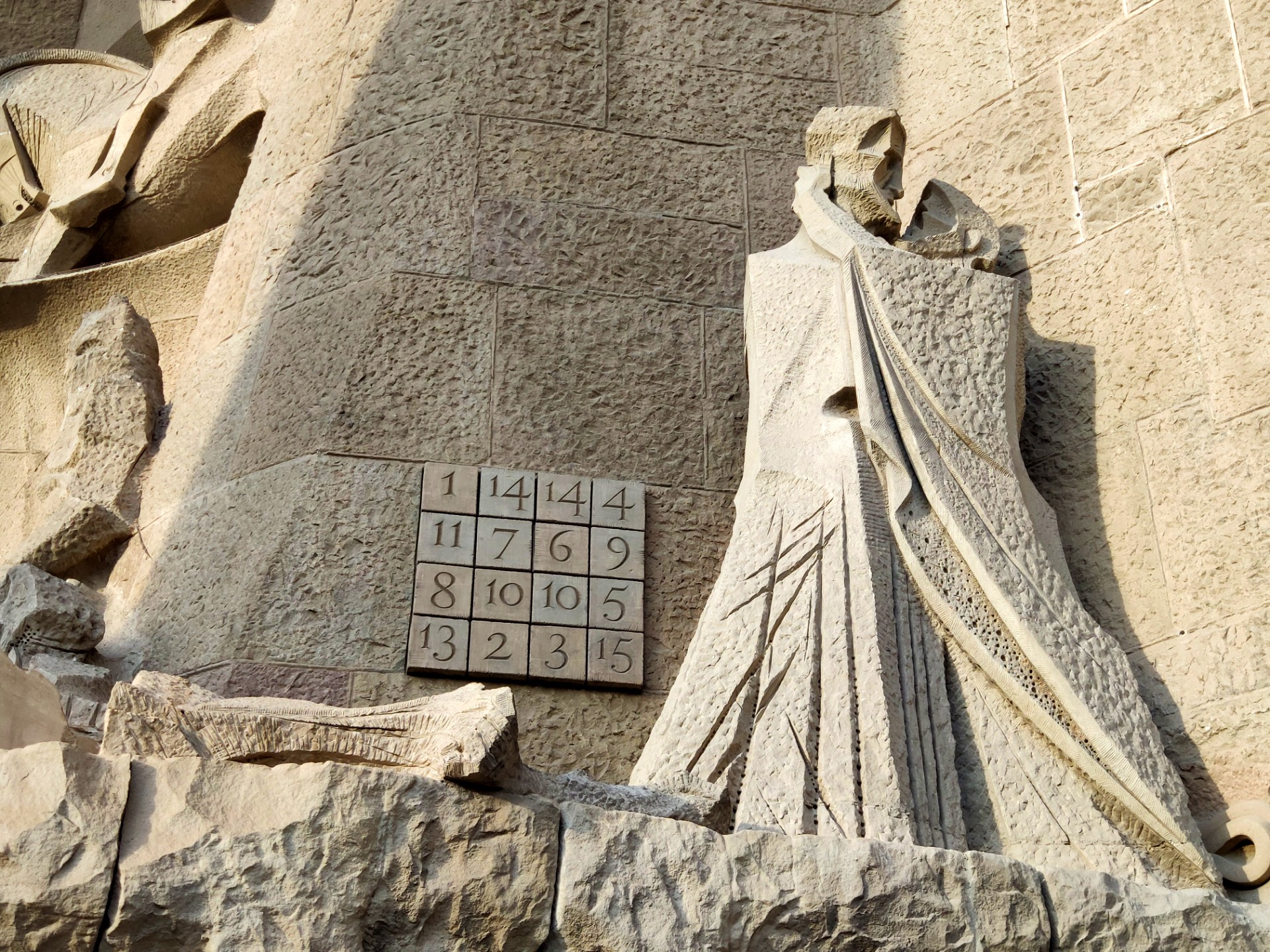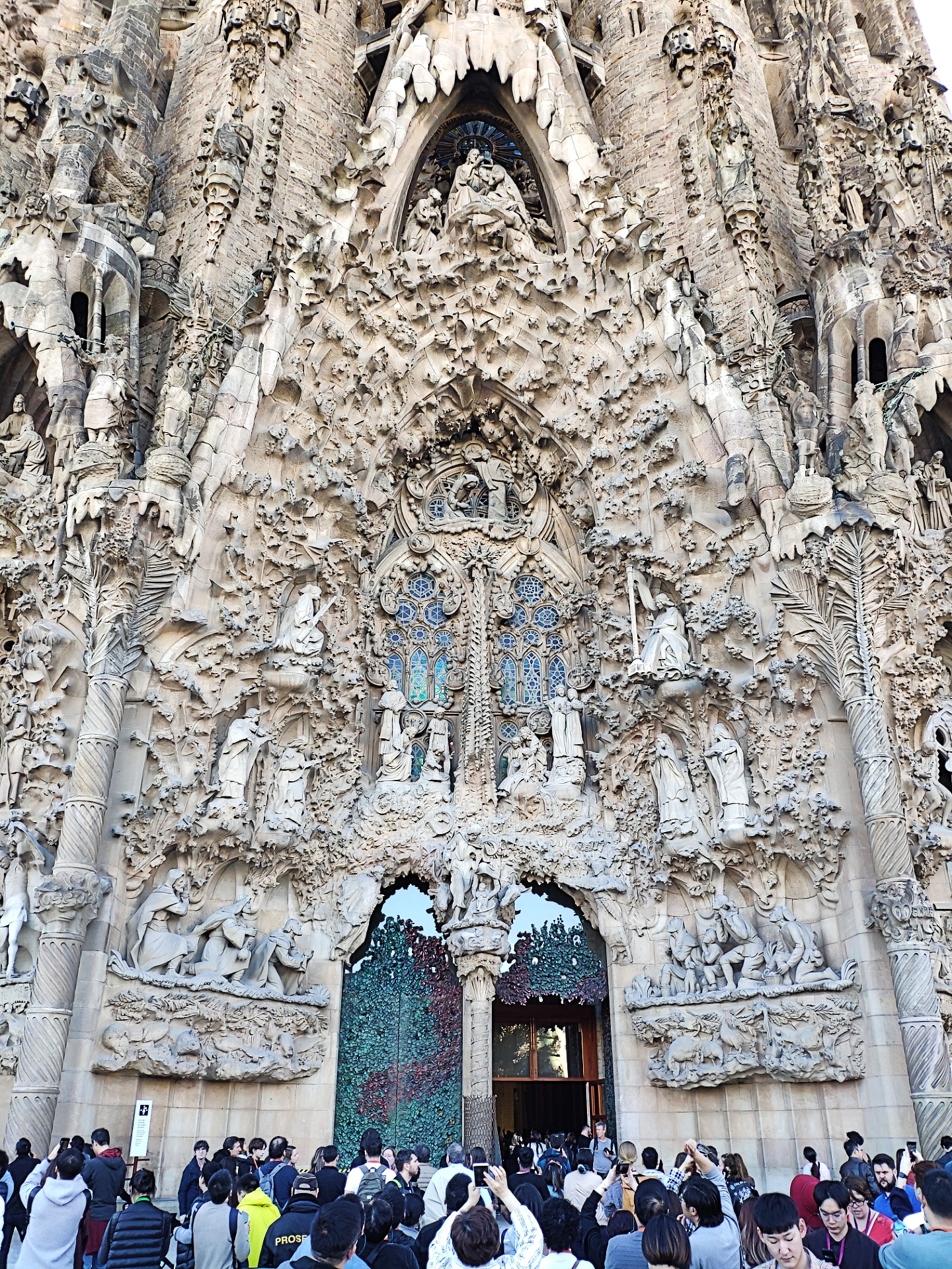 La façade de la passion est quant à elle beaucoup moins joyeuse, à dessein, avec de nombreuses statues et symboles, la façade qui semble beaucoup plus s’élancer vers le ciel, à dessein aussi probablement.