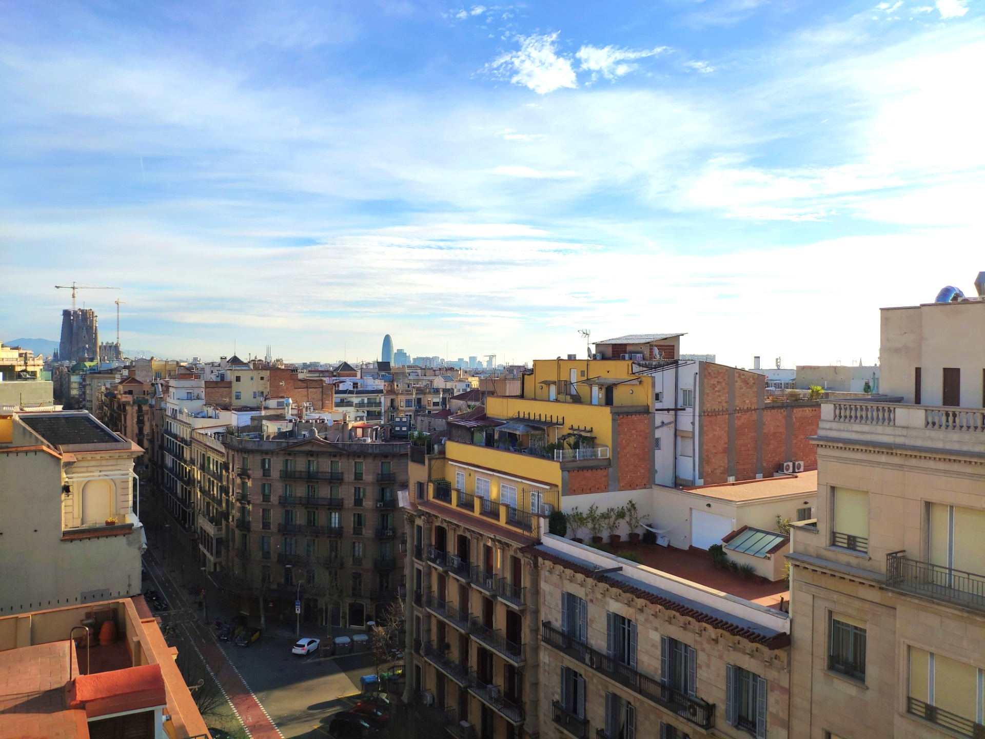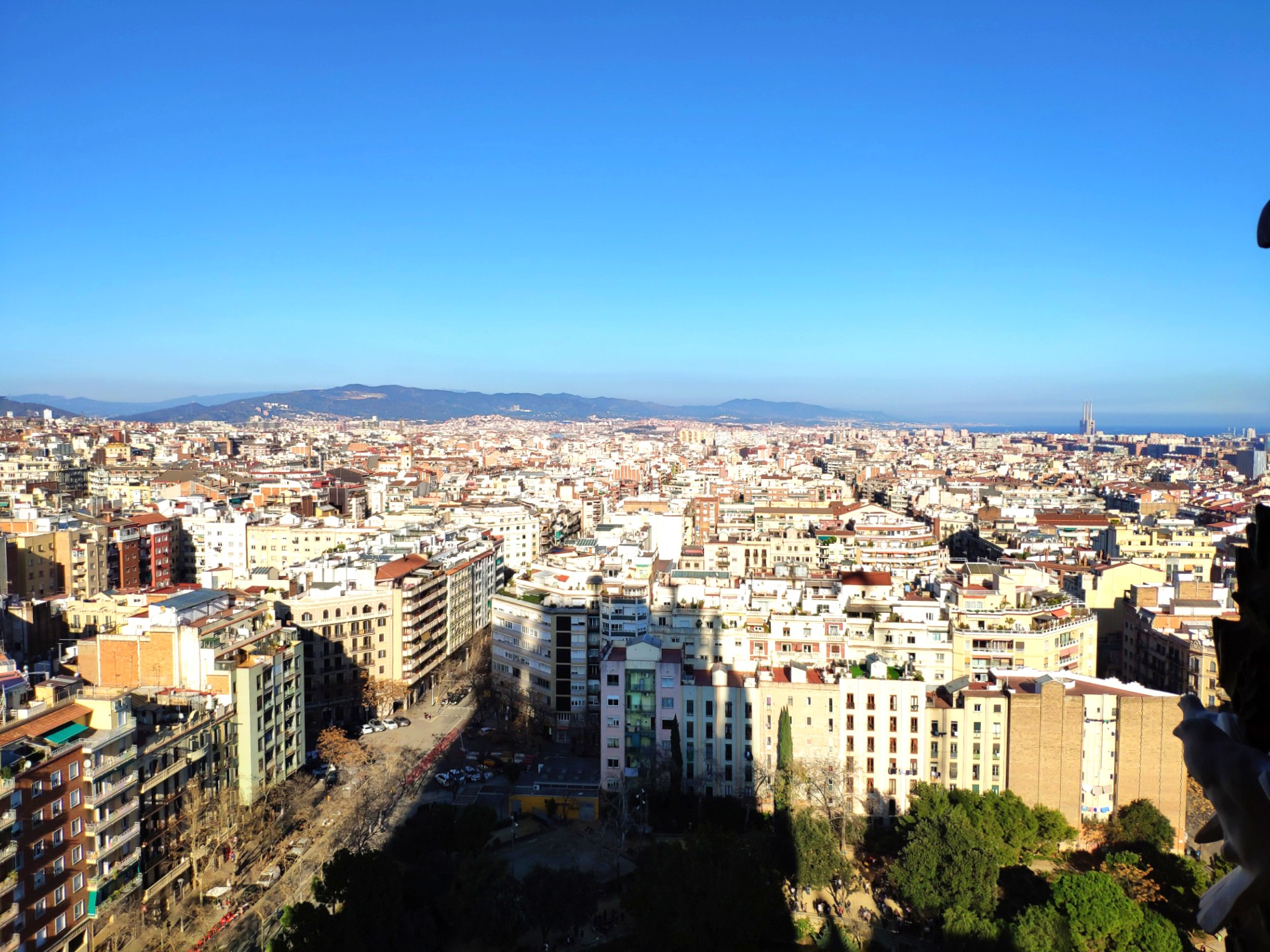 Comme on est sur le toit de la maison, on peut aussi apprécier la vue sur les toits de Barcelone, notamment une belle vue sur la Sagrada Familia.