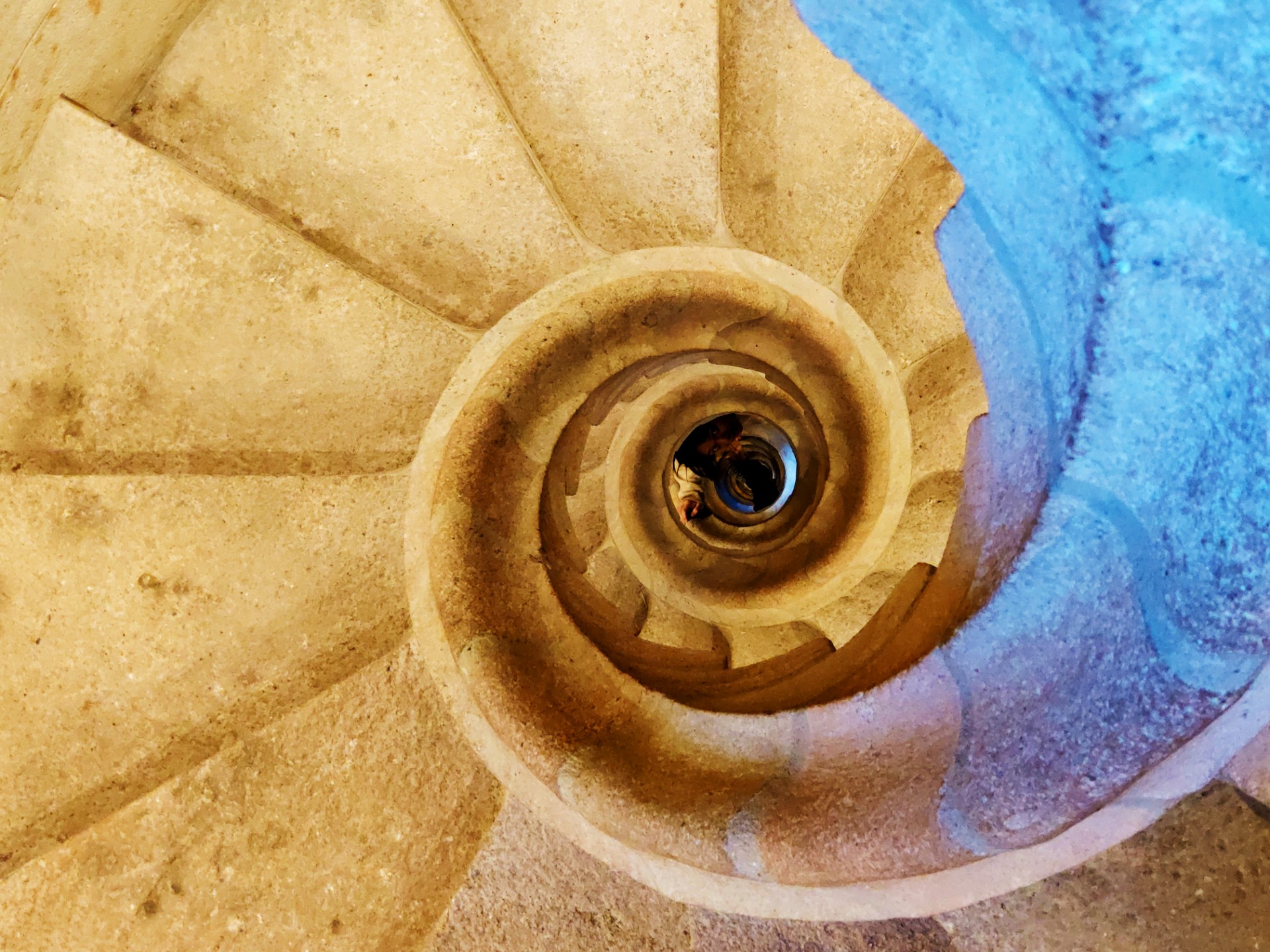 La descente se fait par les escaliers en colimaçon, on descend cet escalier qui n’en fini pas.