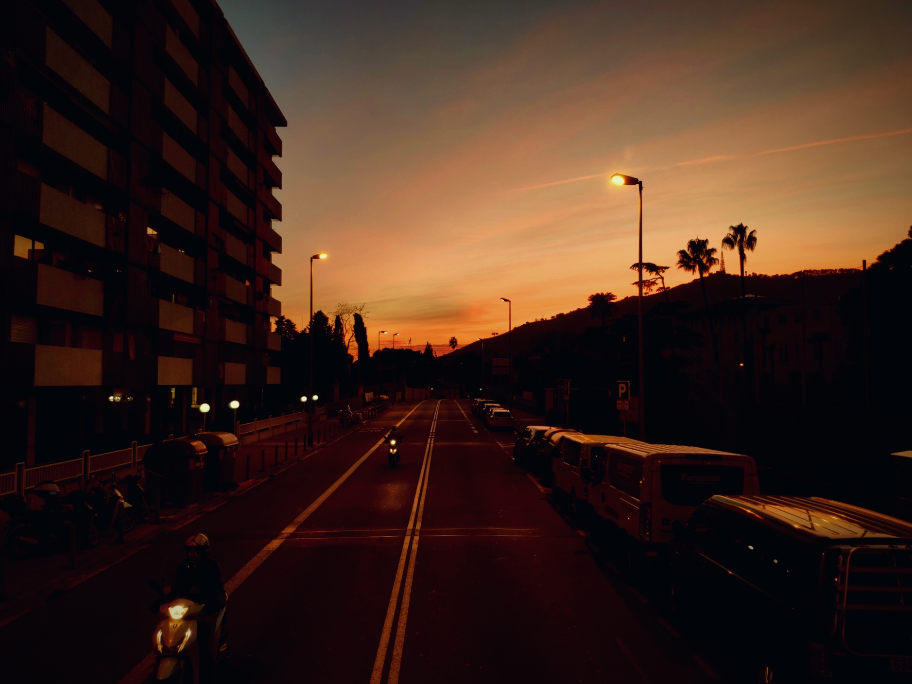 Après une pause à l’hotel, on s’habille plus chaudement et on repart dans le quartier gothique pour se promener et manger dans un restaurant de tapas très animé., le coucher de soleil depuis les fenetres du bus fait rougir le ciel.